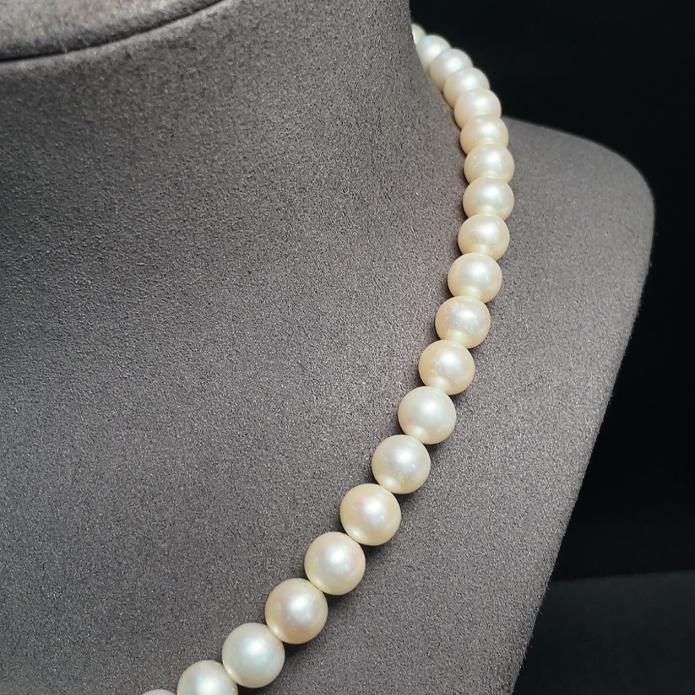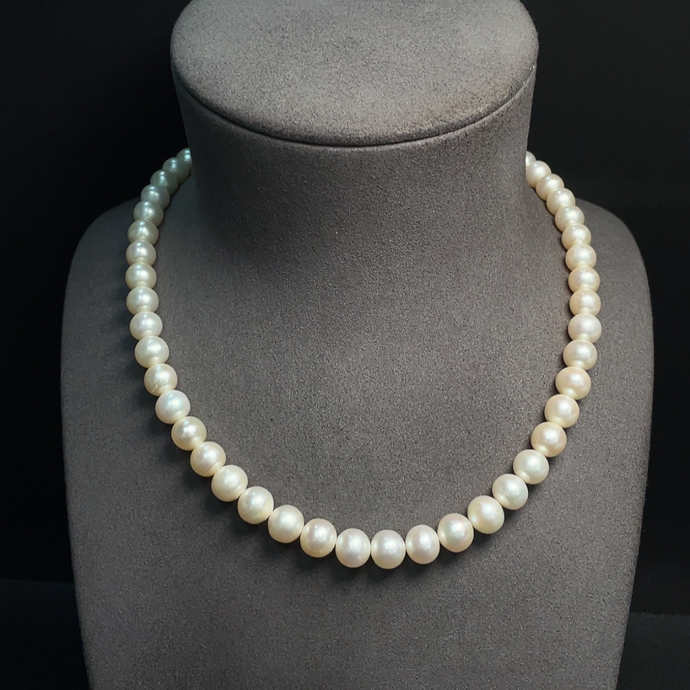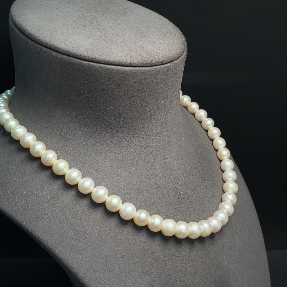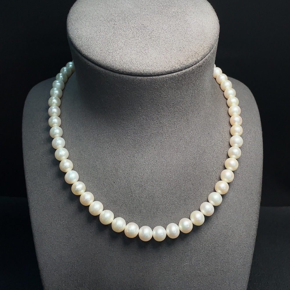 Pearl necklace with non-natural gemstones, non-gold, total weight approximately 47.06g, pearl size about 8-9.2mm