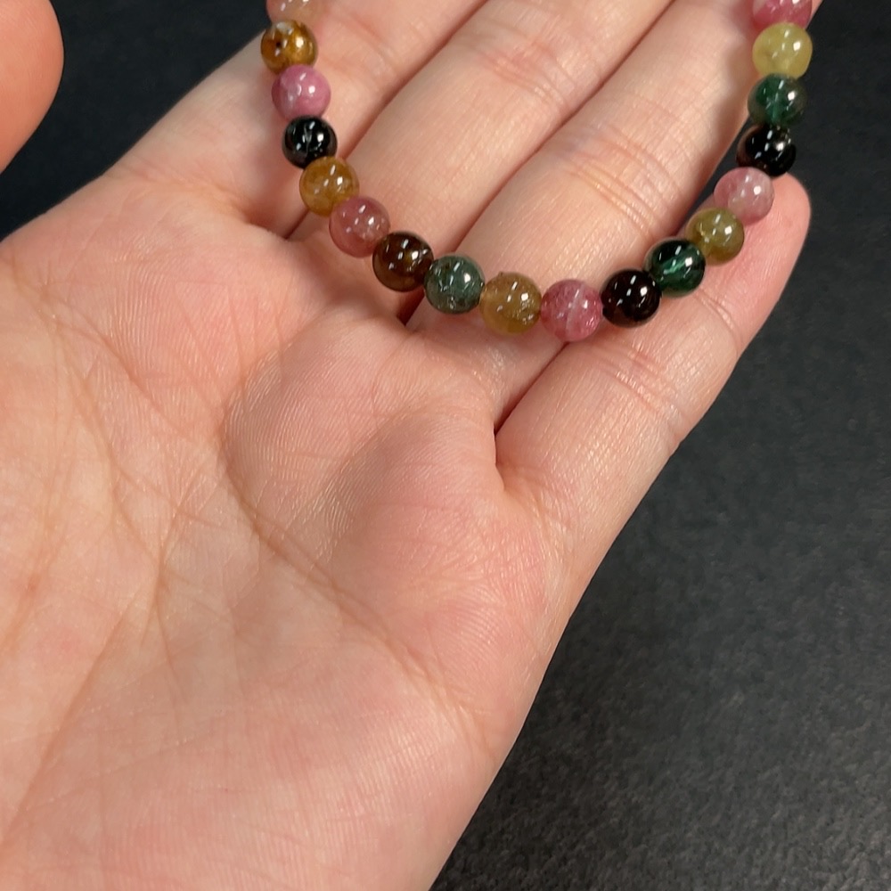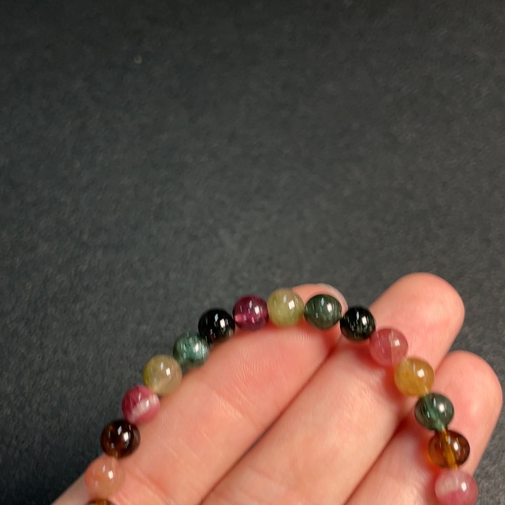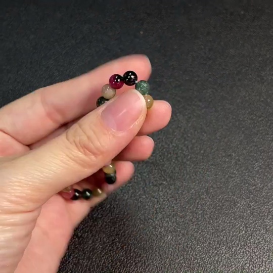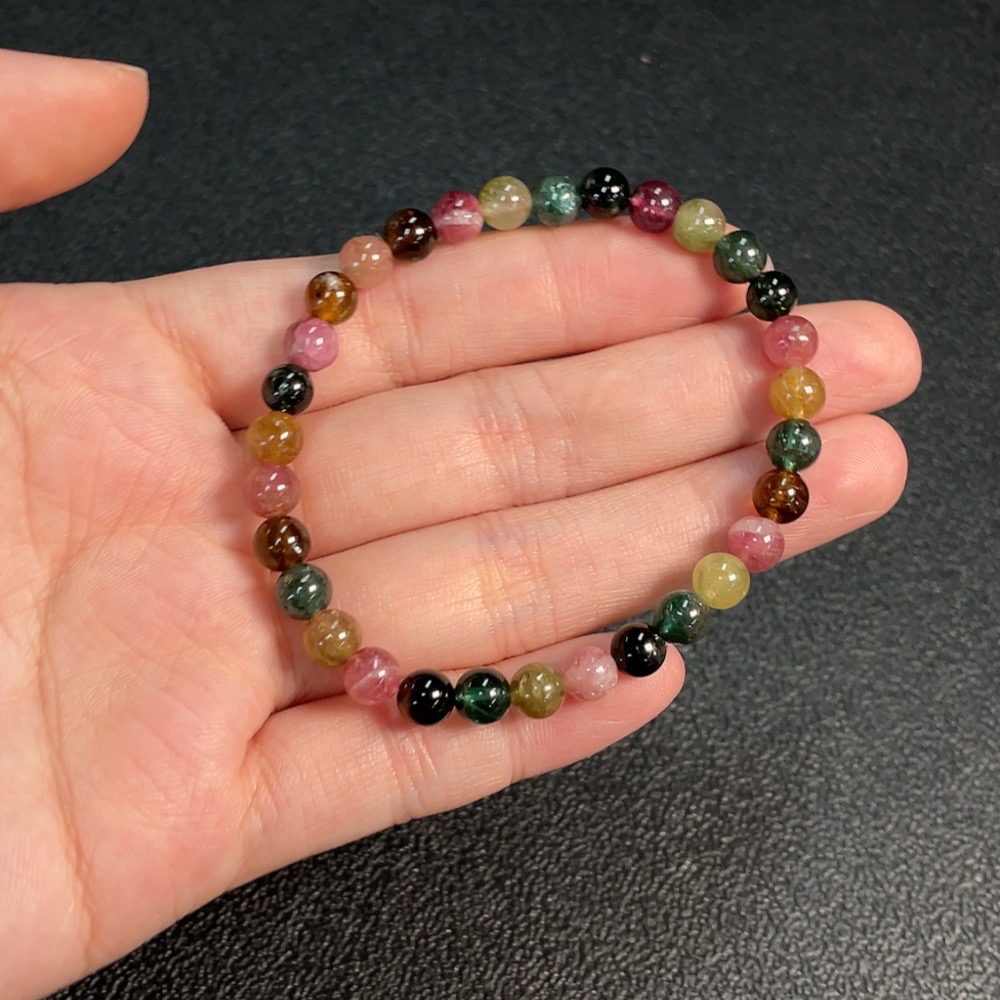 Tourmaline bracelet containing other mineral components, visible organic matter, total weight approximately 9.4g, size about 5.8mm