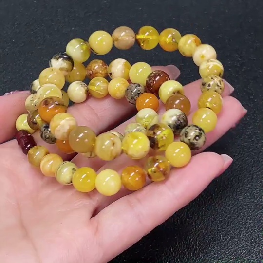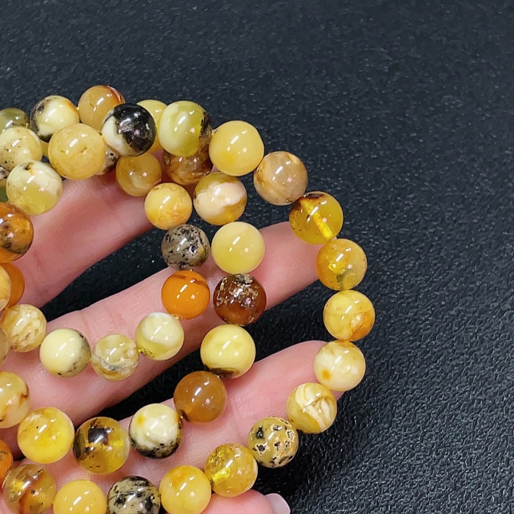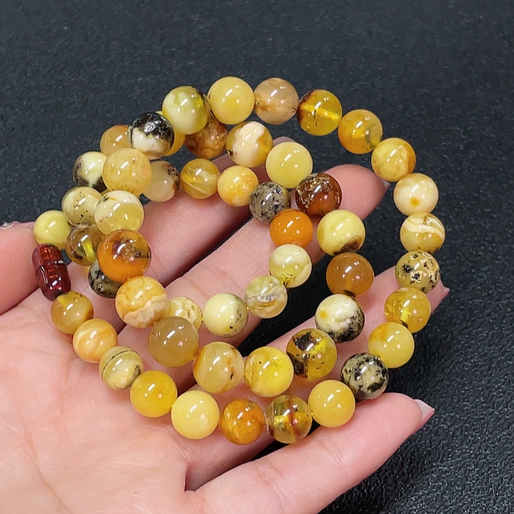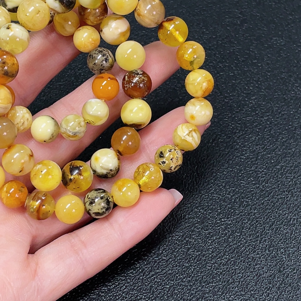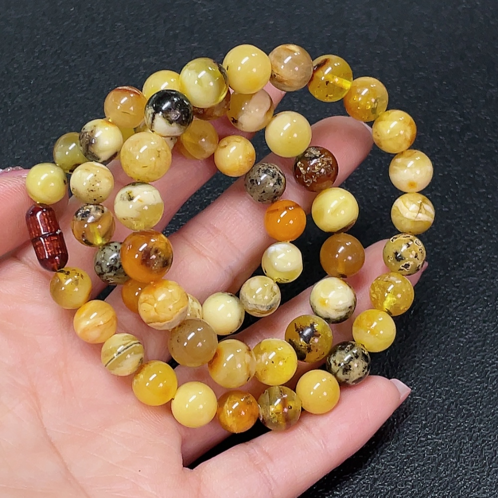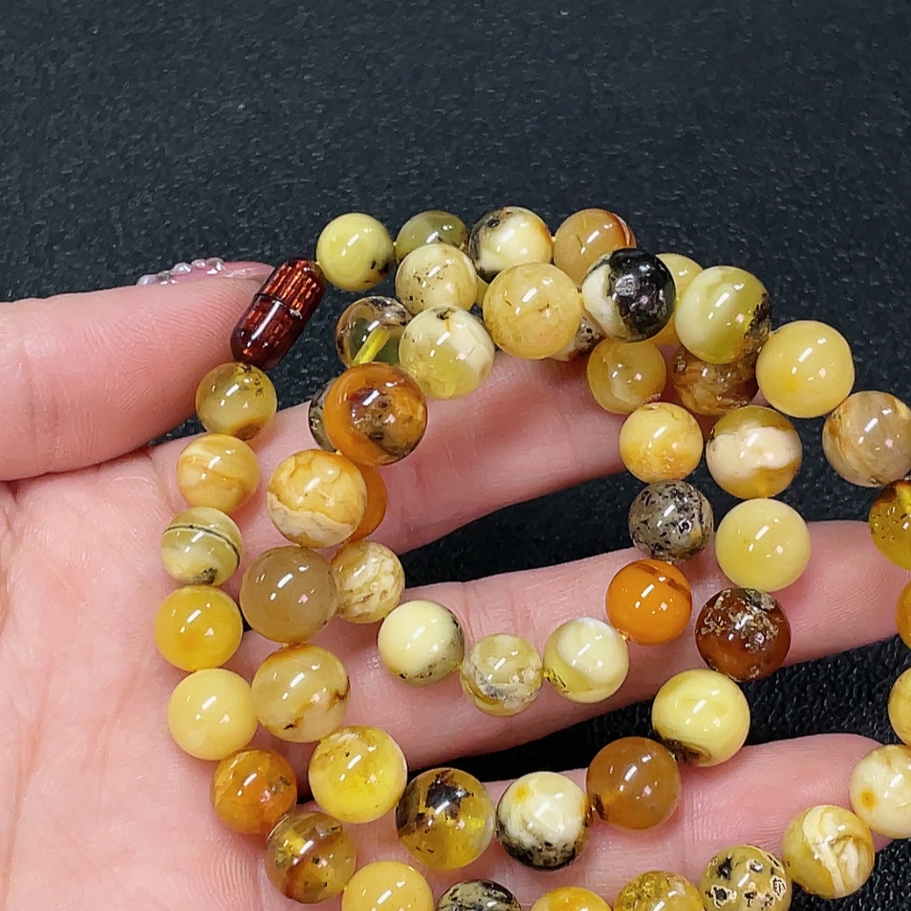 Amber and beeswax bead strand with non-natural connector, total weight approx. 20.72g, size approx. 7.7-9mm