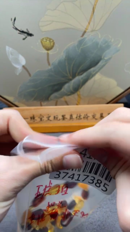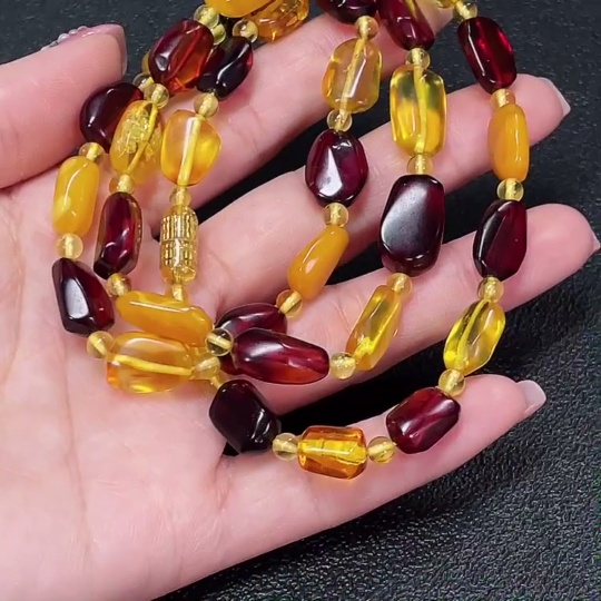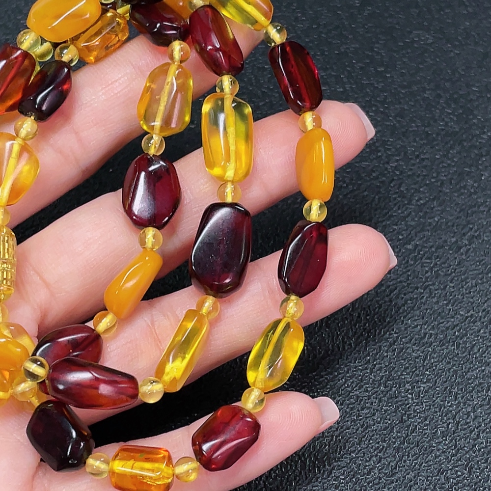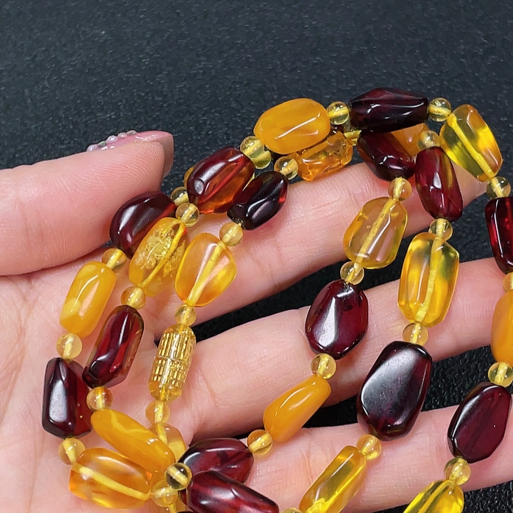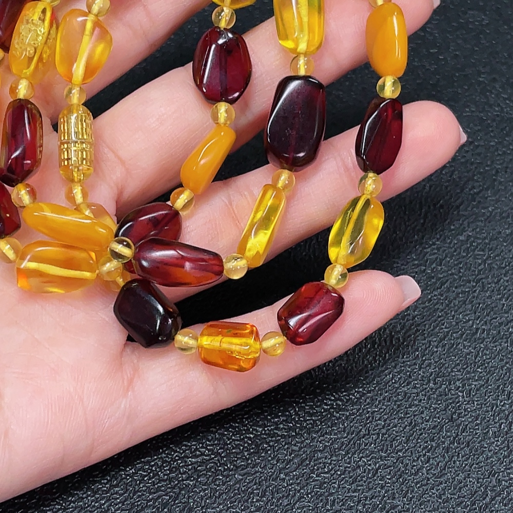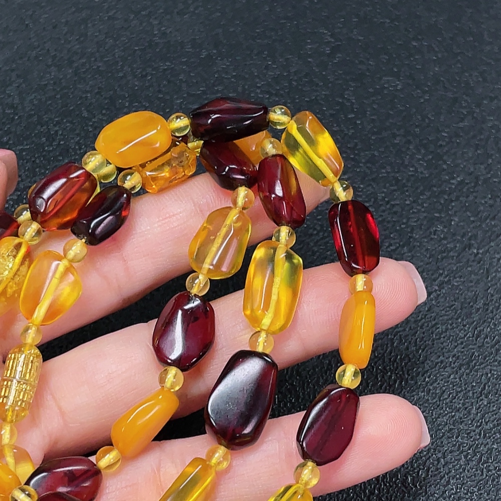 Amber and beeswax bead strand with non-natural connector, total weight approximately 18.43g, size about 3.8-9.6mm
