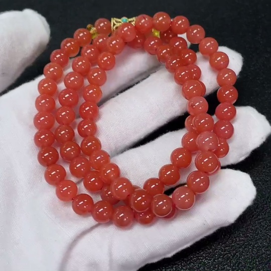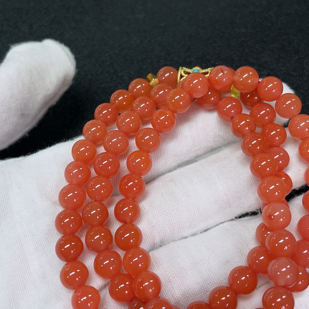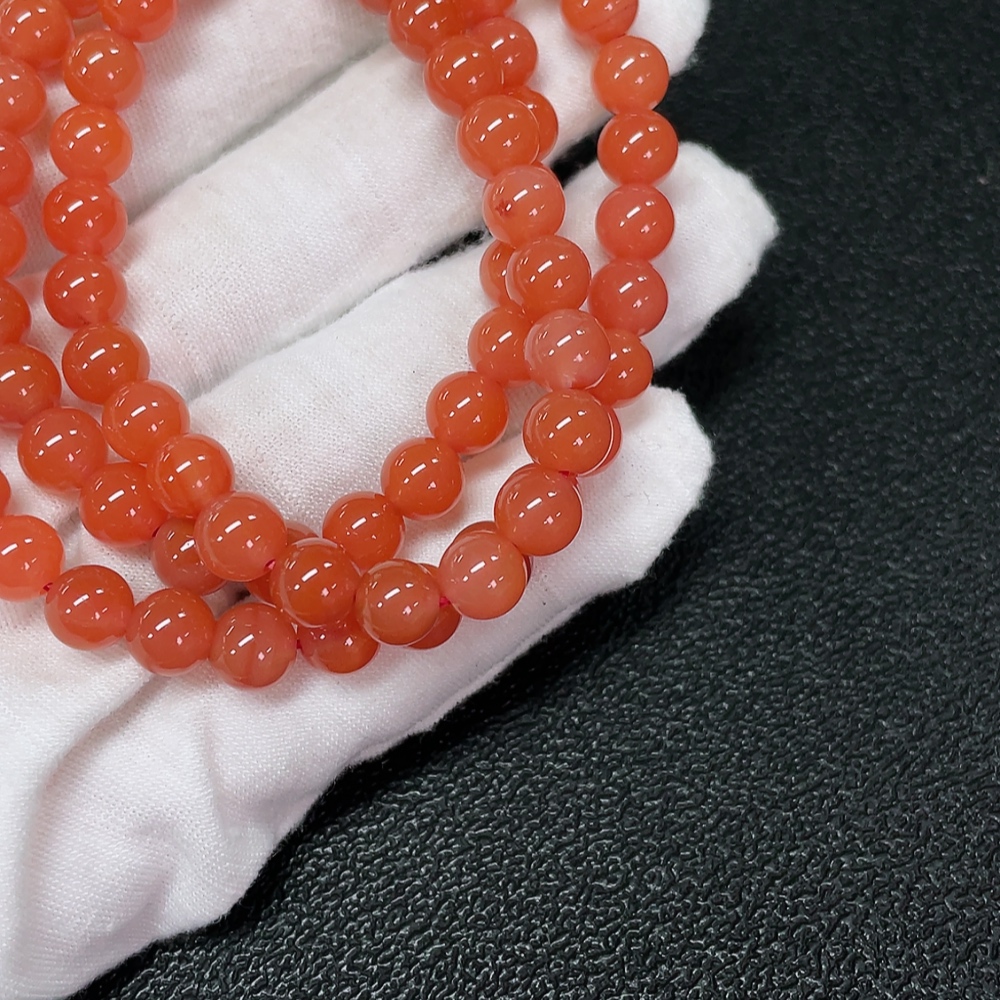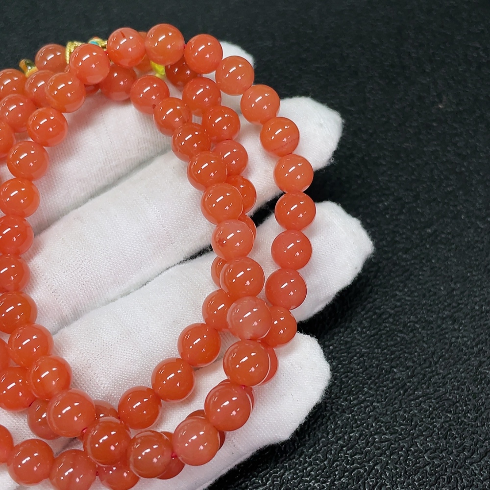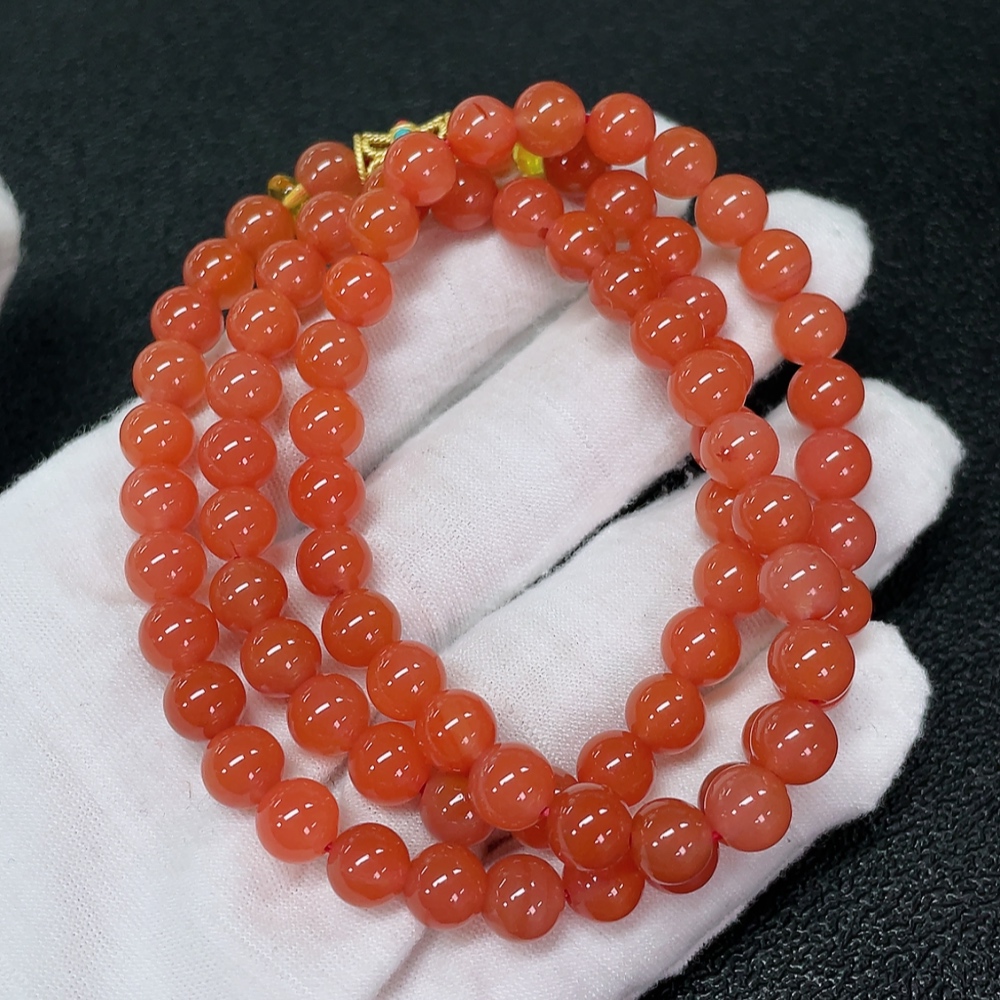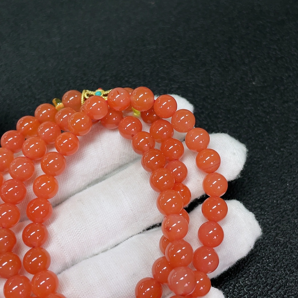 Red Agate Bead Strand with Visible Organic Matter, Non-Natural Accent Stones Considered, Non-Metal, Total Weight Approx. 42.45g, Size About 7.1mm