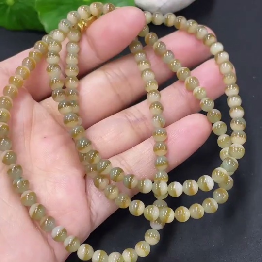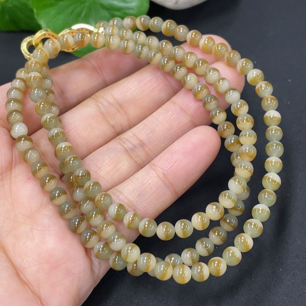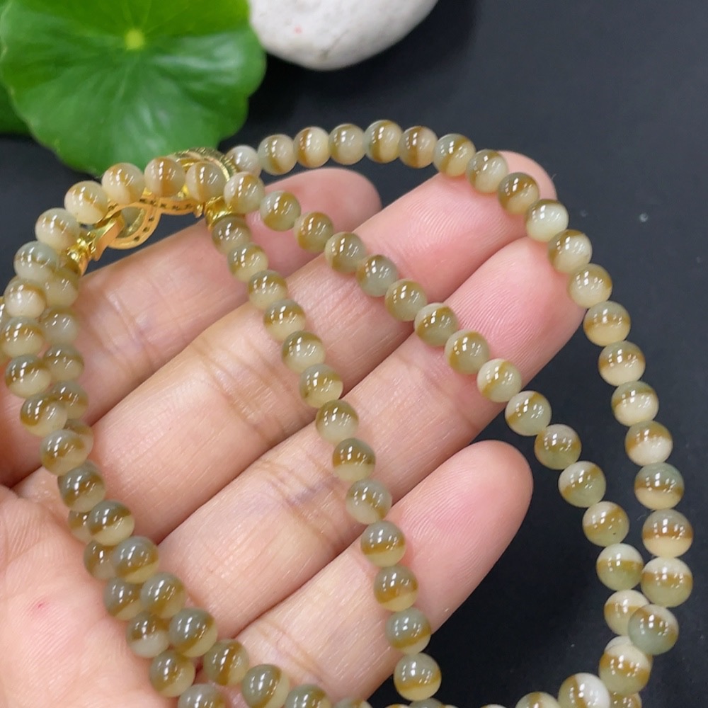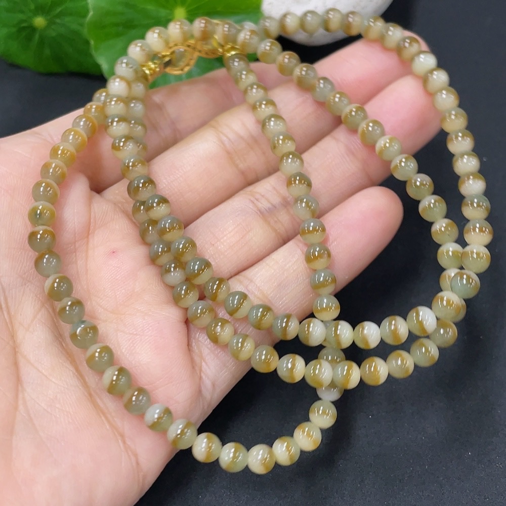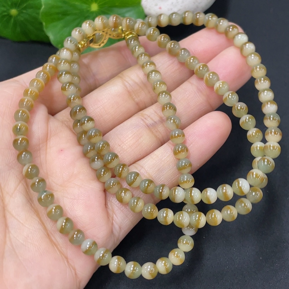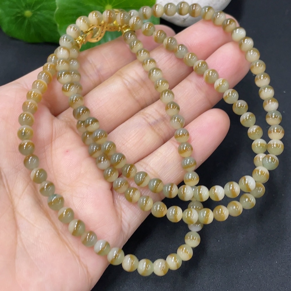 Jadeite Bead Necklace Approx. 4.5mm Non-Gold Total Weight Approx. 23.66g