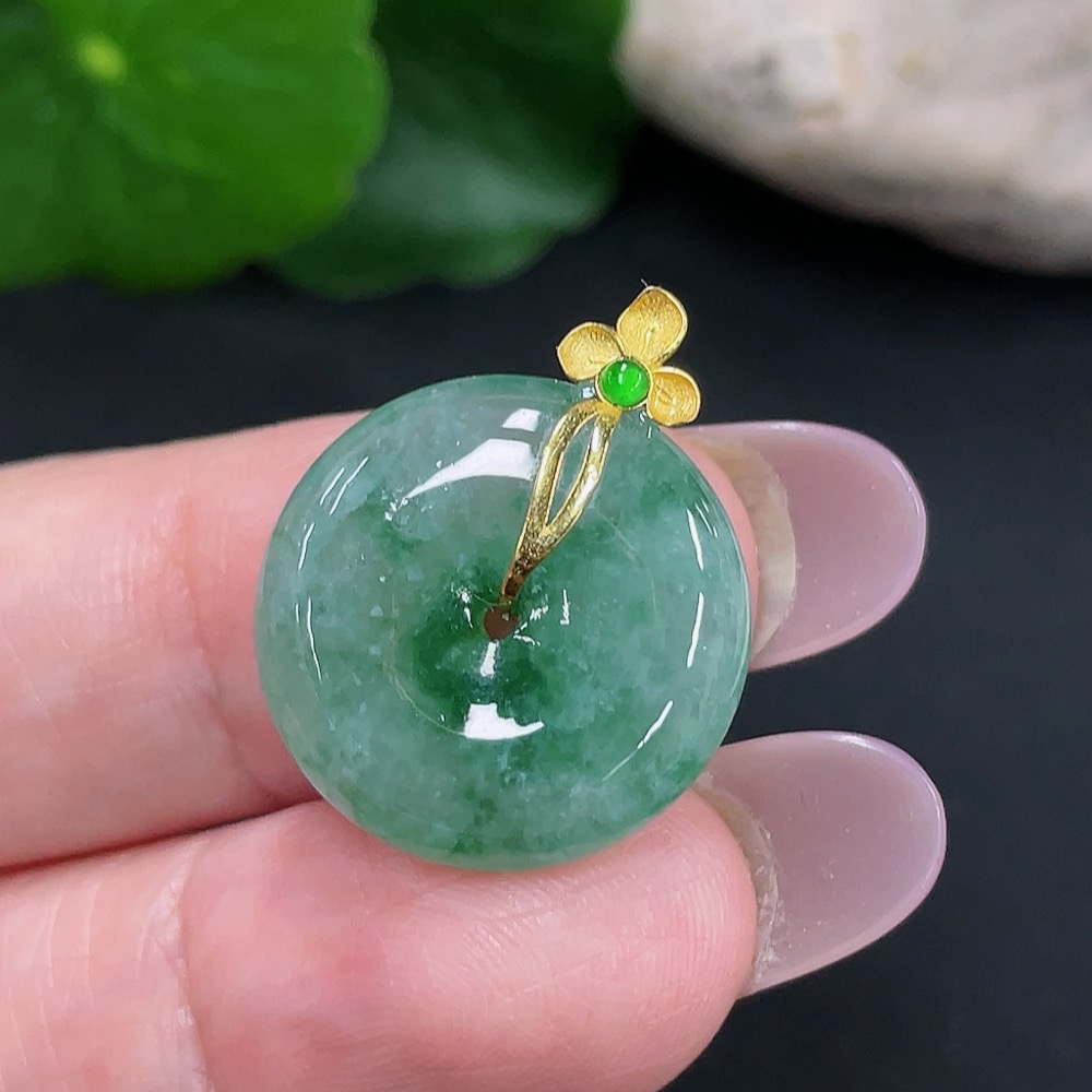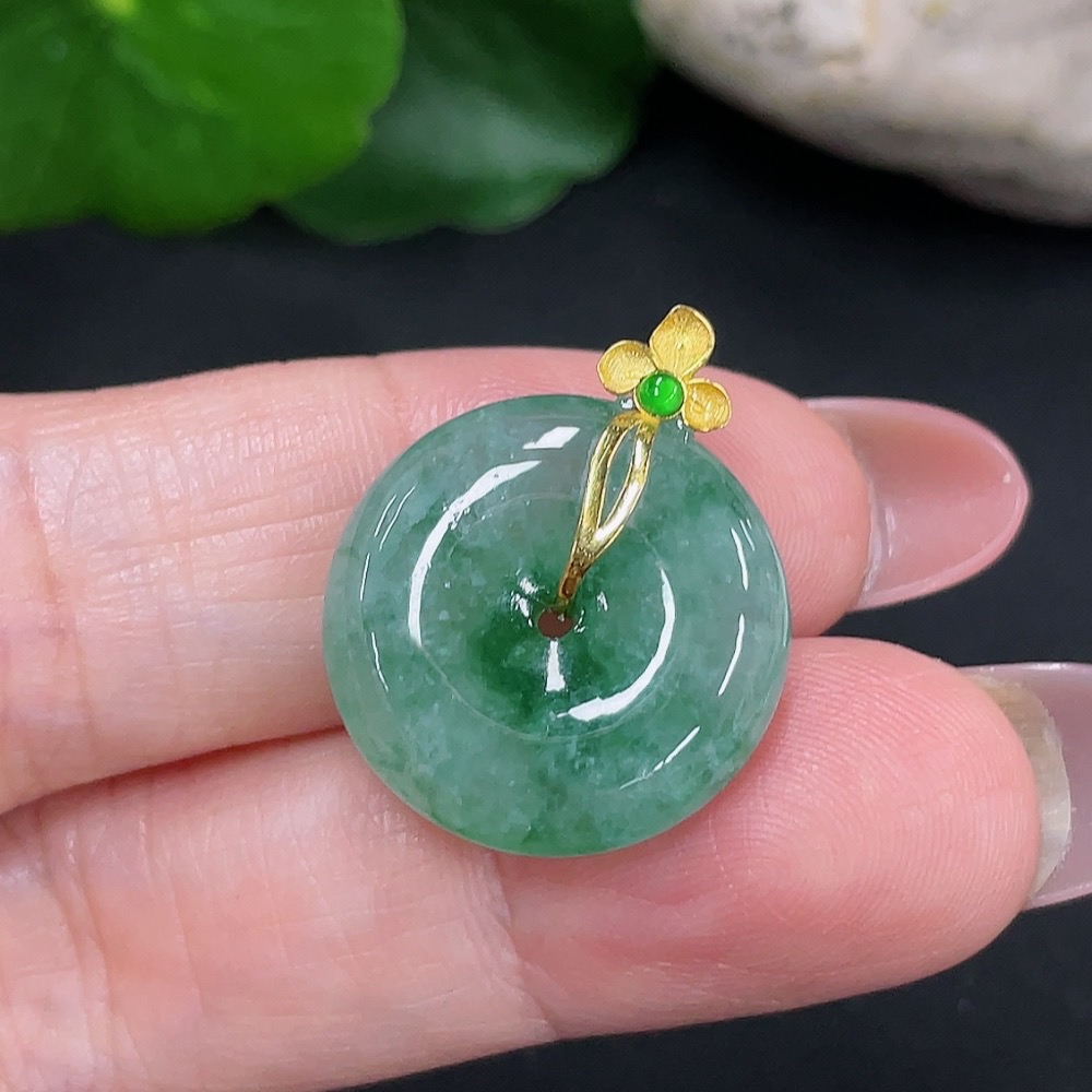 Jadeite Safety Buckle Pendant 18K Gold Total Weight Approx. 4.1g
