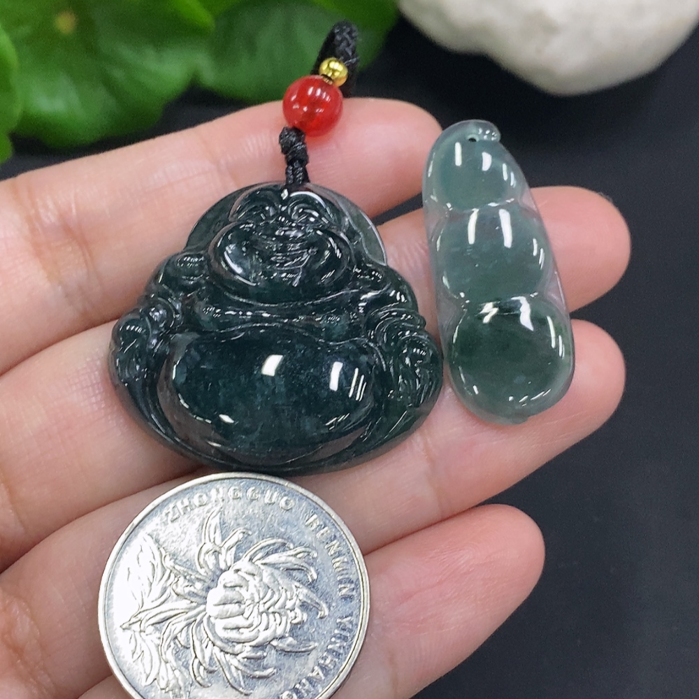 Jadeite Pendant Buddha Buddha Beans with Non-A Grade Beads