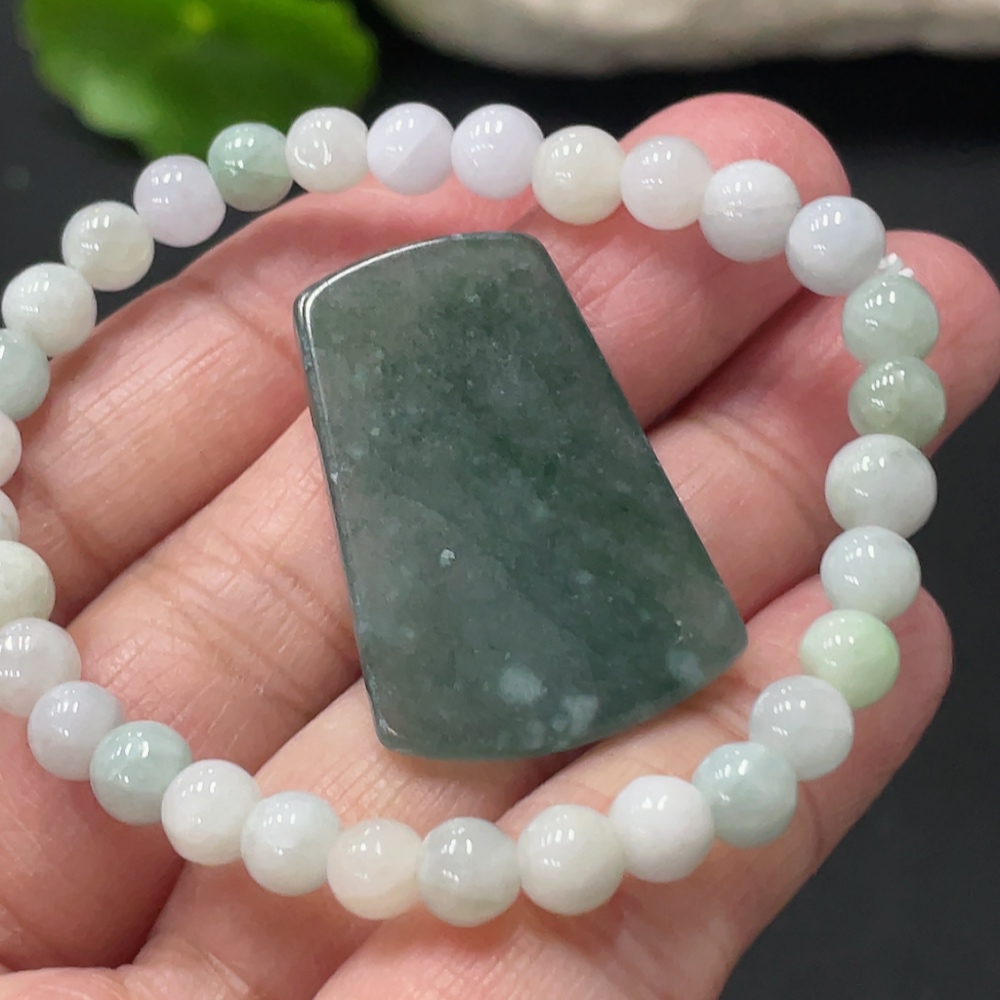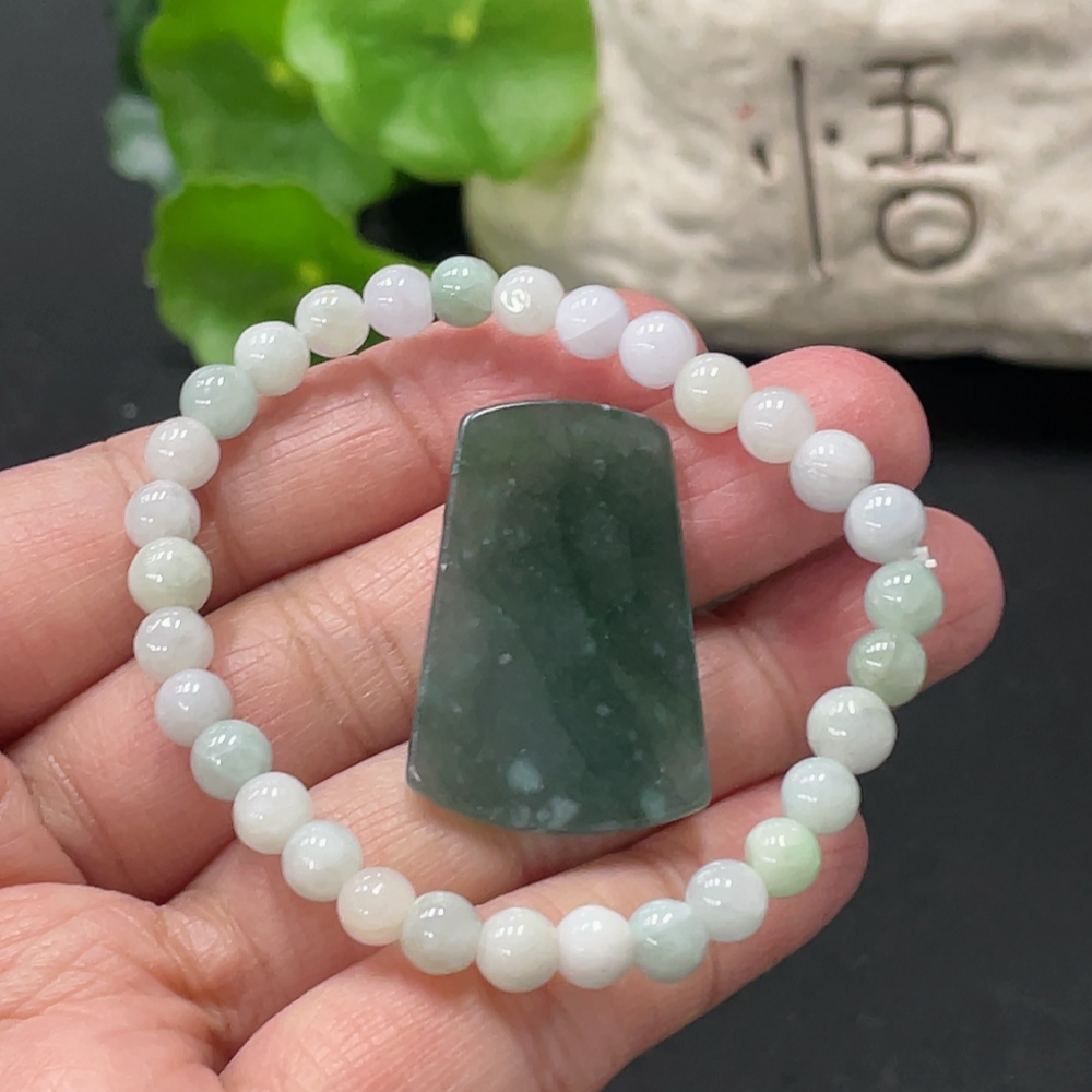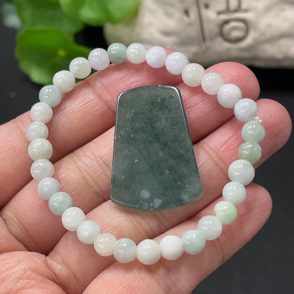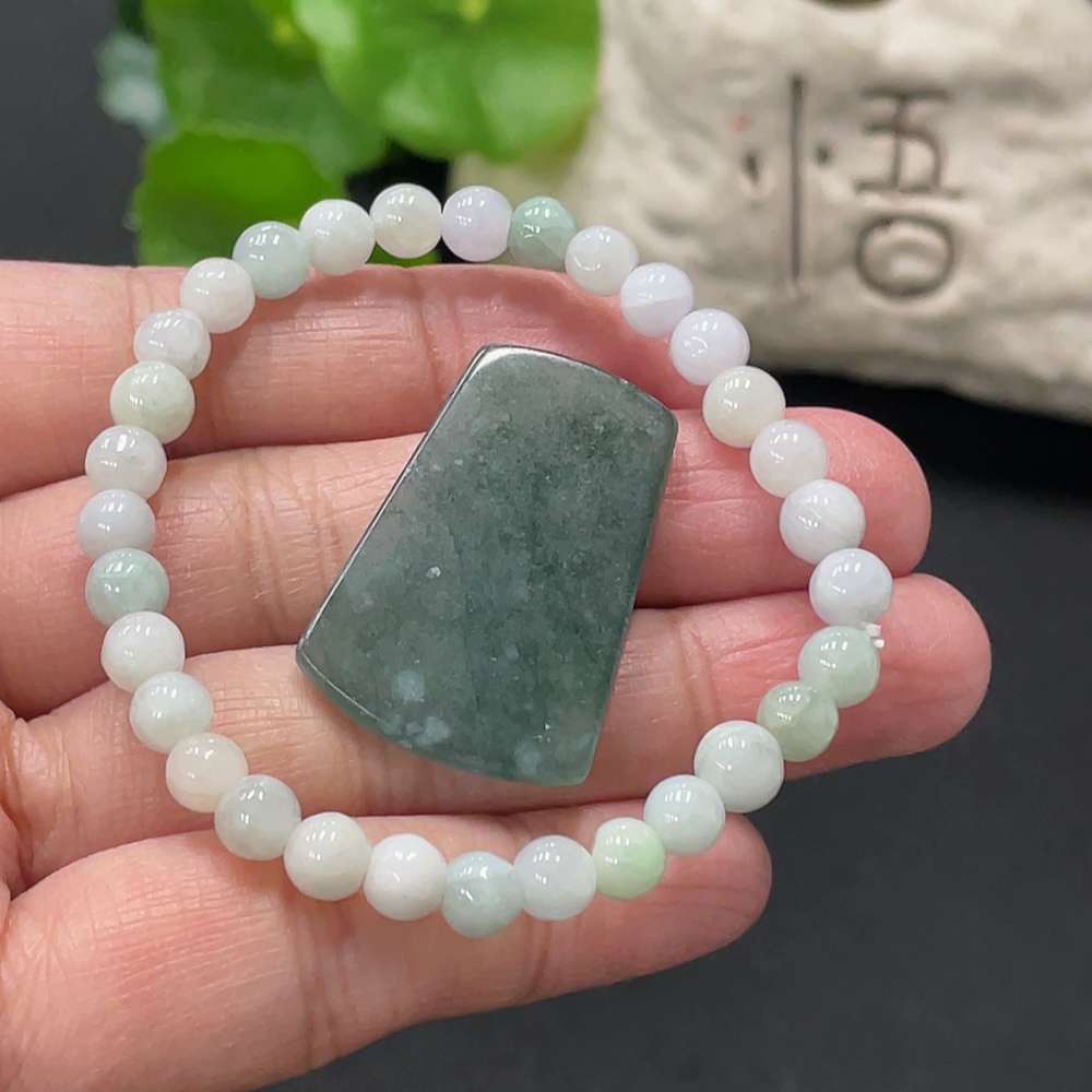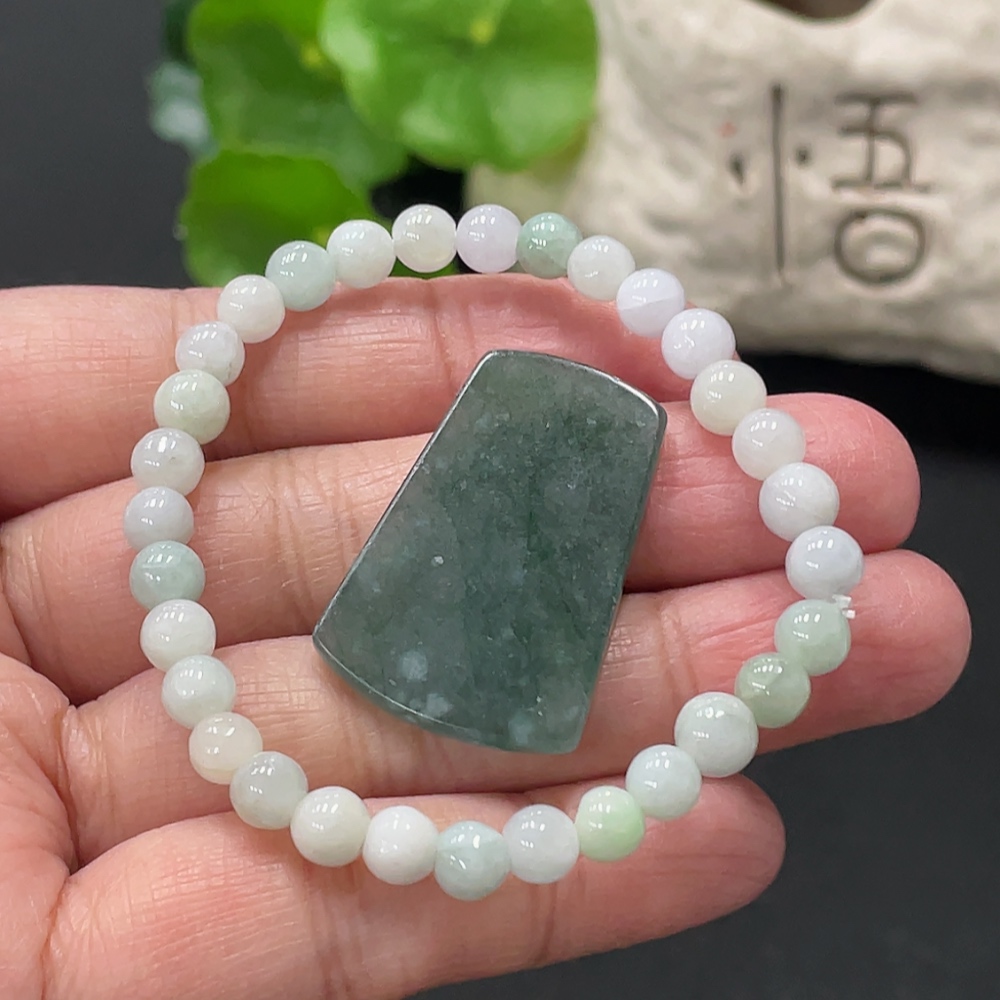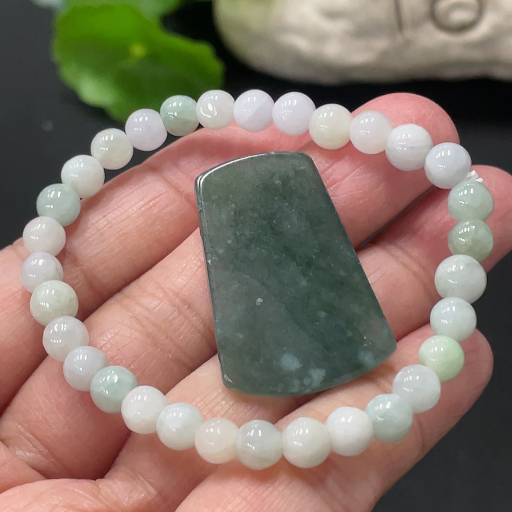 Jadeite Bracelet + Pendant, Approx. 5.4mm, Total Weight Approx. 12.35g