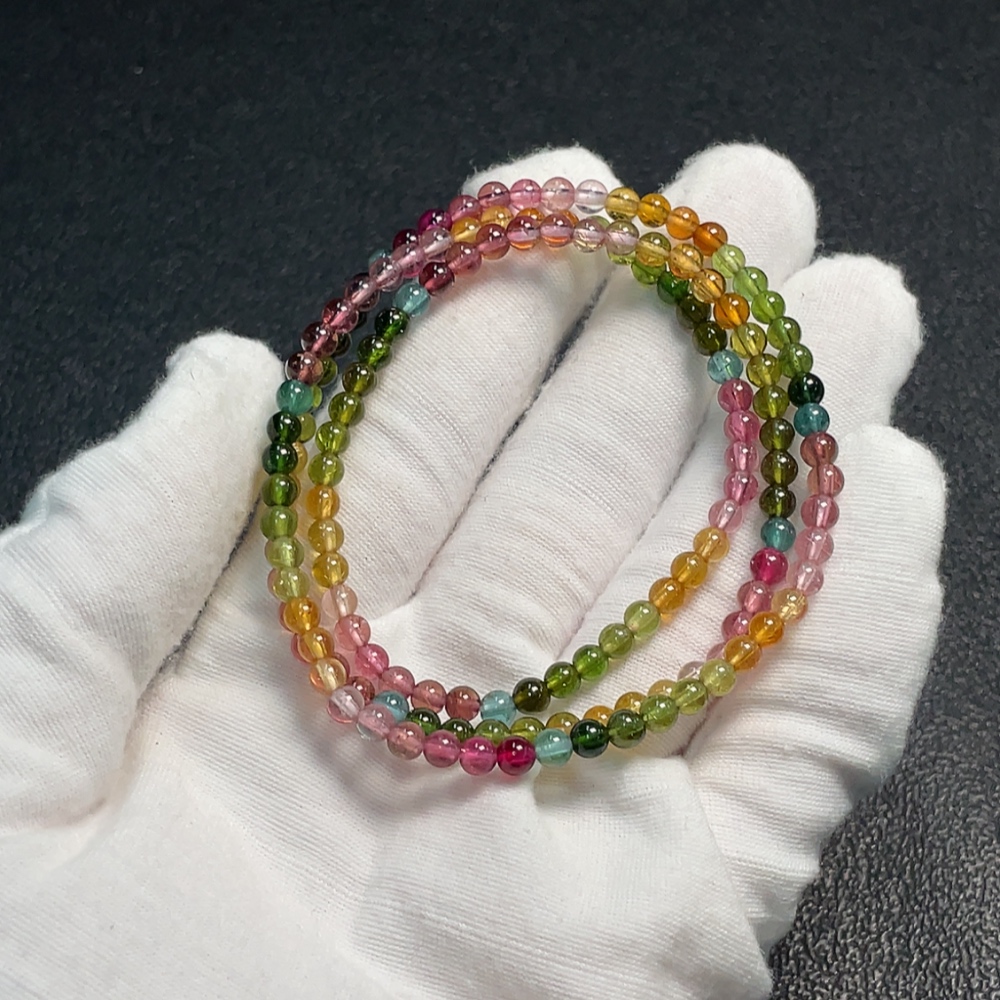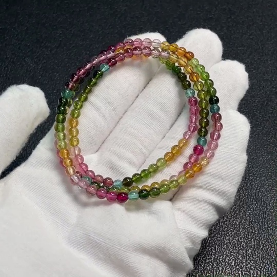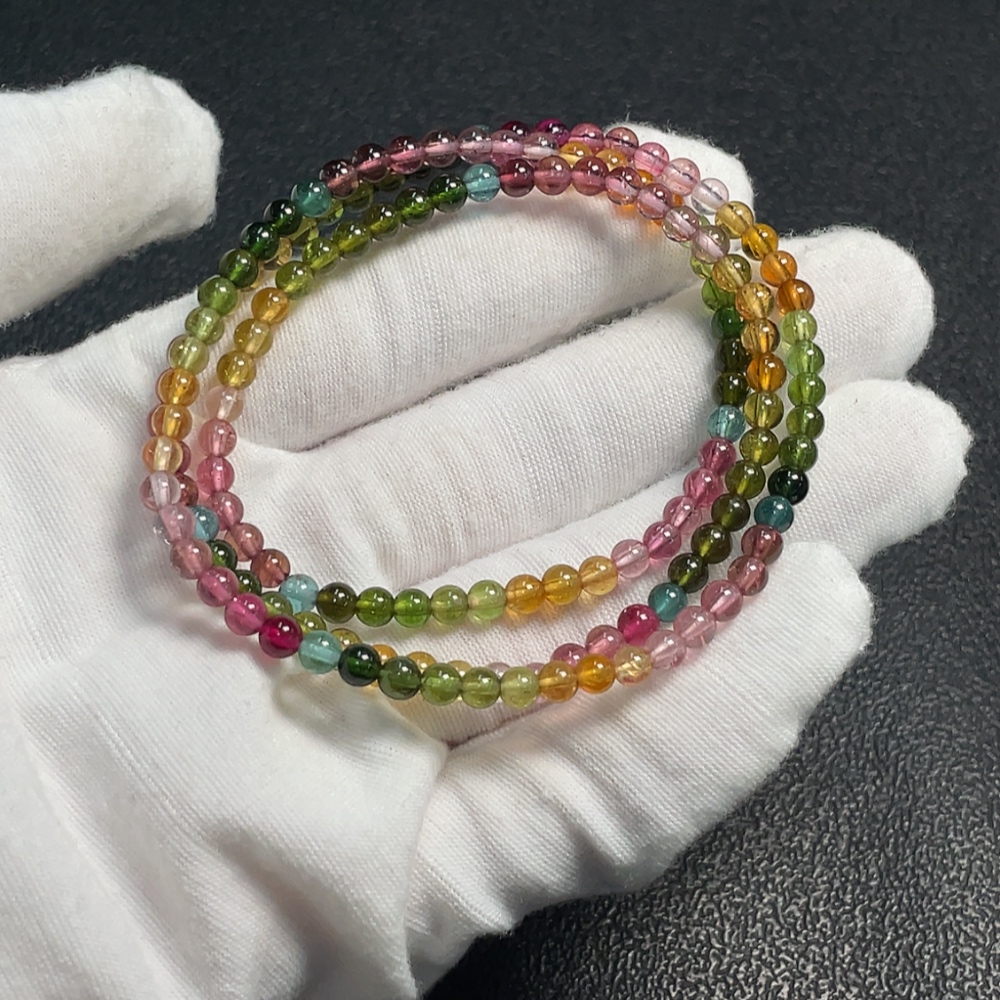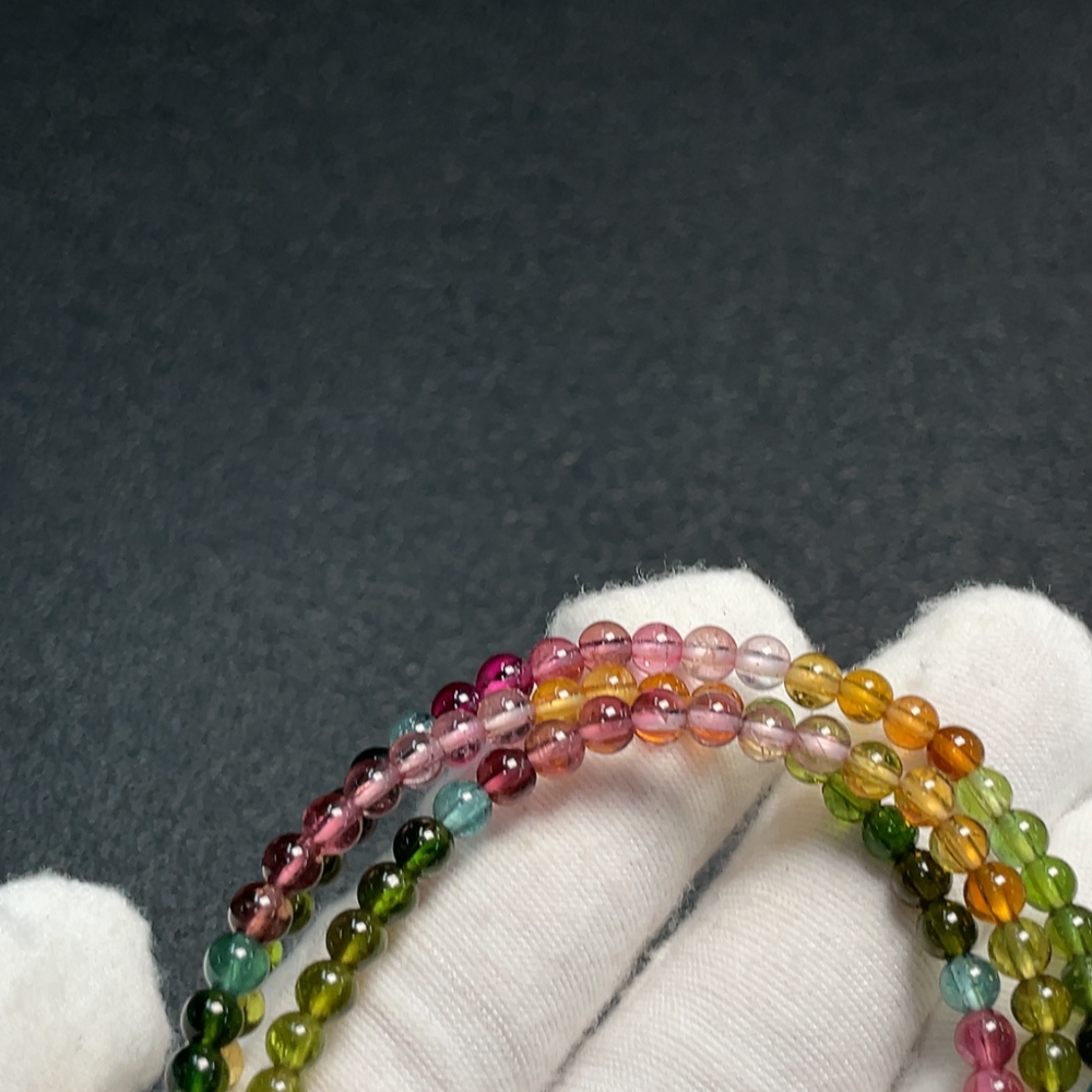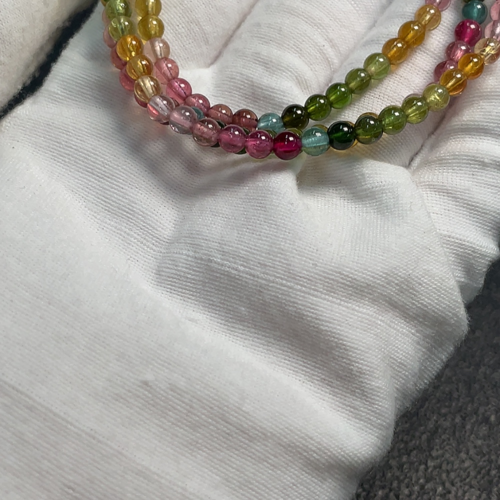 Tourmaline Bead Strand with Other Mineral Components, Visible Organic Matter, Total Weight Approximately 14.34g, Size About 3.9mm