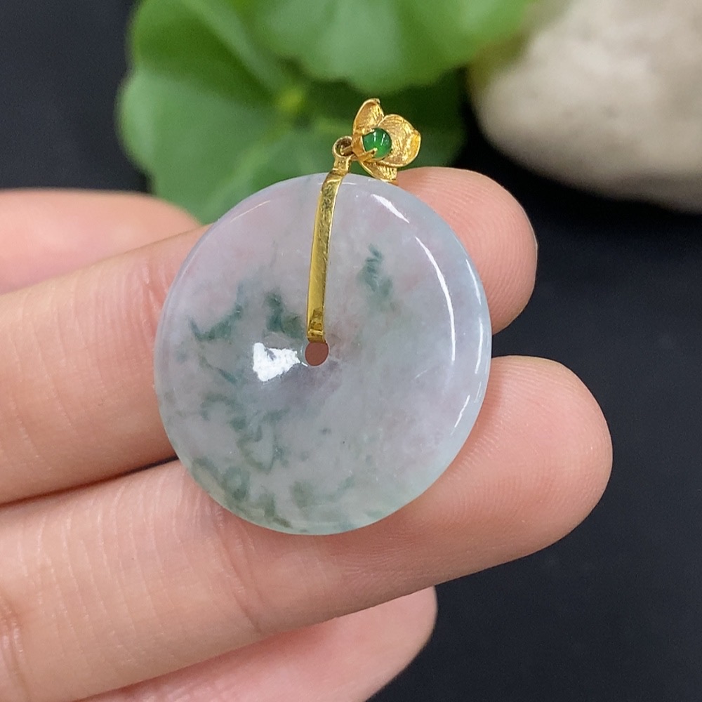 Jadeite Safety Buckle Pendant 18K Gold Total Weight Approx. 3.8g