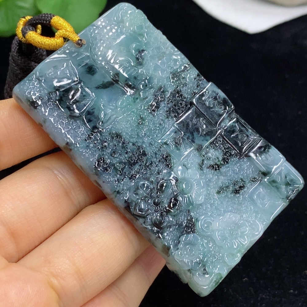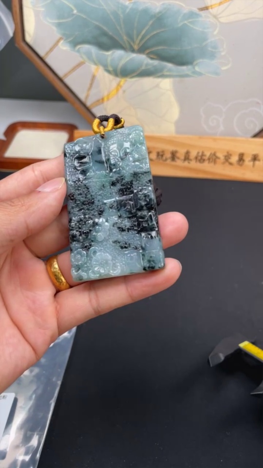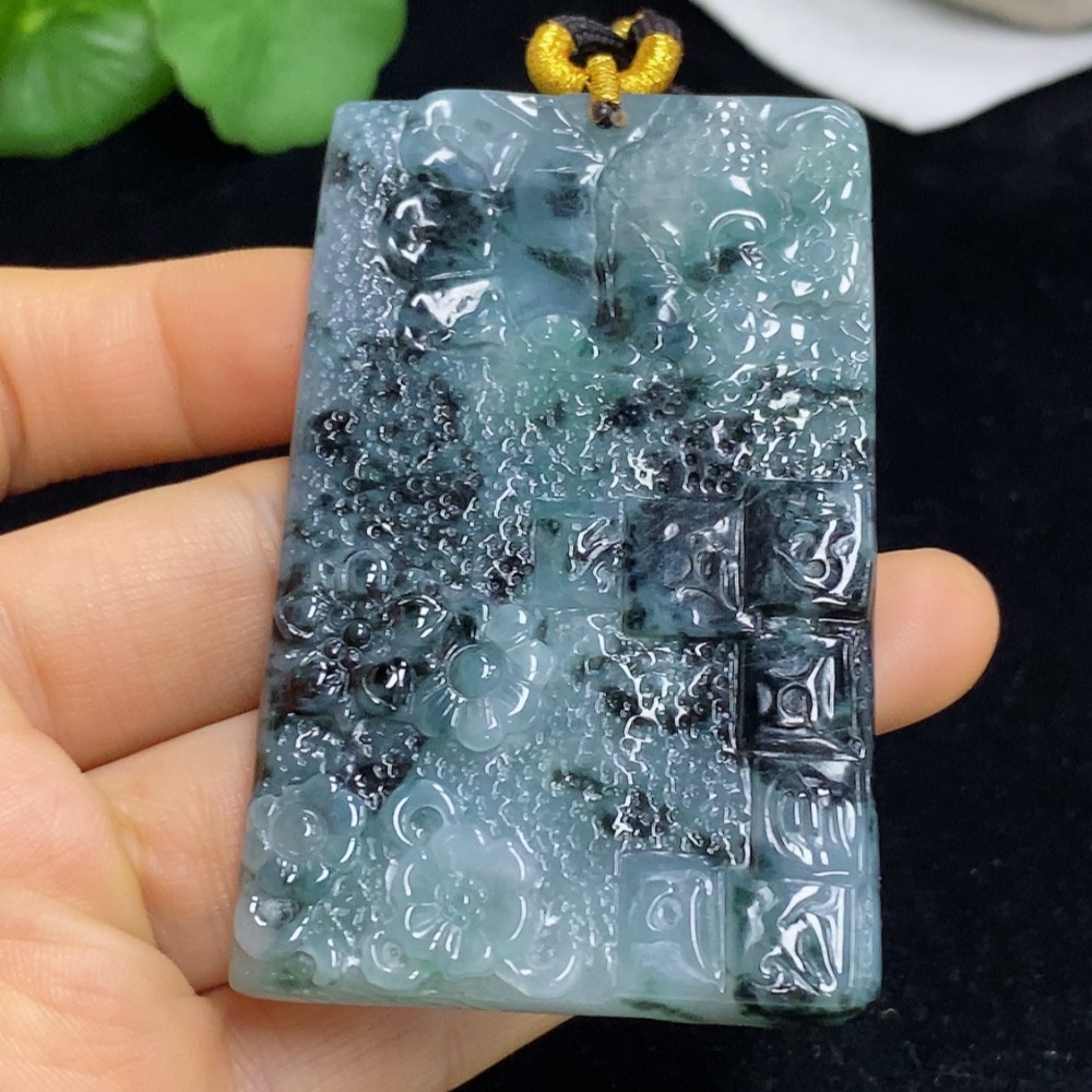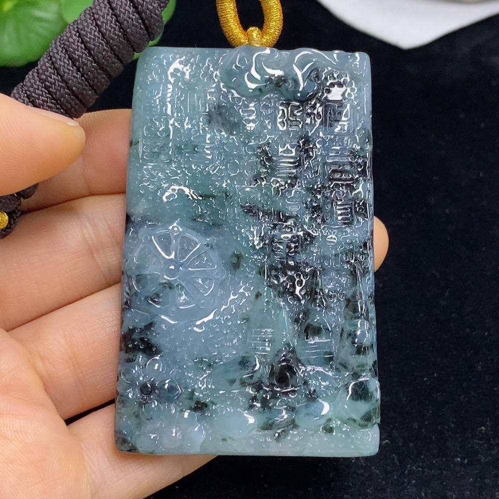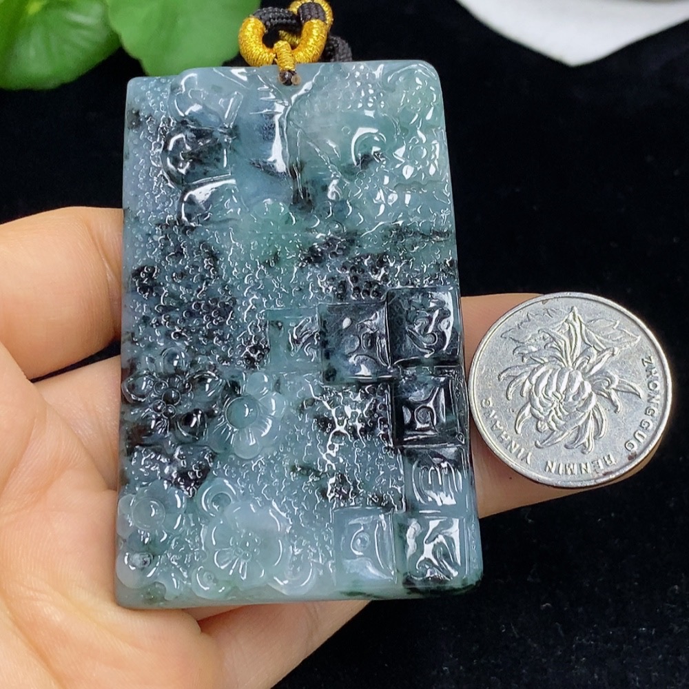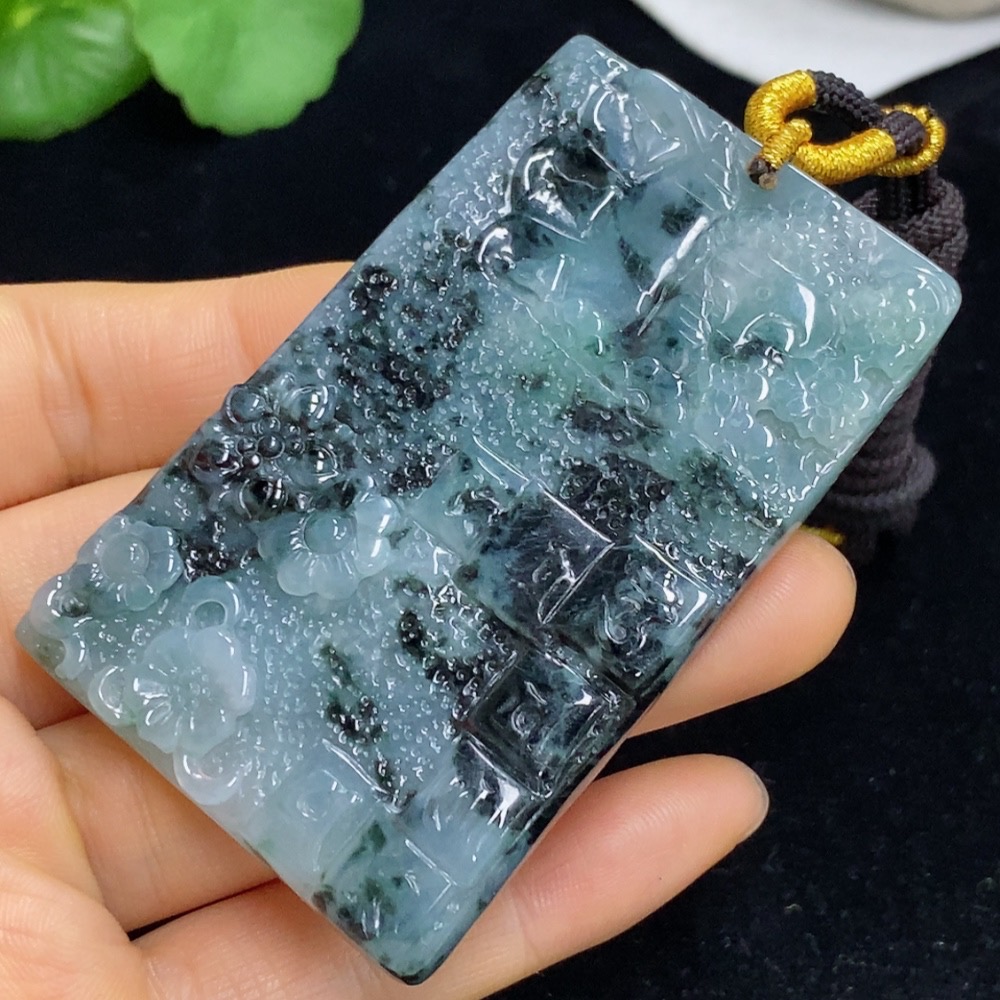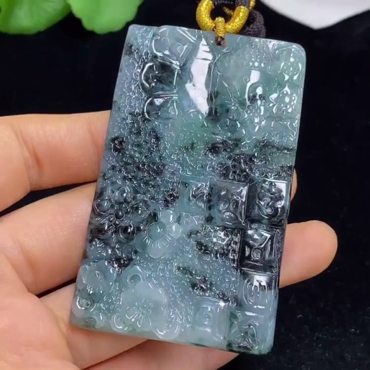 Jadeite Landscape Pendant Total Weight Approx. 70.21g (including rope weight) containing other mineral components