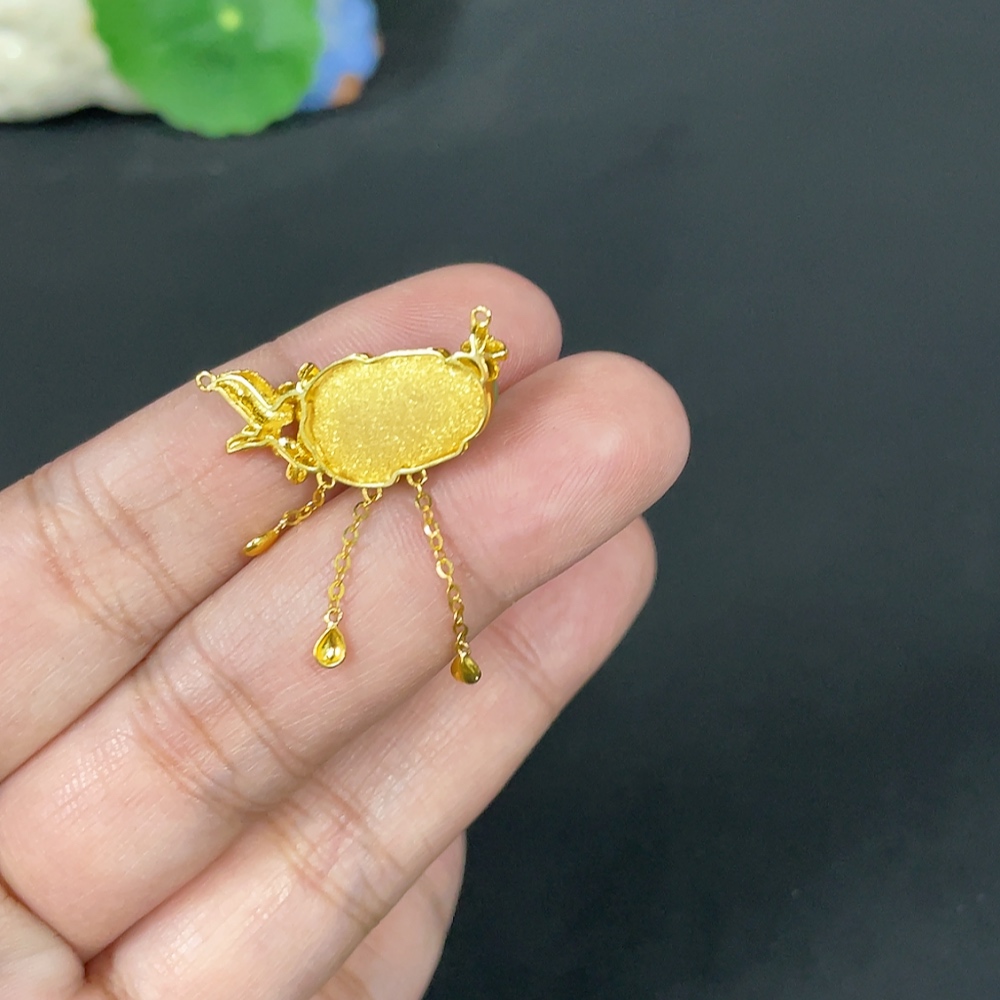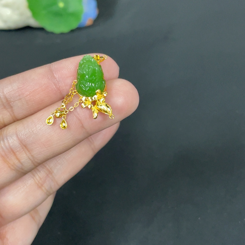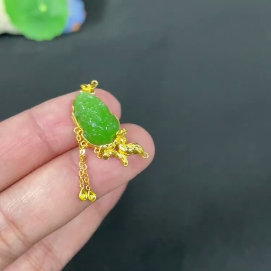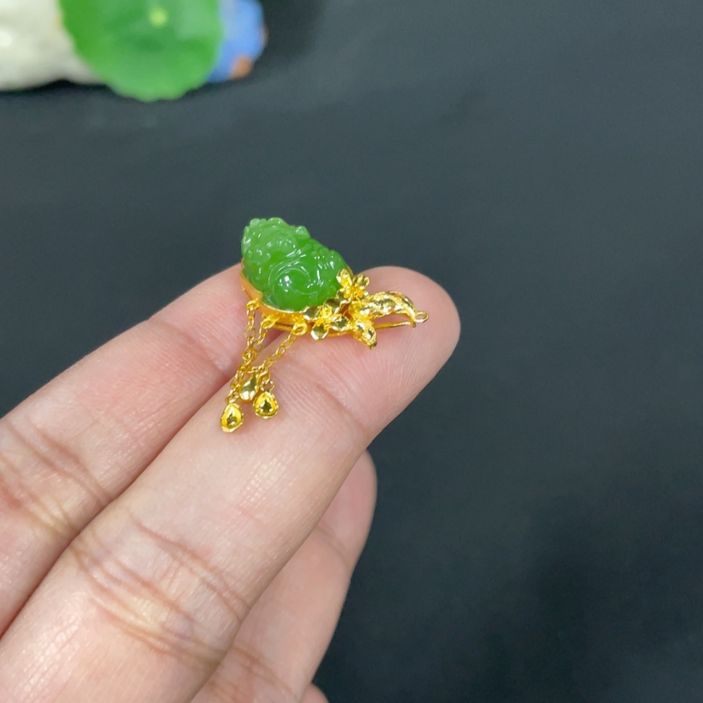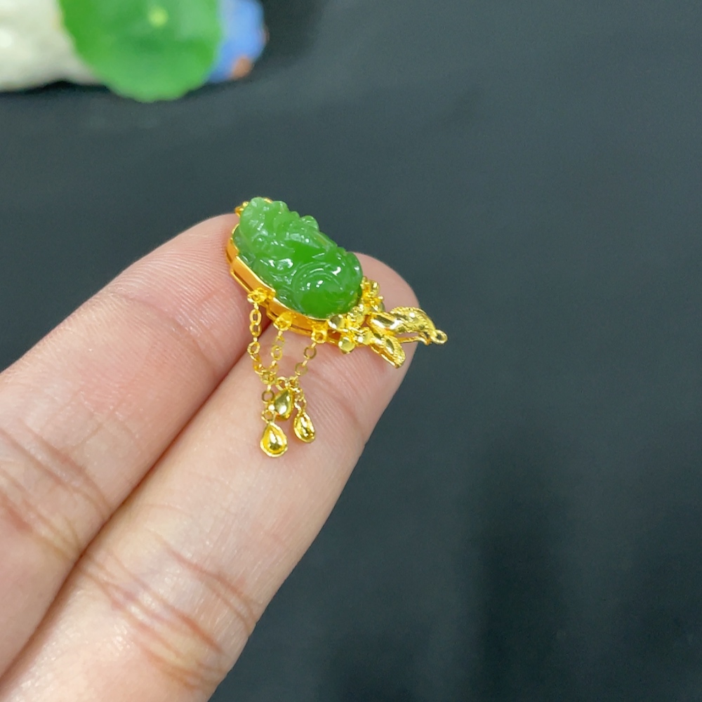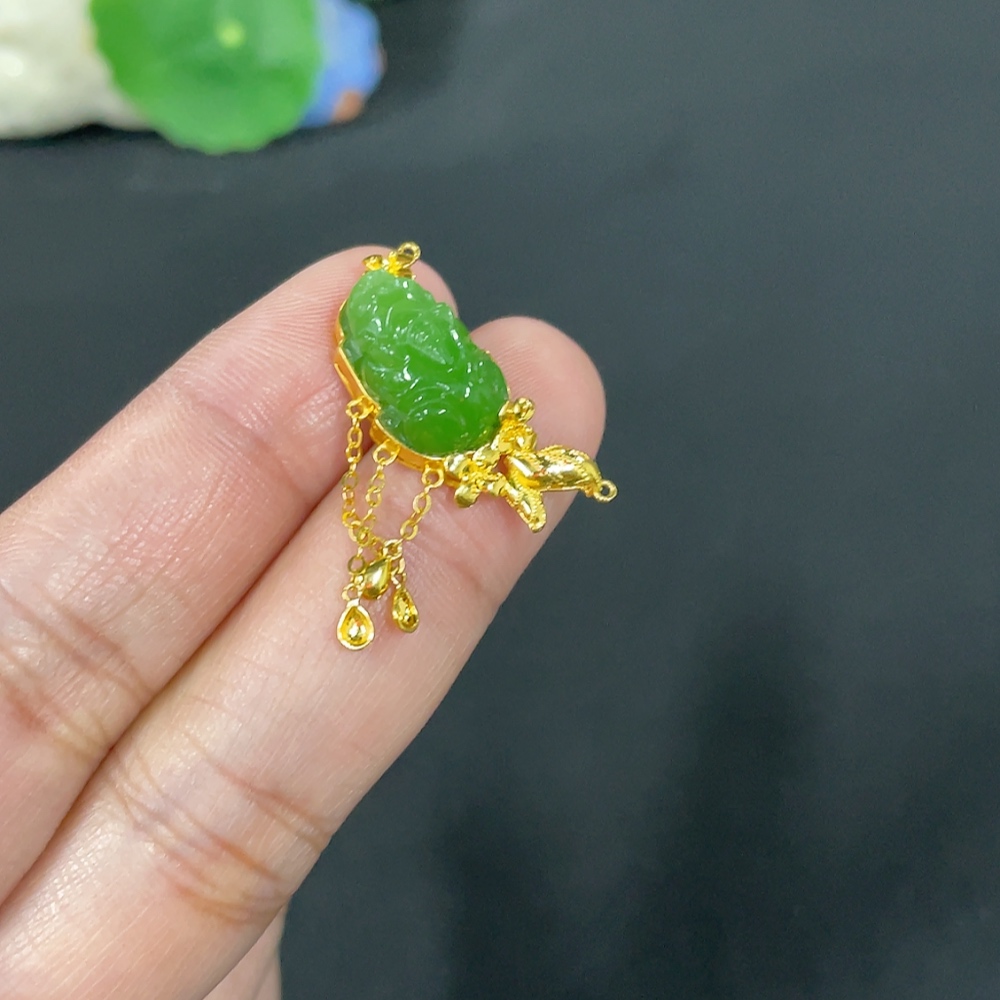 Hetian Jade Jasper Inlaid Pendant, Auspicious Beast, Total Weight Approx. 3.3g, No Hallmark, 18k Gold Content