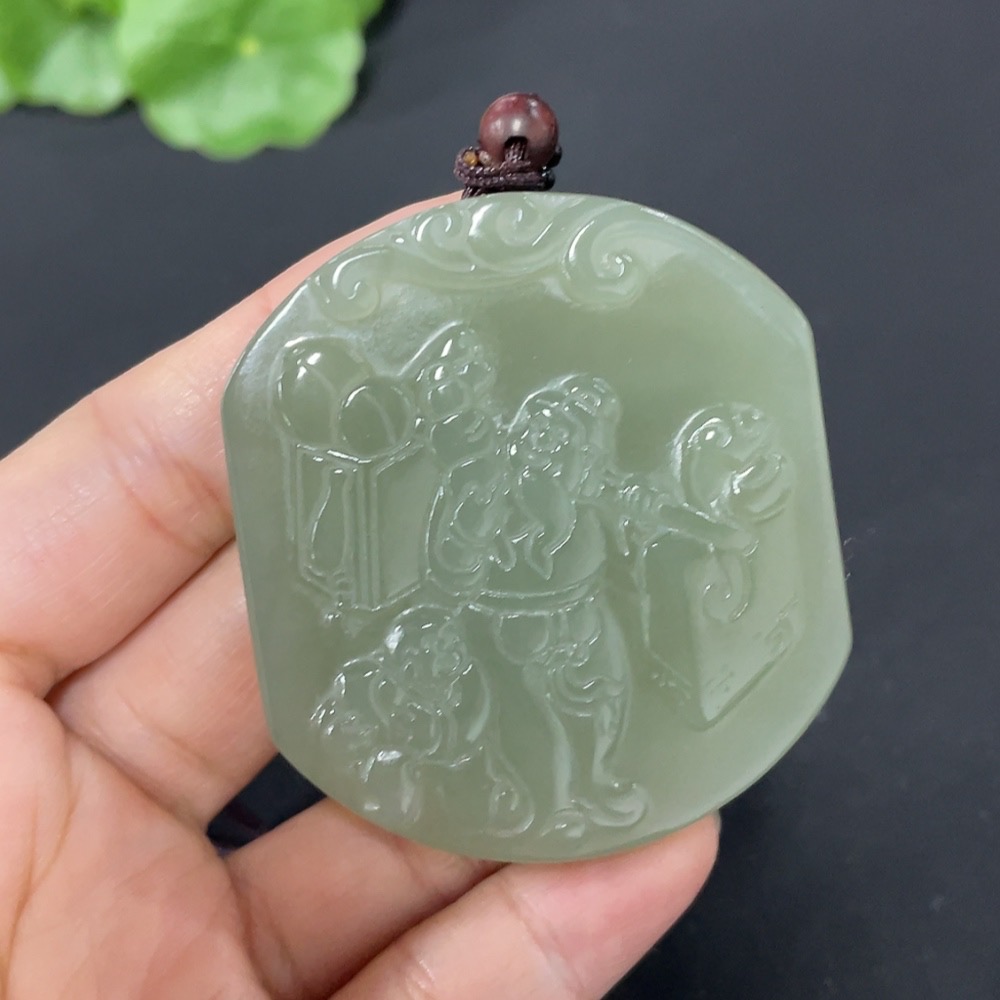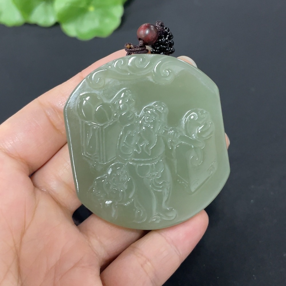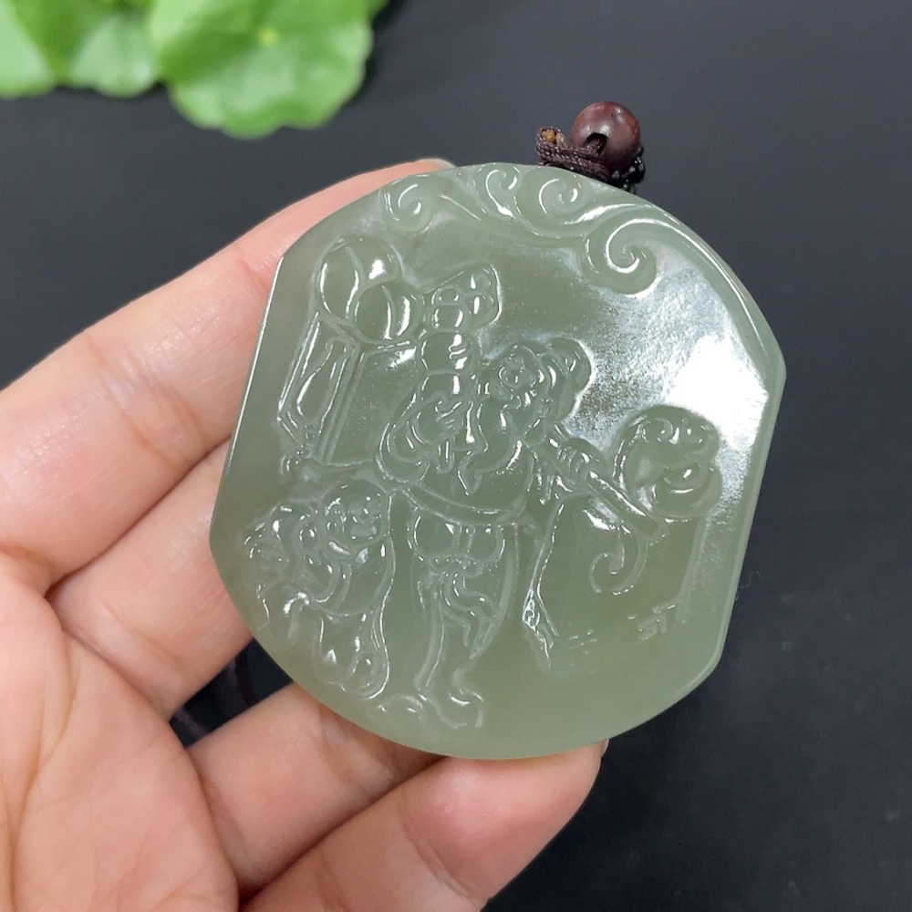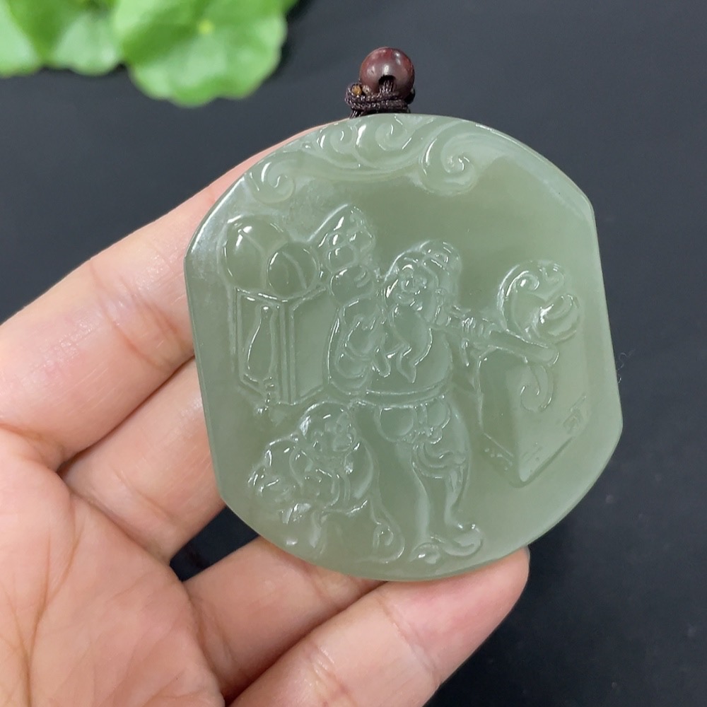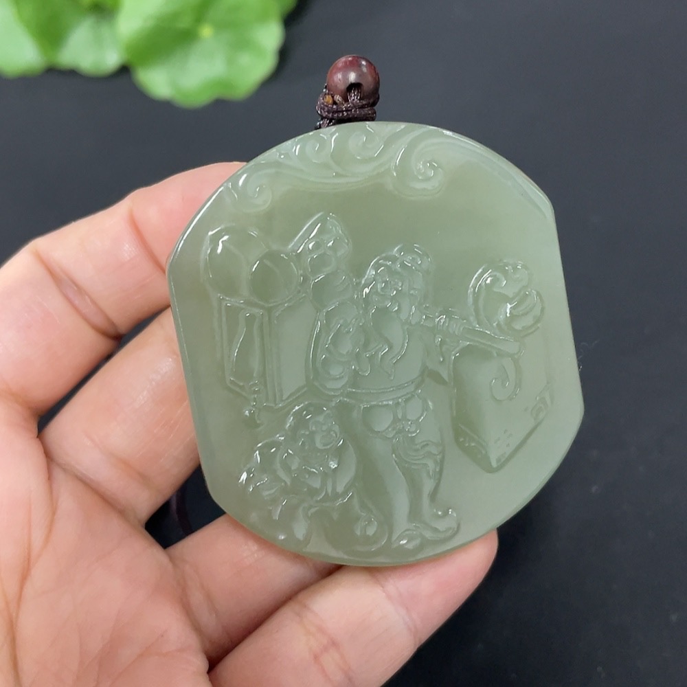 Hetian Jade Pendant God of Wealth Total Weight (including rope): 48.2g