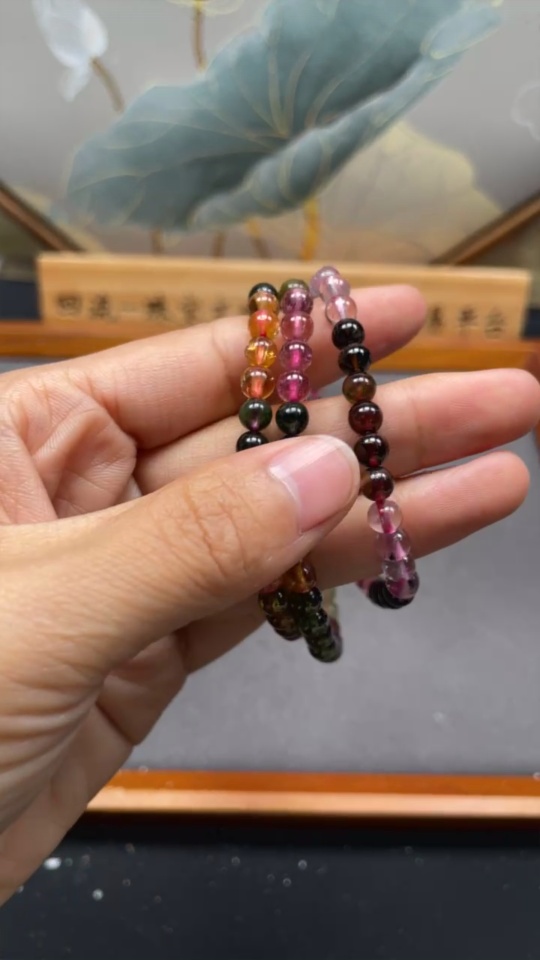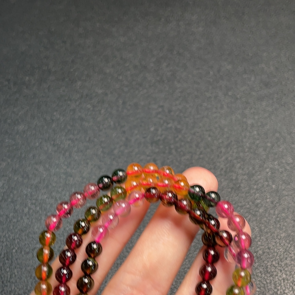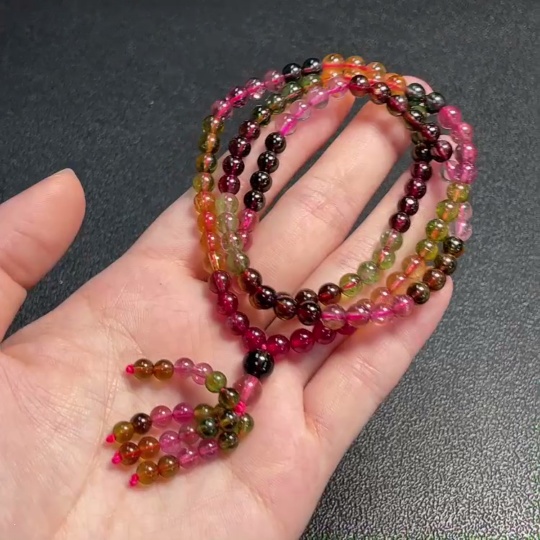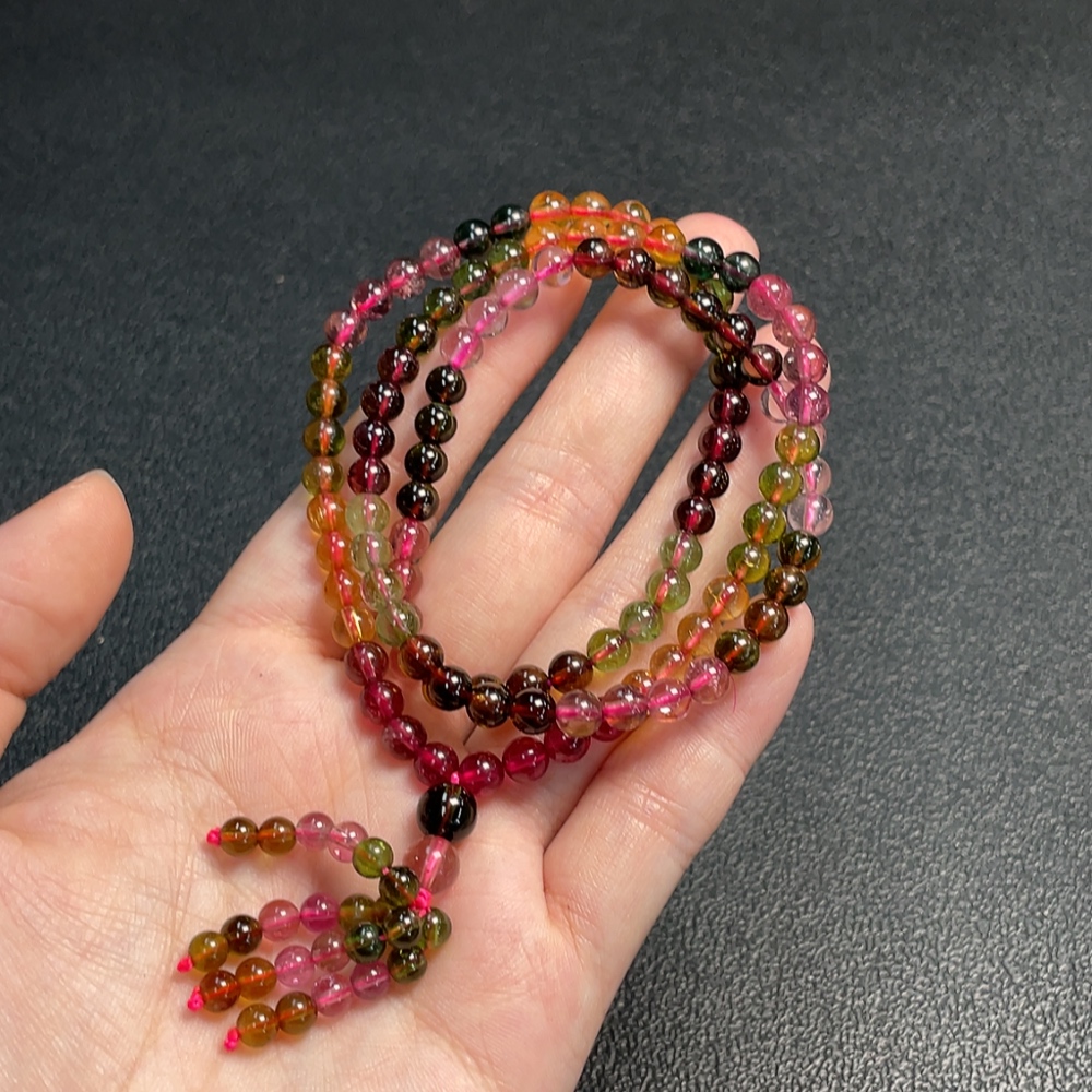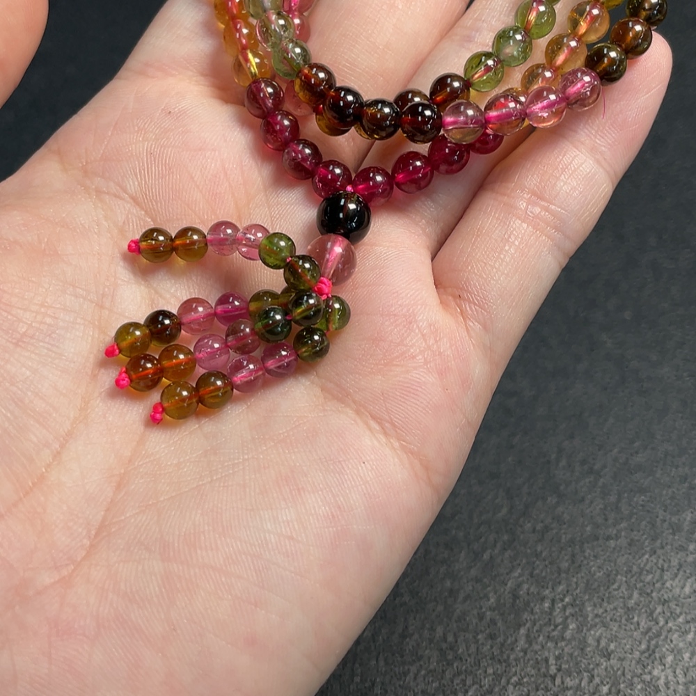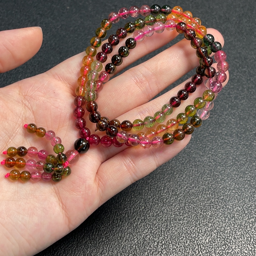 Tourmaline bead necklace with visible organic matter, total weight approximately 29.09g, bead diameter about 5.2mm