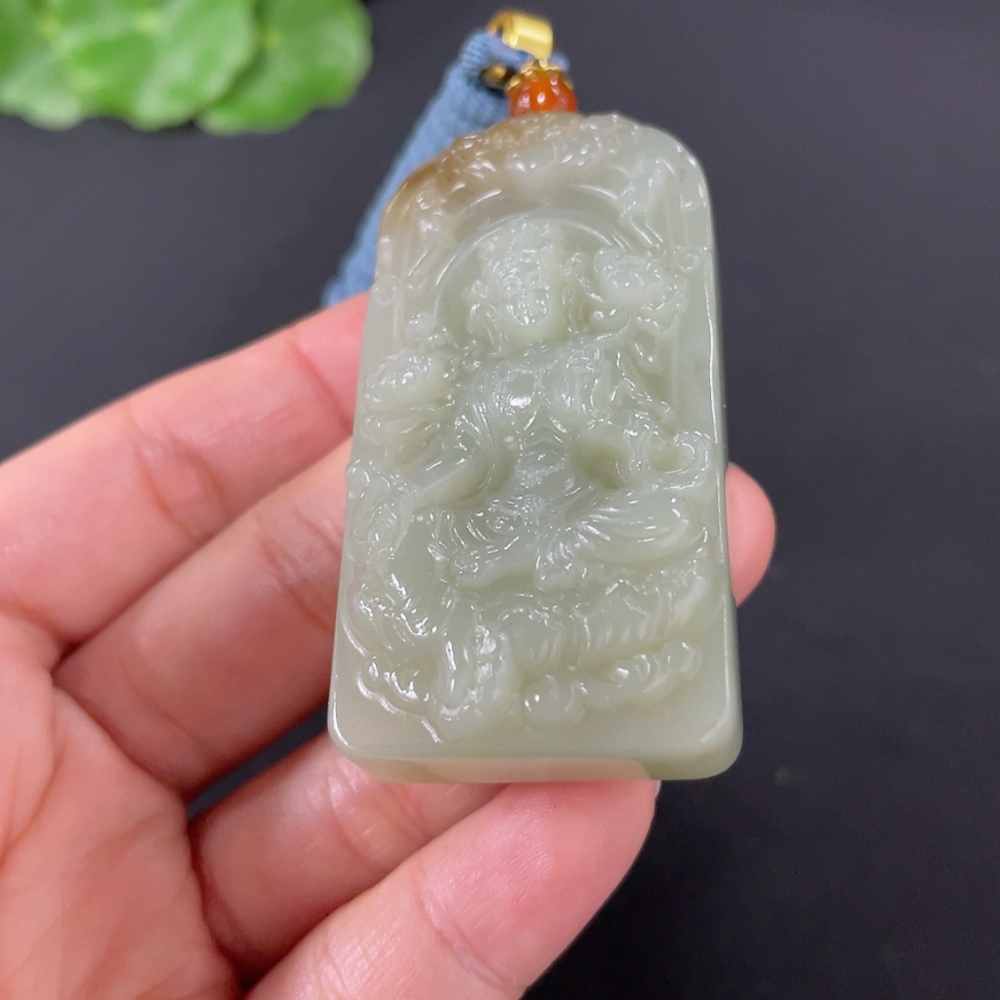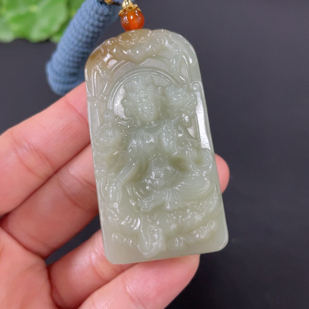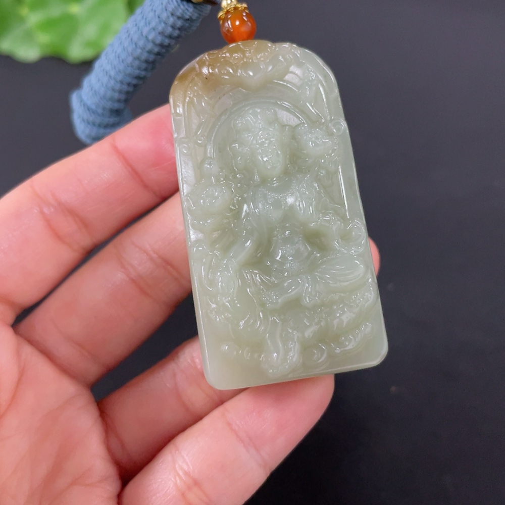 Hetian Jade Pendant Guanyin Total Weight (with rope) 49.7g