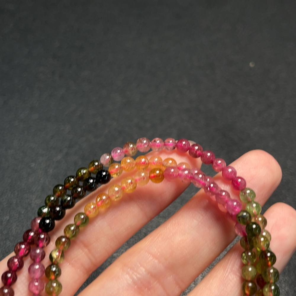 Tourmaline Bead Necklace with Visible Organic Matter, Total Weight Approx. 12.06g, Size About 3.8mm