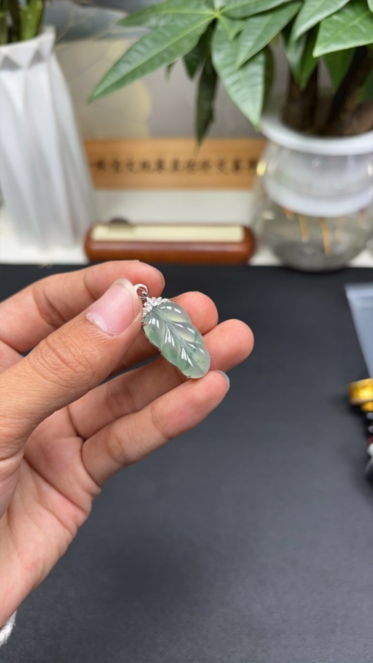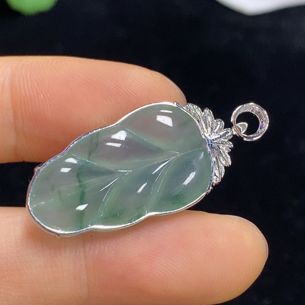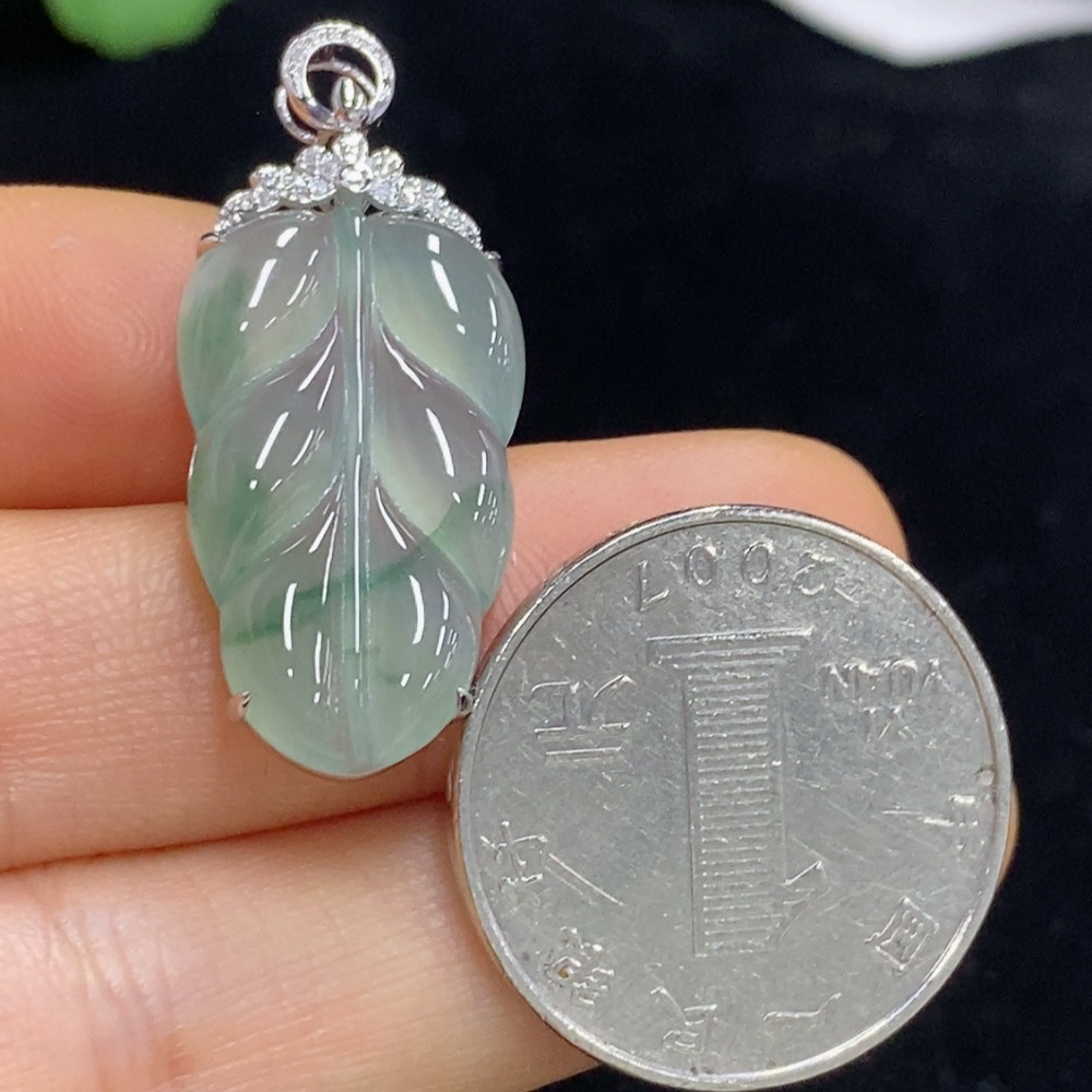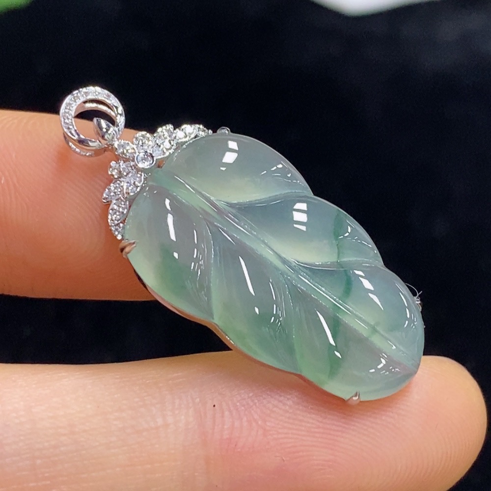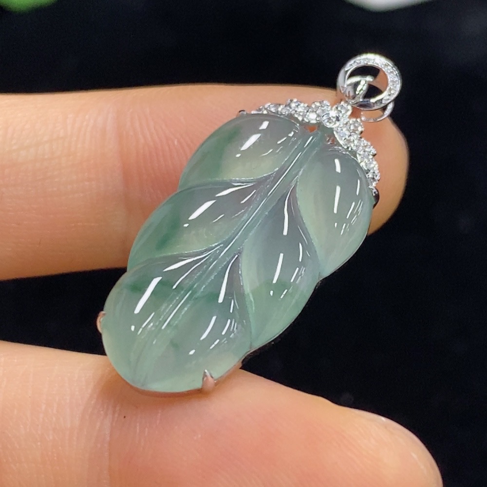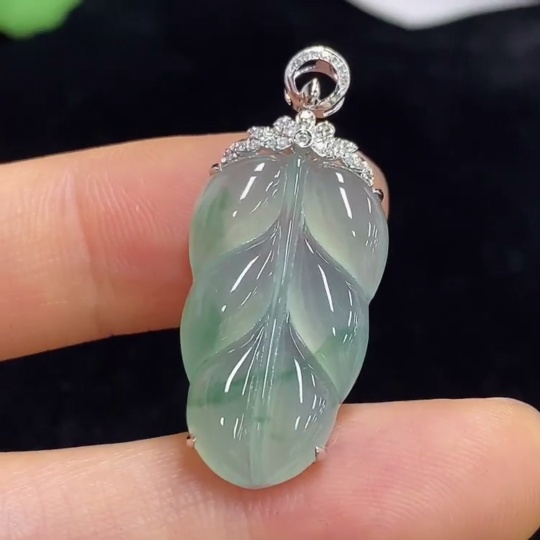 Jadeite Leaf Inlaid Pendant 18k with Diamond Accents Total Weight Approximately 3.48g