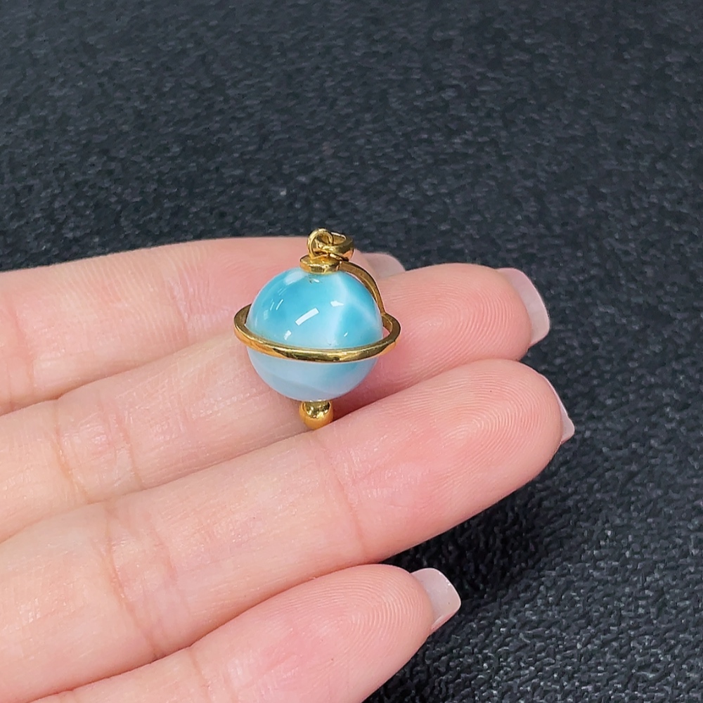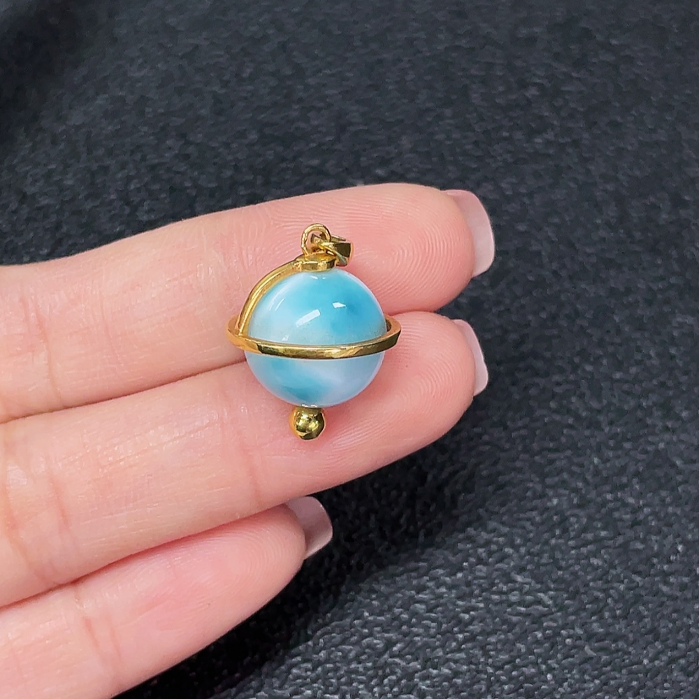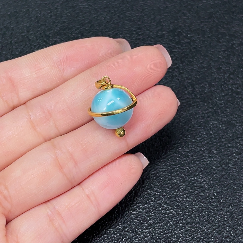 18K Larimar Pendant, Total Weight Approx. 4.65g, Stone Size Approx. 12.2mm