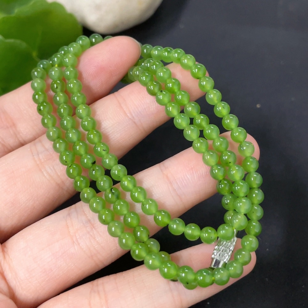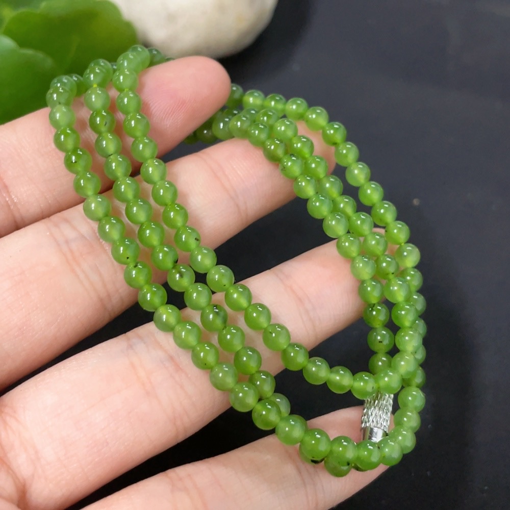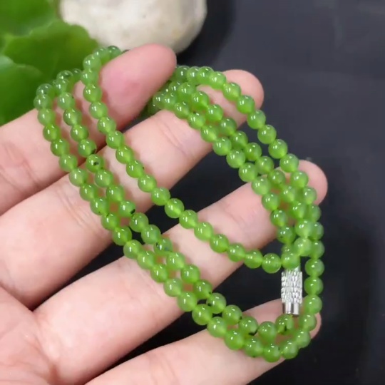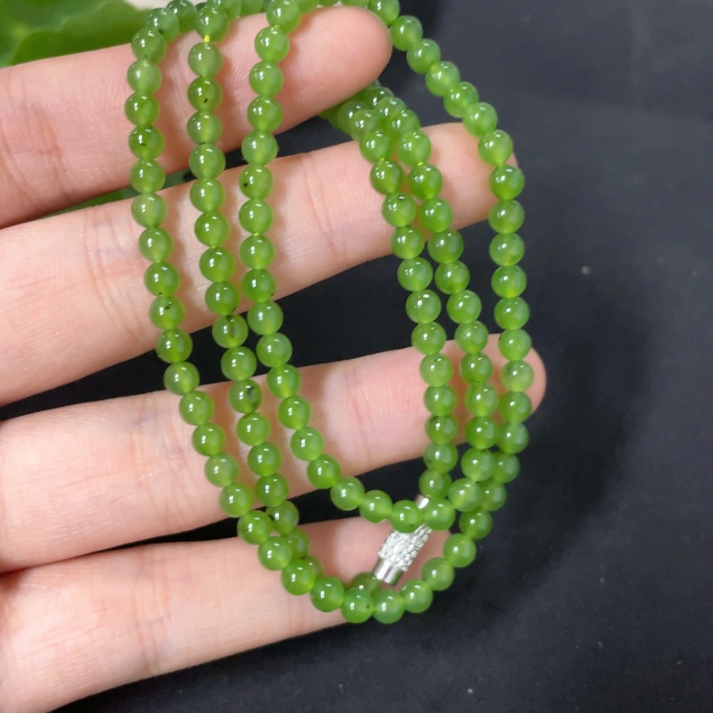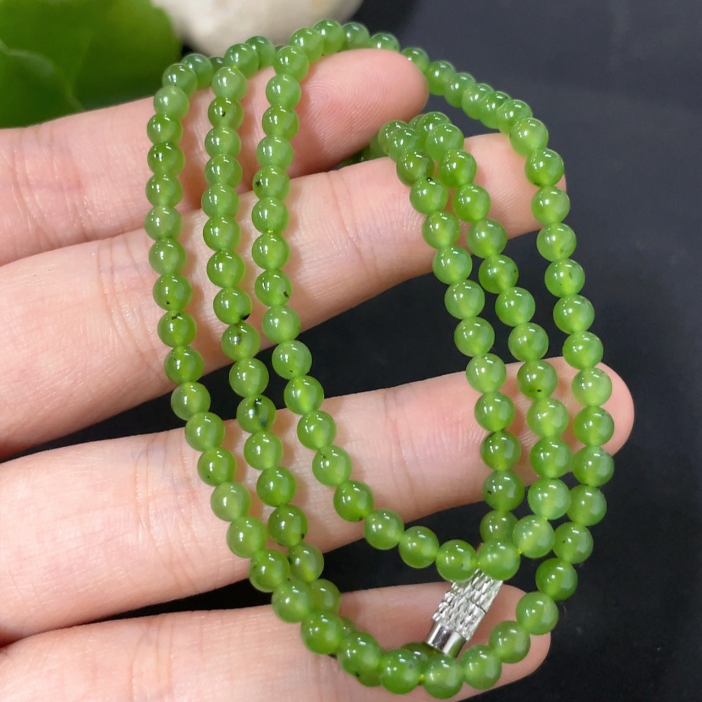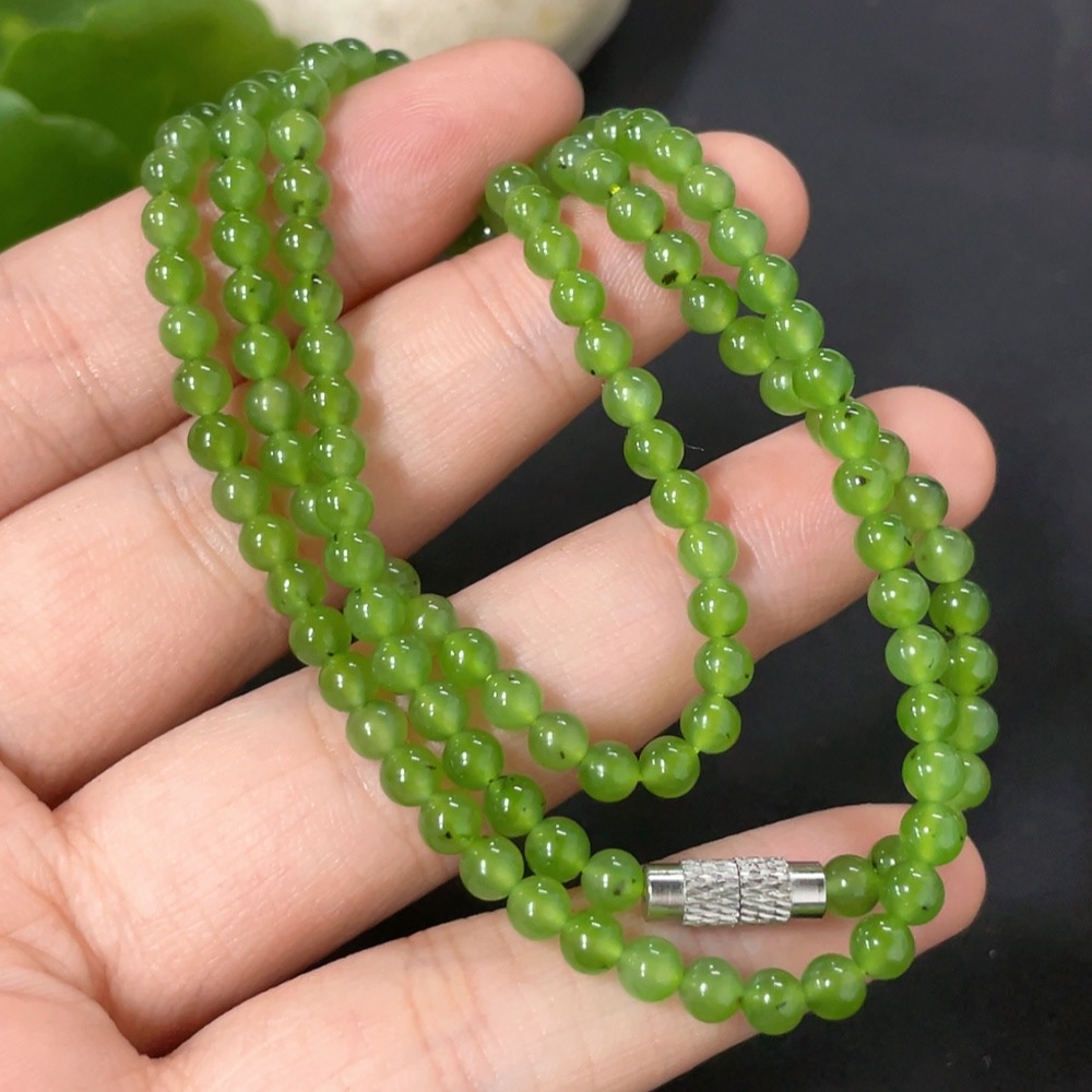 Hetian Jade Jasper Bead Necklace Non-Gold Card 3.7mm Approx. Total Weight About 13.1g
