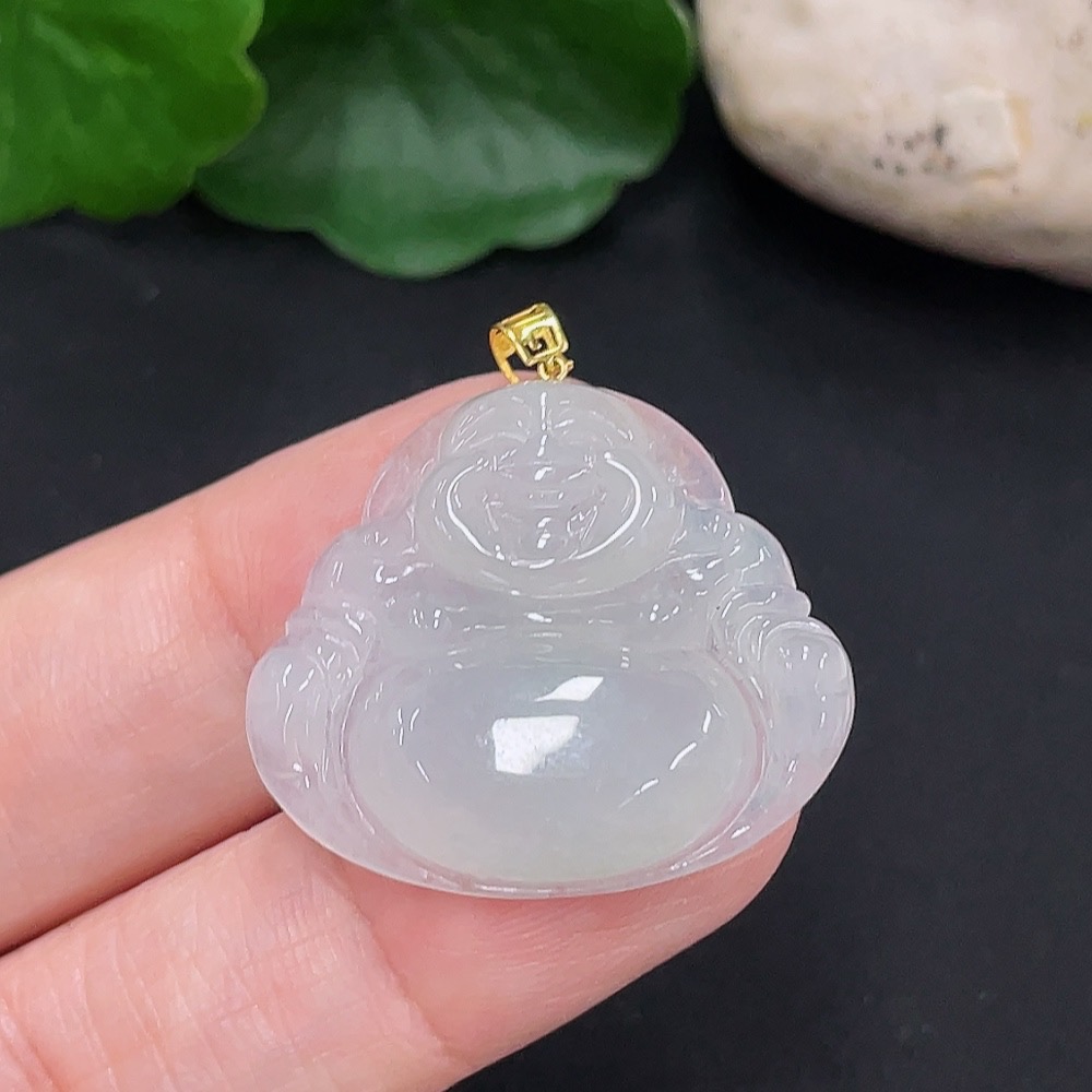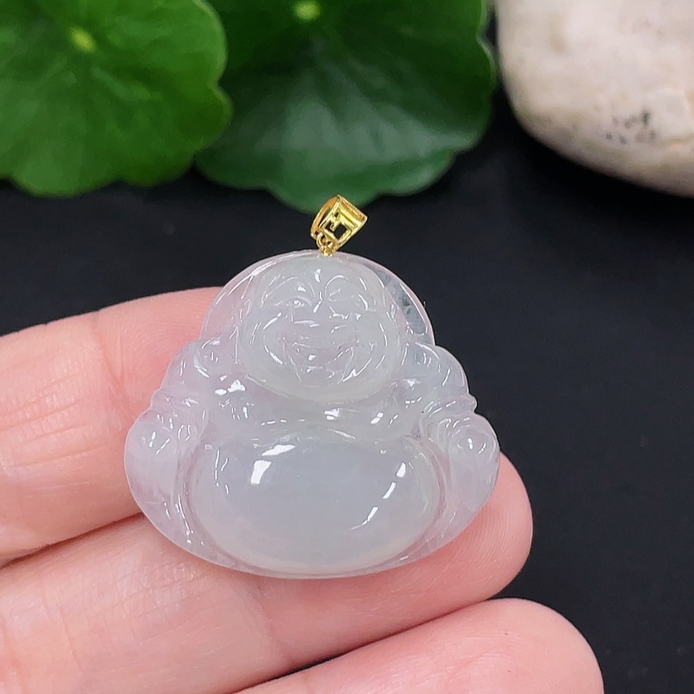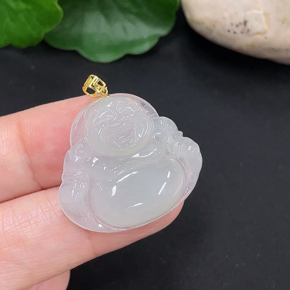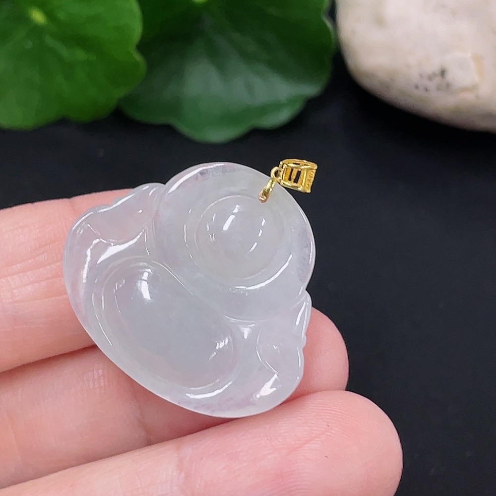 Jadeite Buddha Pendant 18K Gold Total Weight Approx. 5.4g