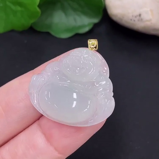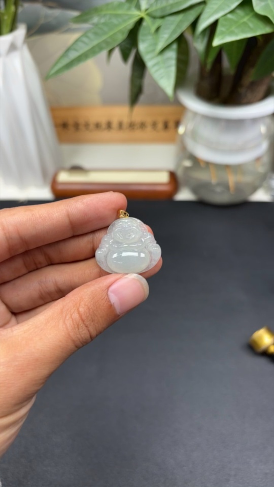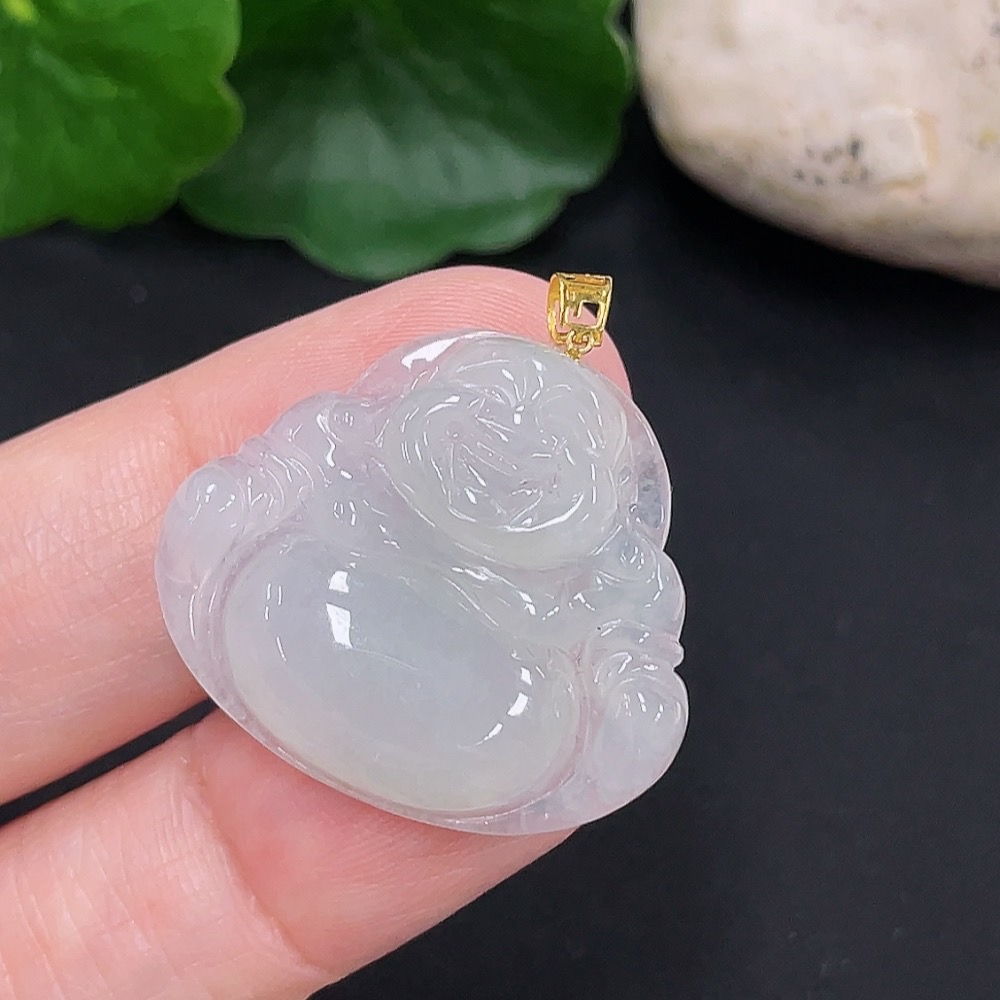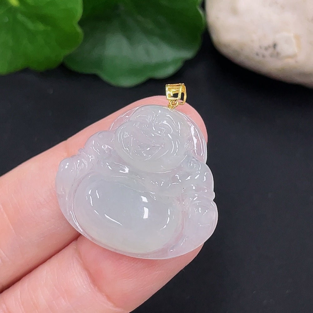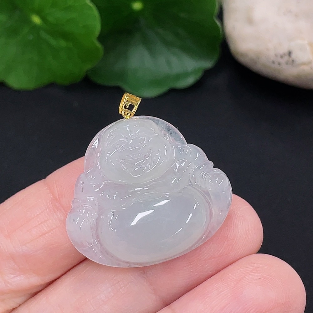 Jadeite Buddha Pendant 18K Gold Total Weight Approx. 5.4g