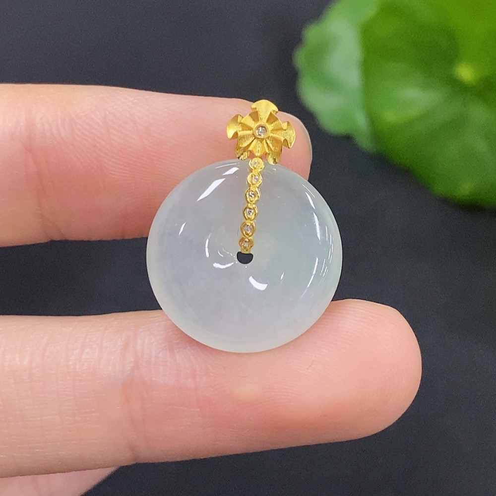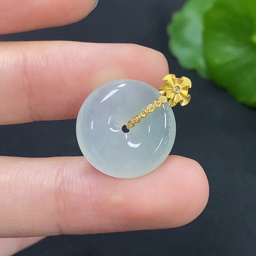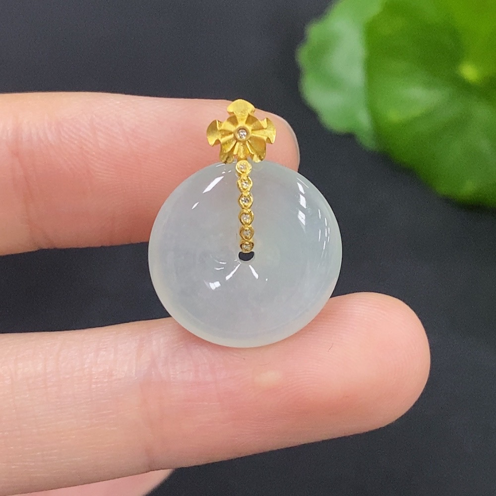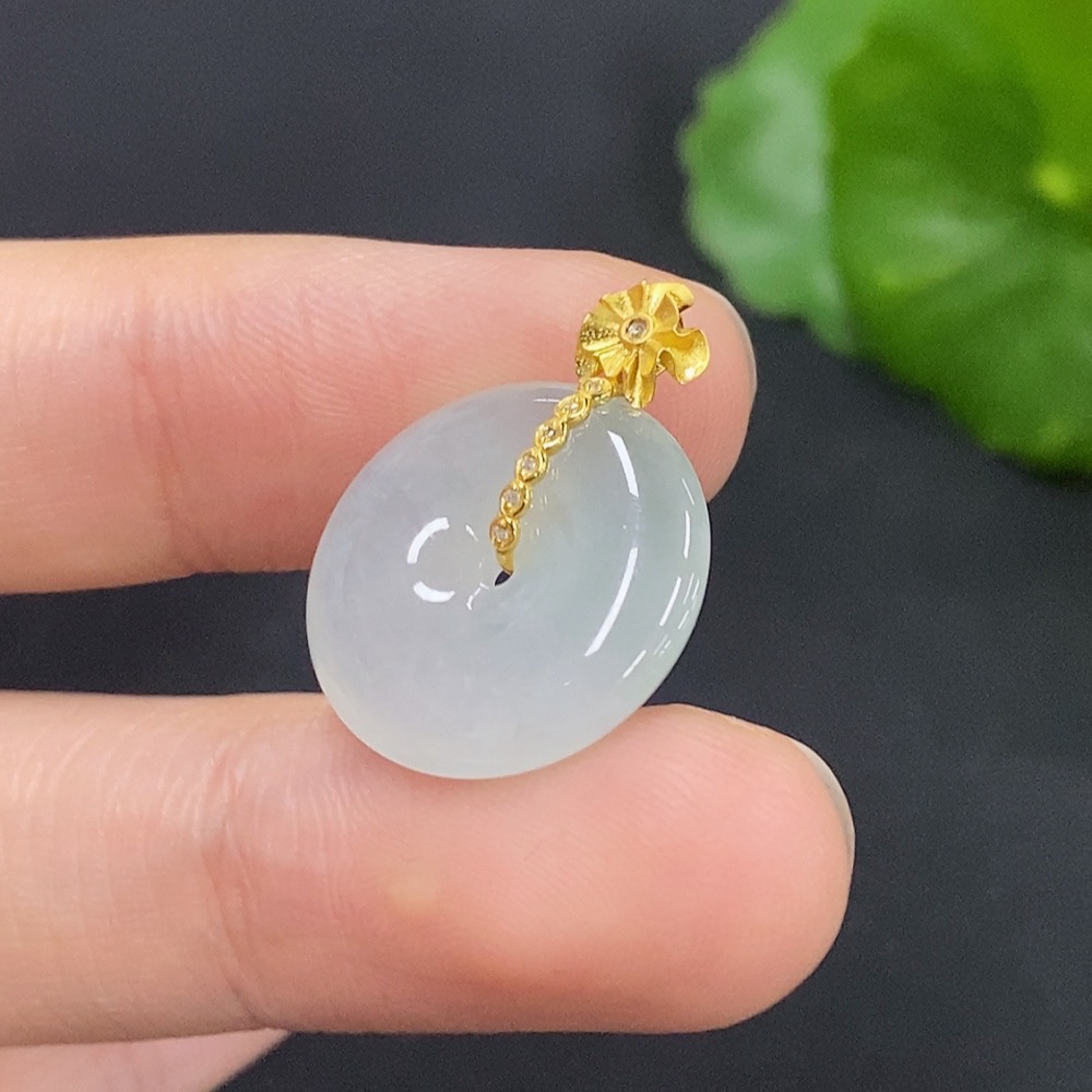Jadeite Peace Knot Pendant with 18K Gold and Diamond Accents, Total Weight Approx. 2.6g