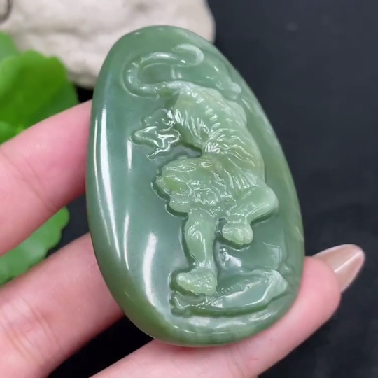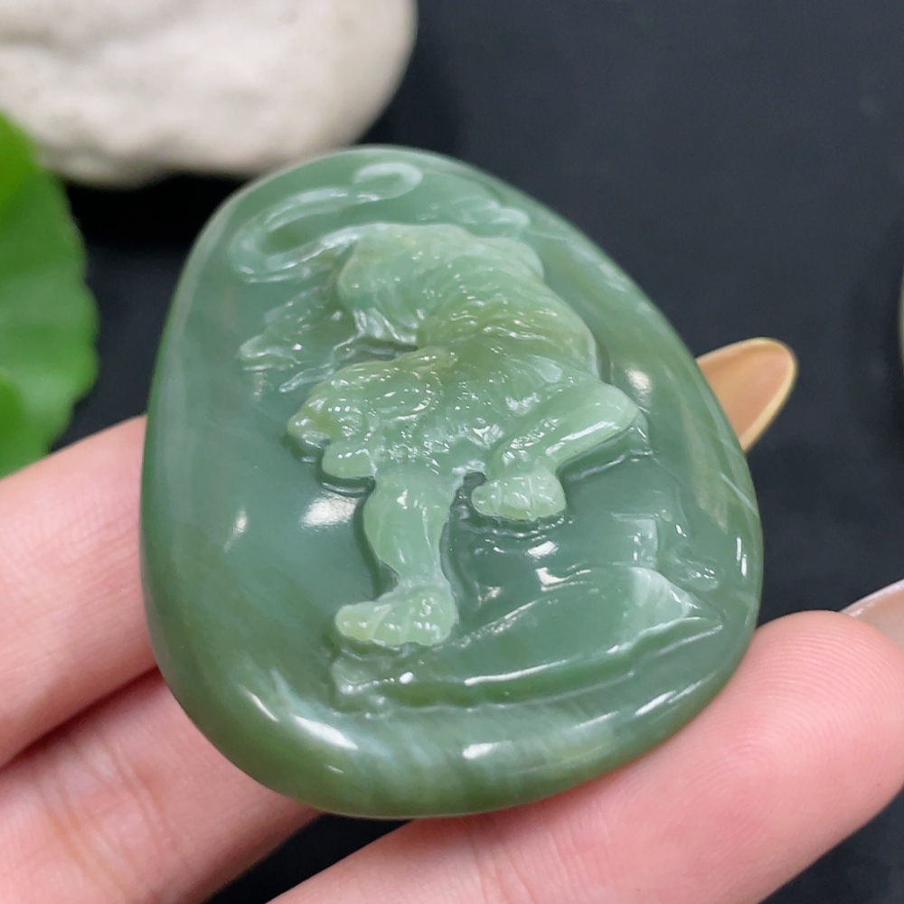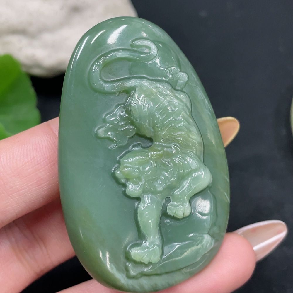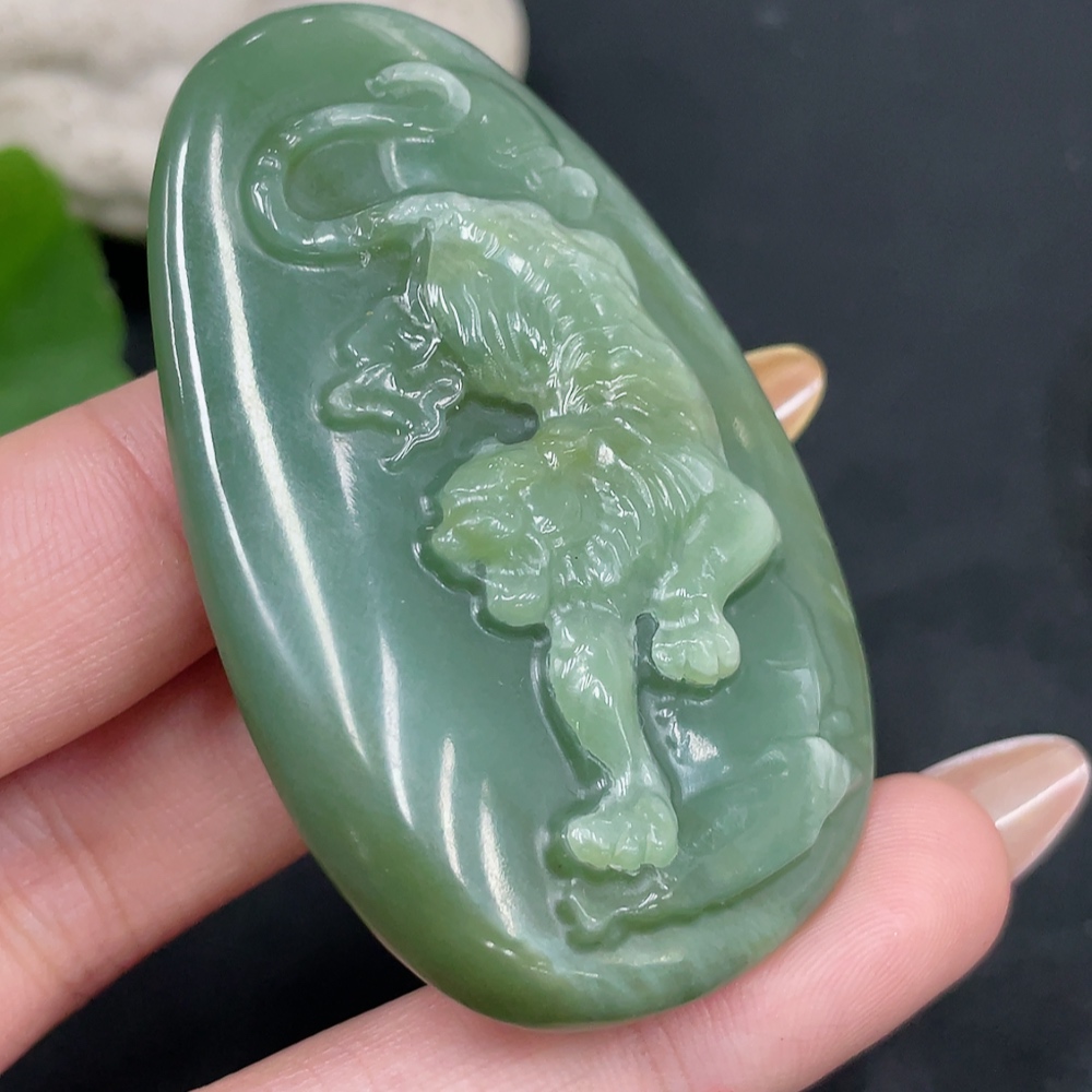 Hetian Jade Pendant - Fierce Tiger Descending the Mountain, Total Weight Approx. 36.6g