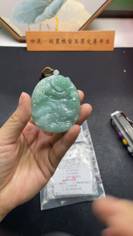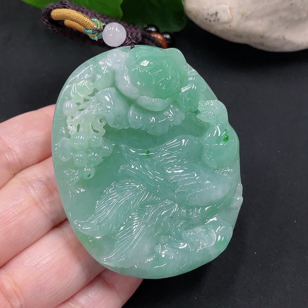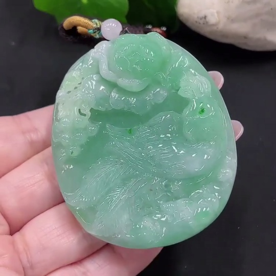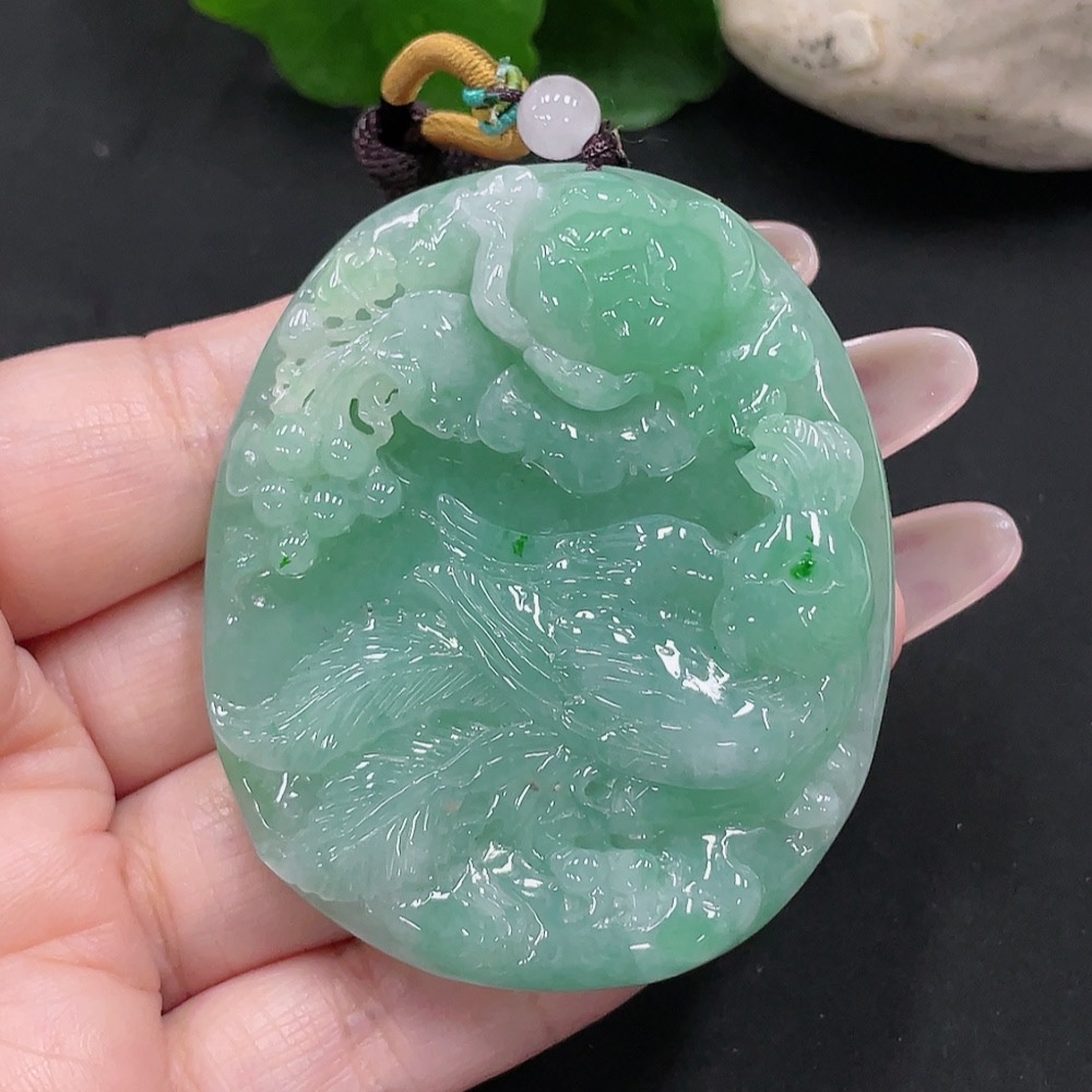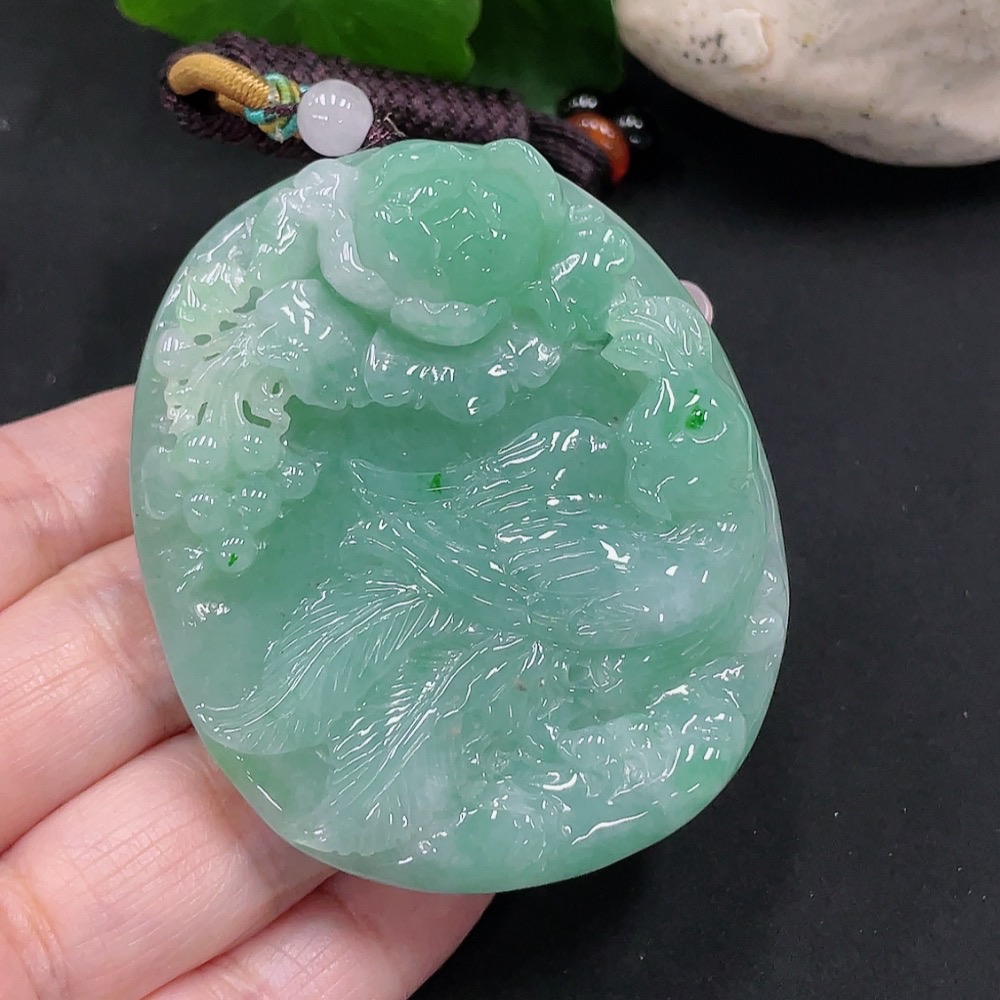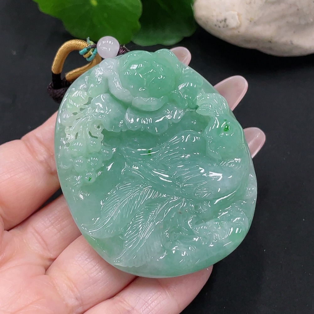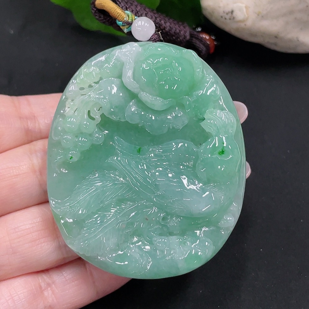 Jadeite Phoenix and Peony Pendant