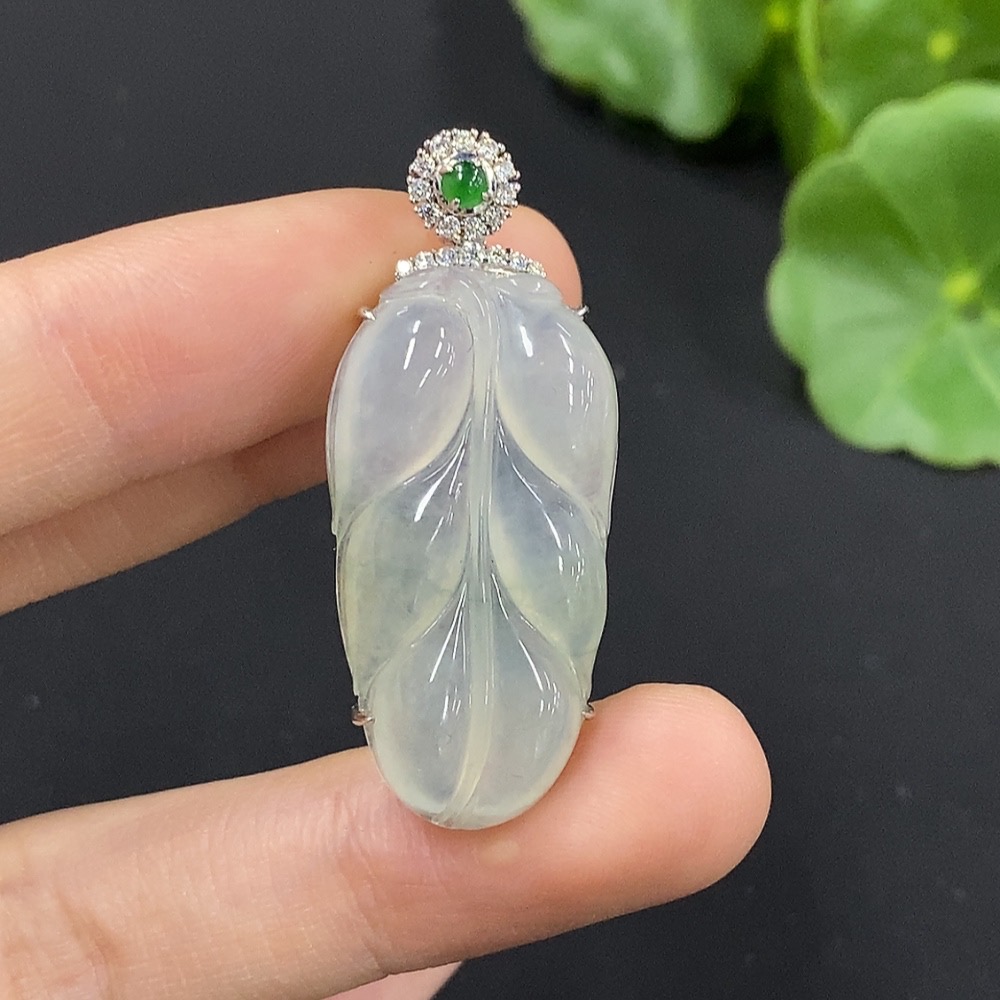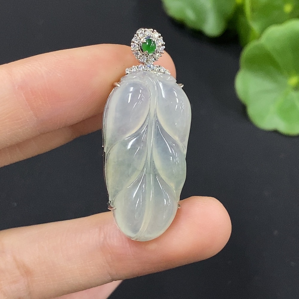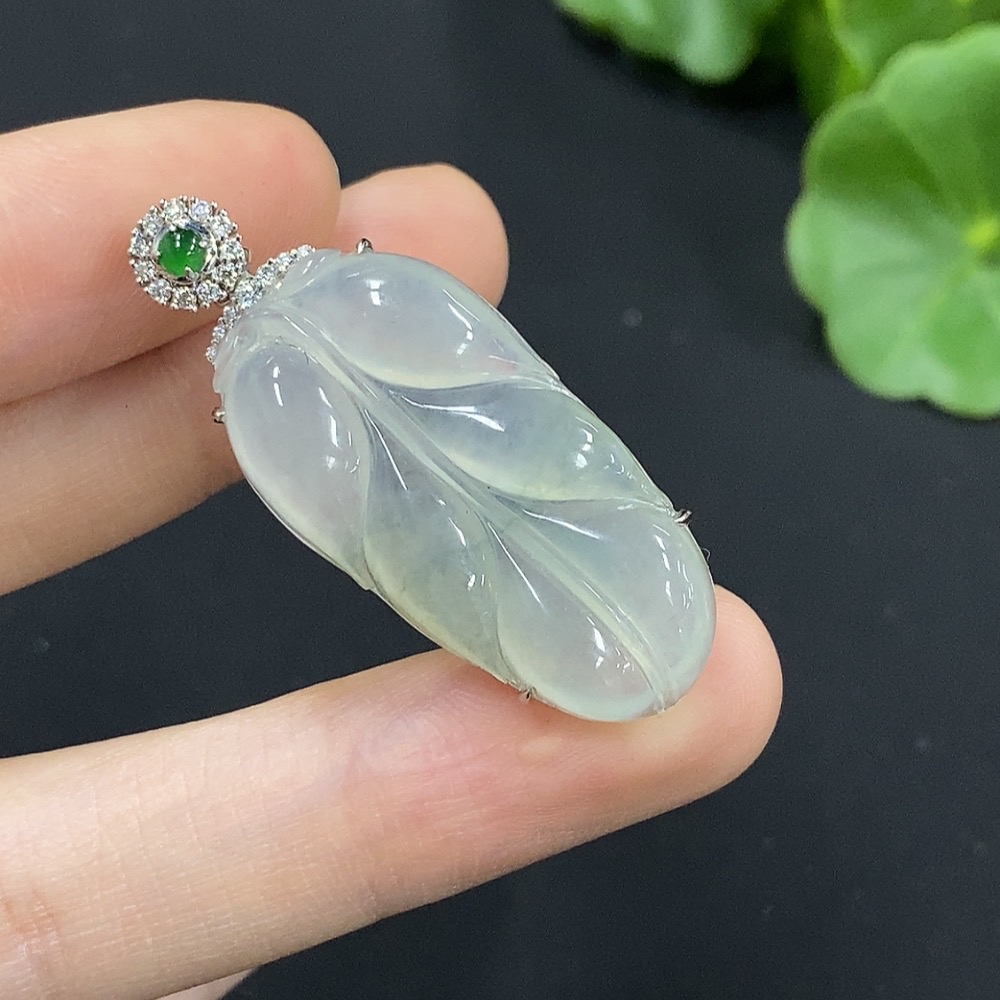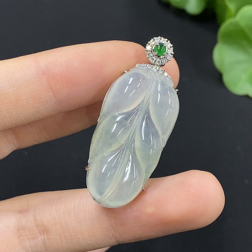 Jadeite Leaf Inlay Pendant 18K Gold Non-Diamond Total Weight Approx. 6.45g