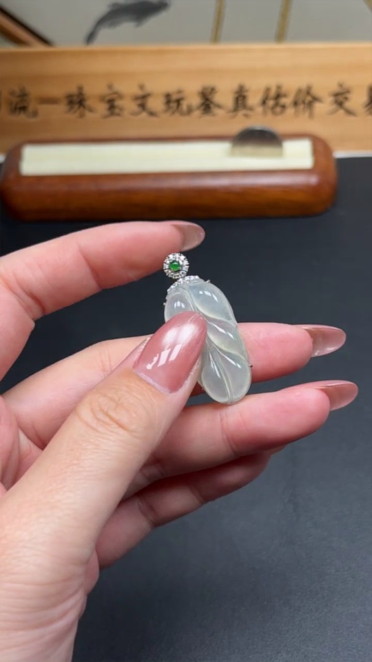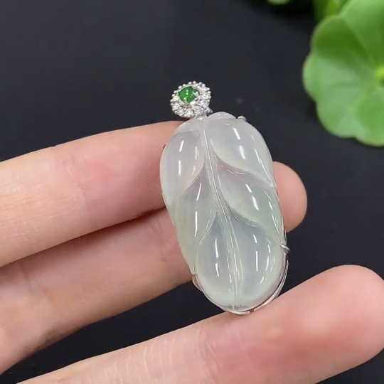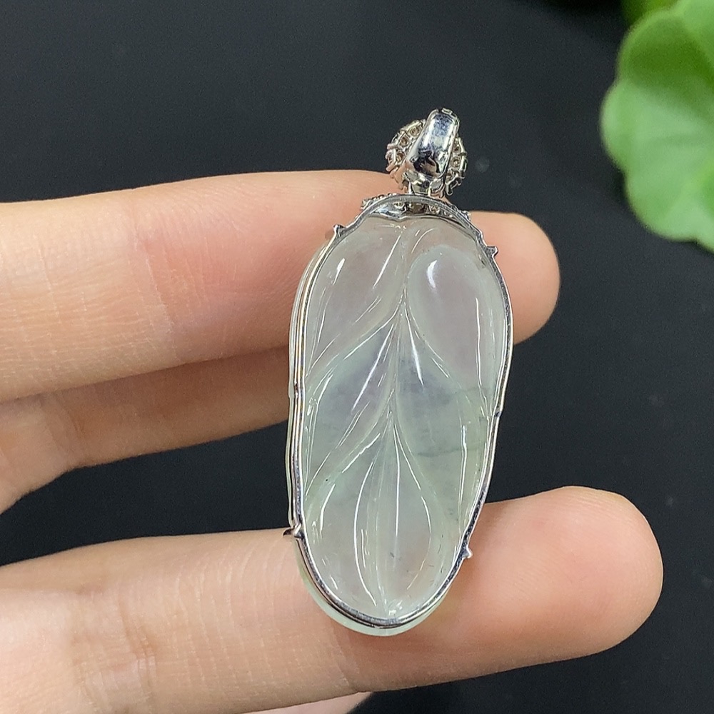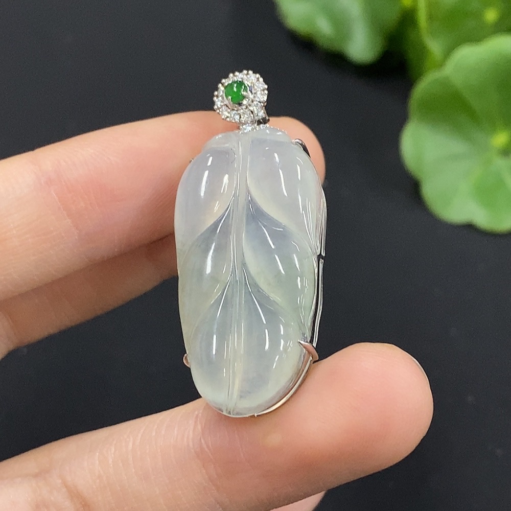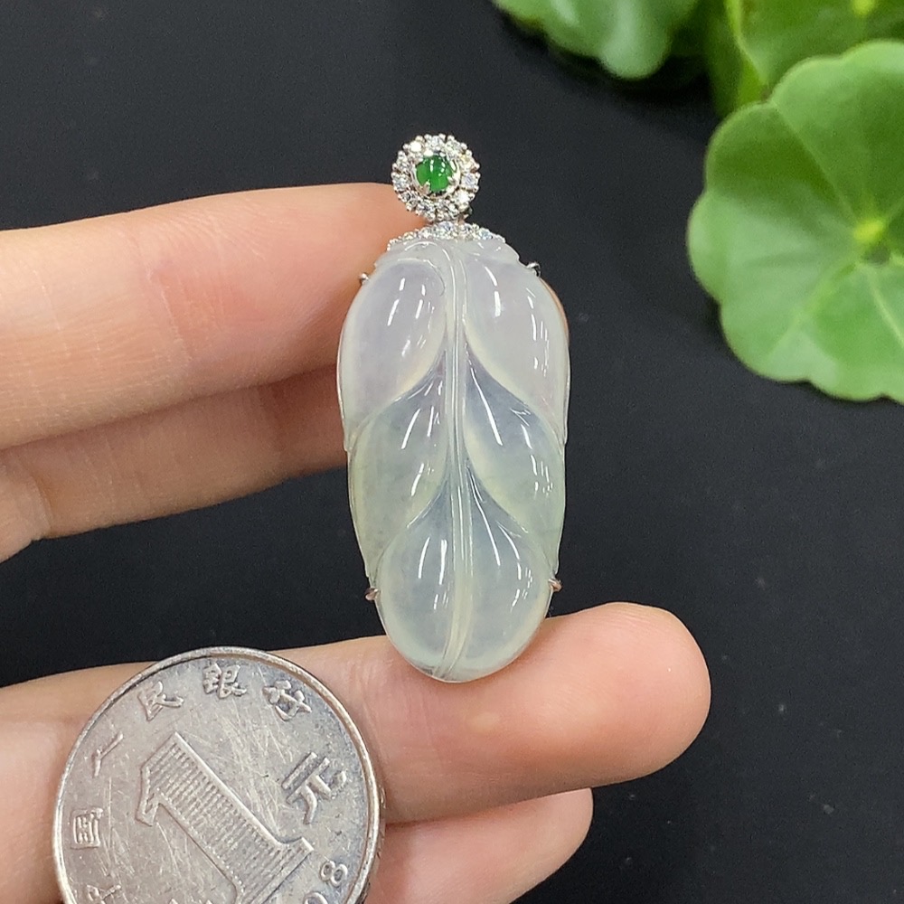 Jadeite Leaf Inlay Pendant 18K Gold Non-Diamond Total Weight Approx. 6.45g