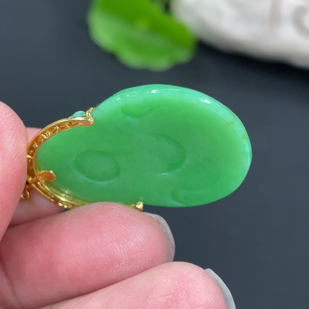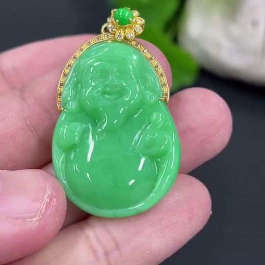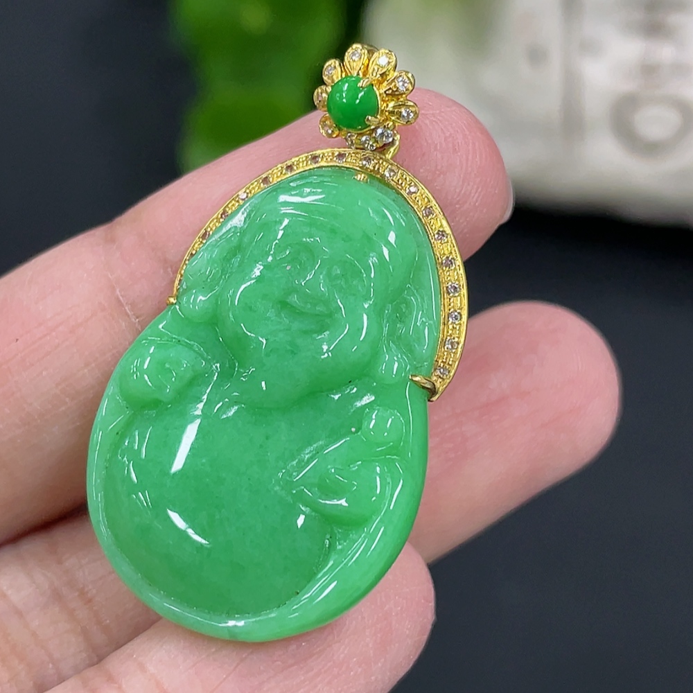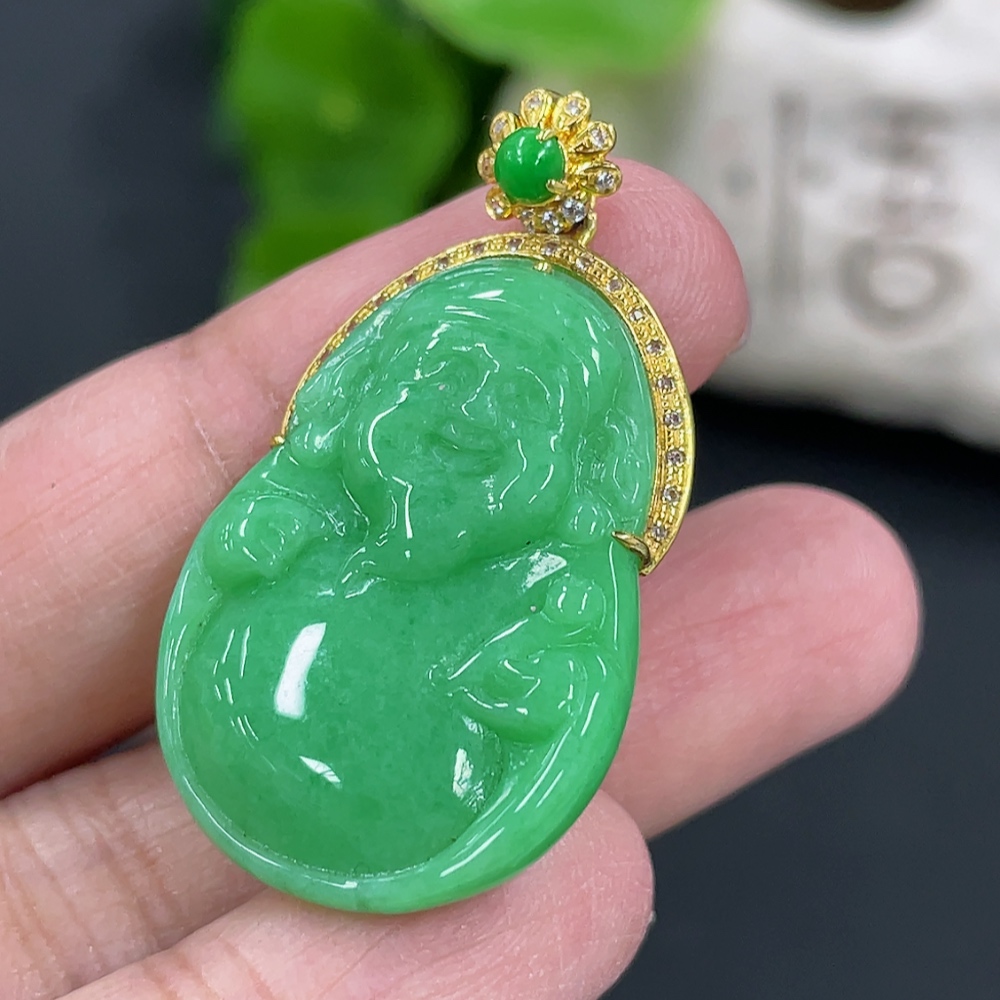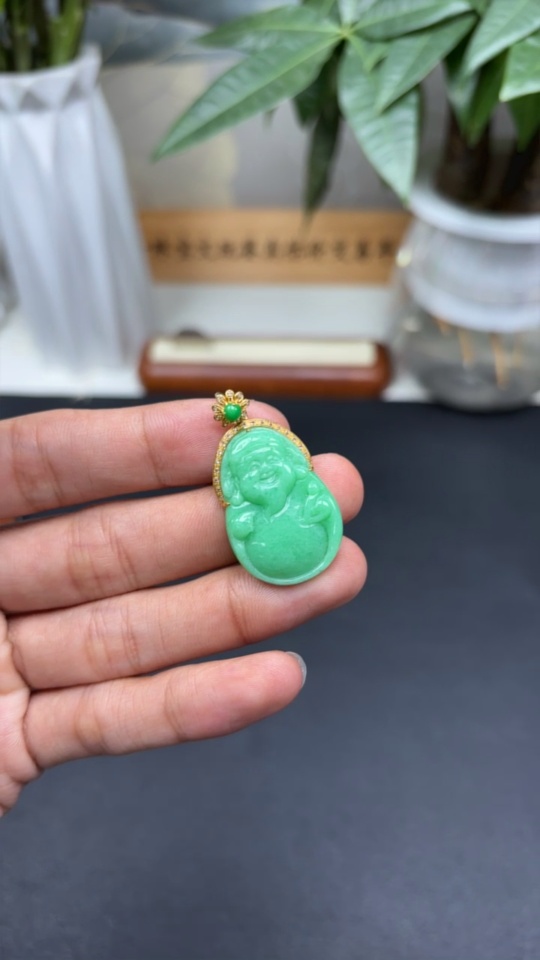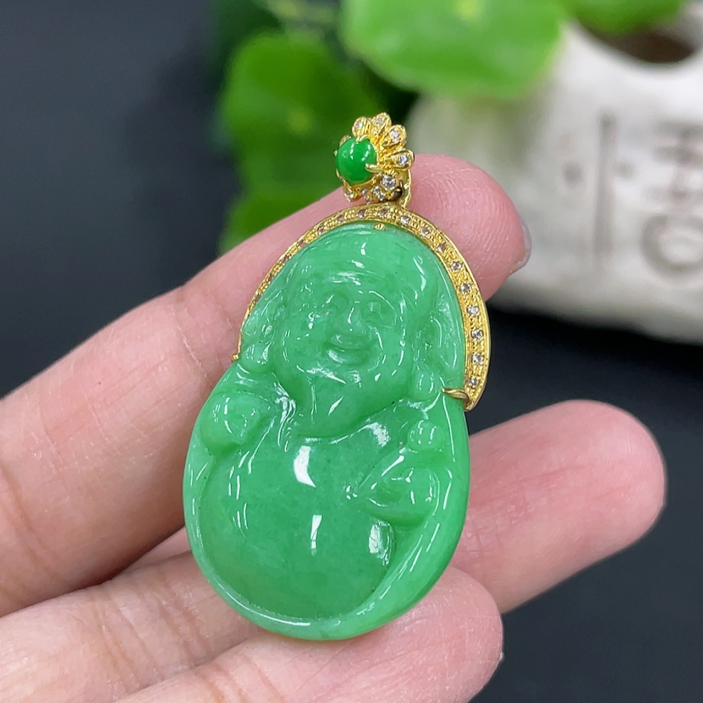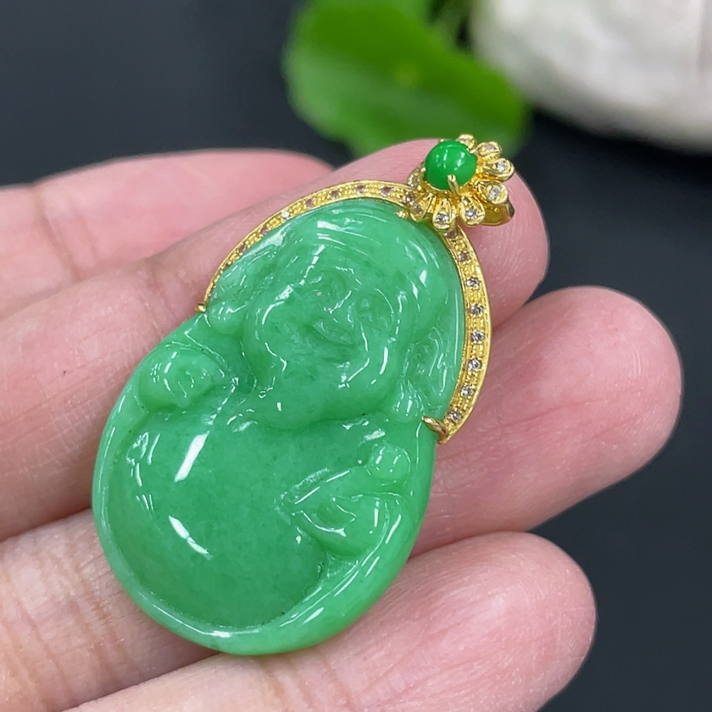 Jadeite Wealth God Pendant Total Weight Approx. 5.55g 18K Gold Clasp Non-Diamond