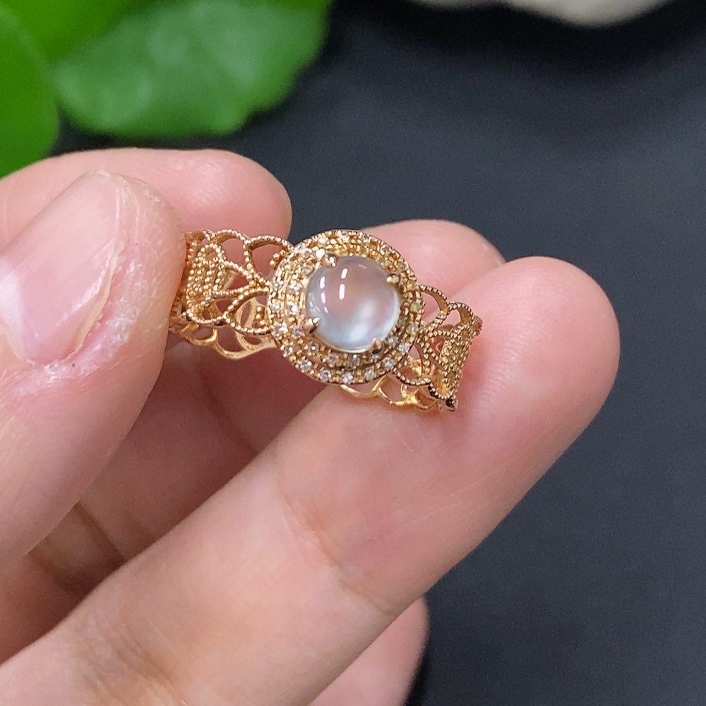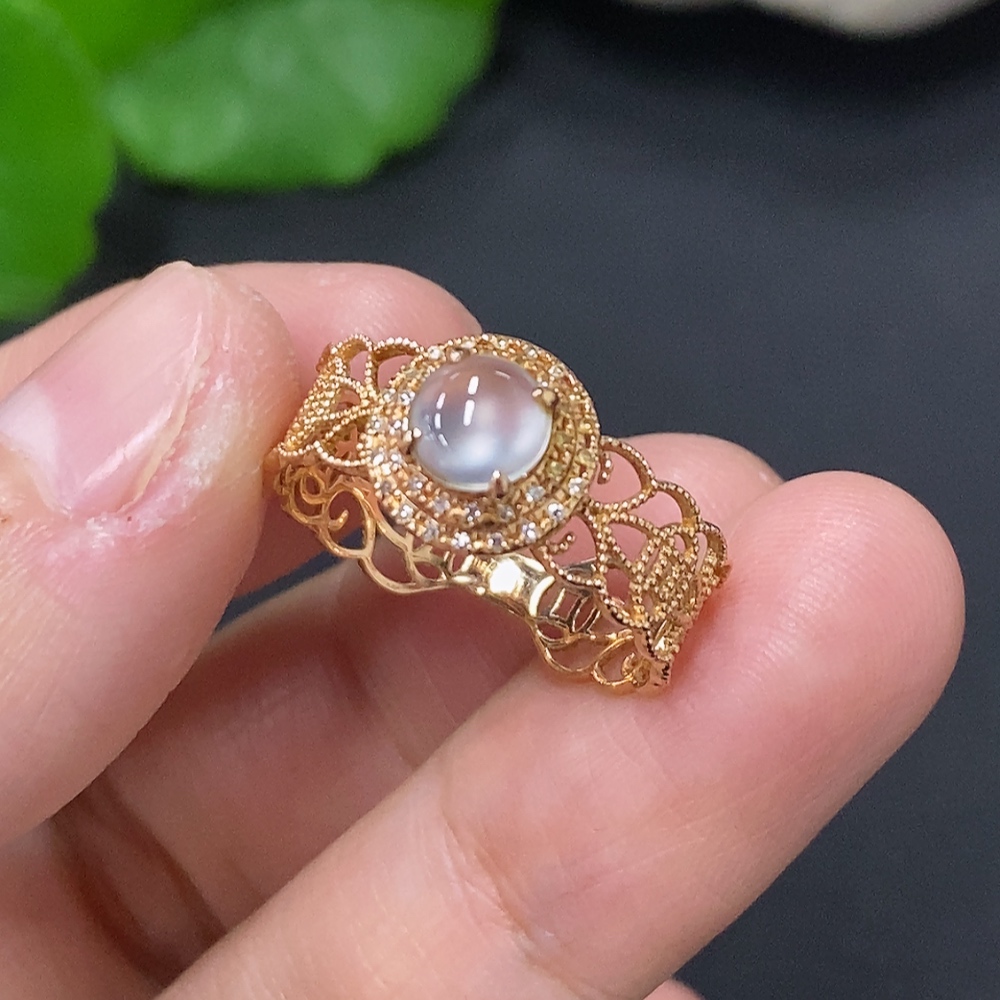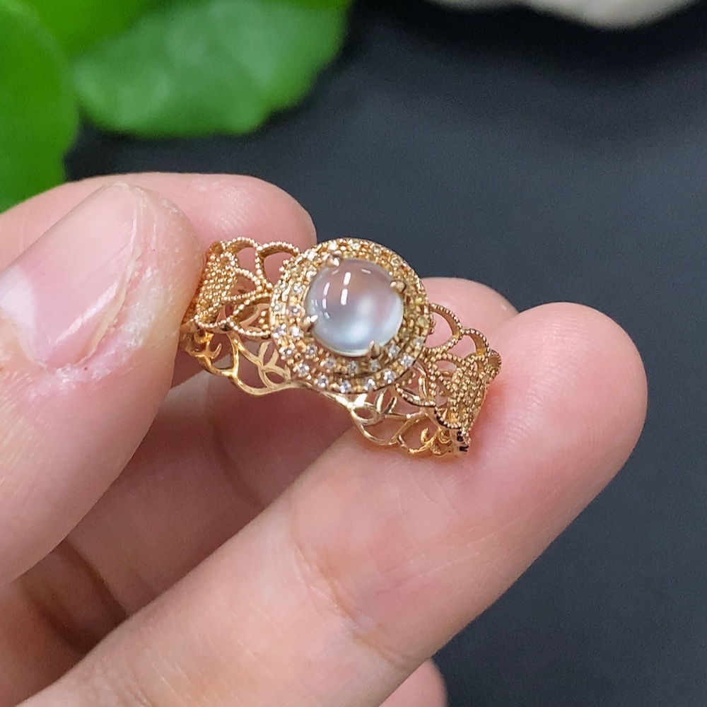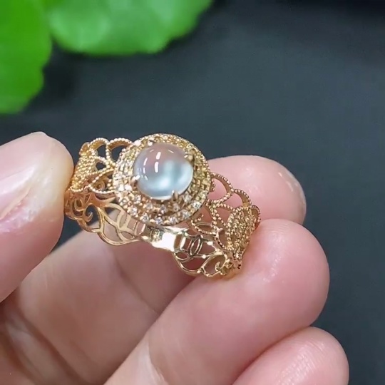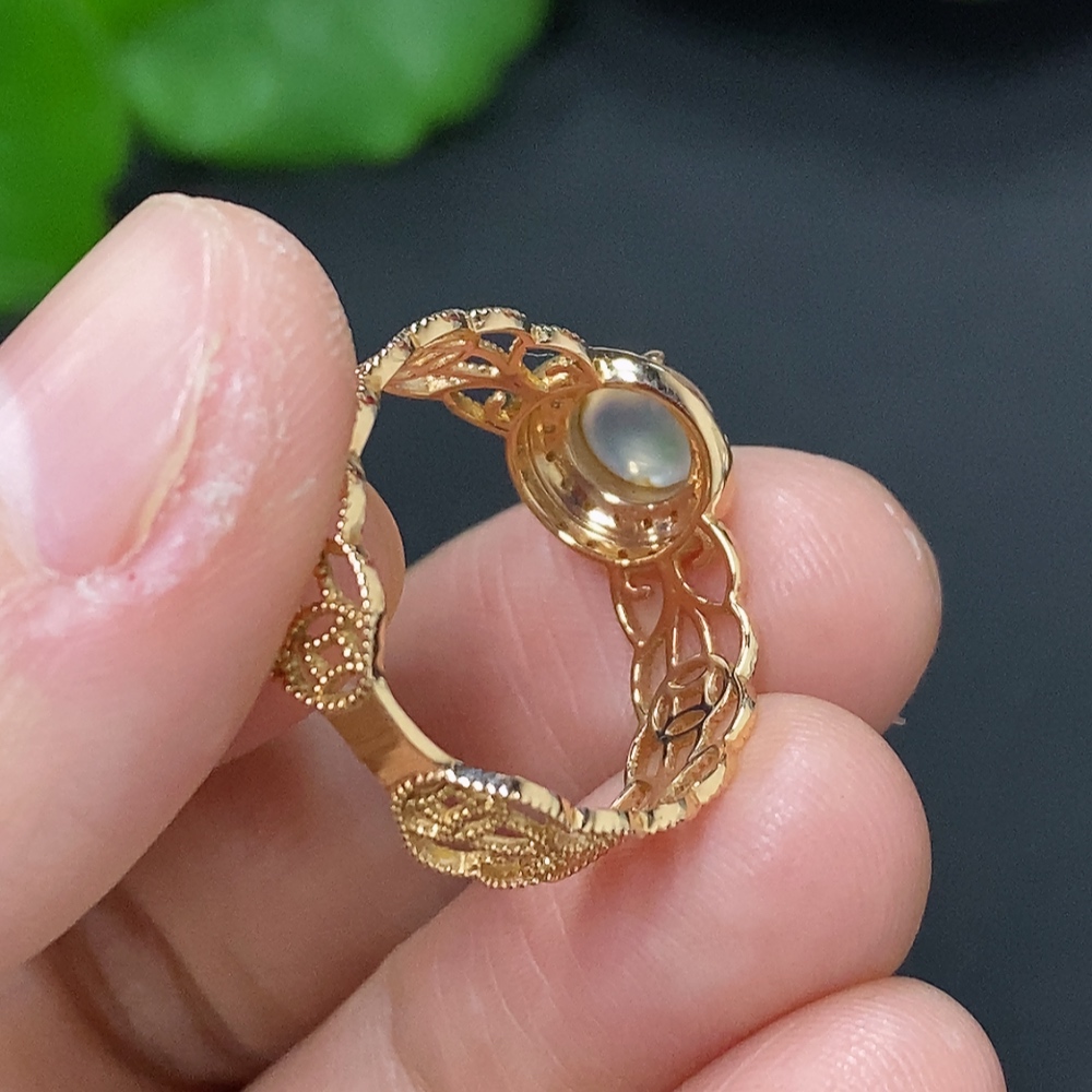 Jadeite Cabochon Solitaire Ring in 18K Gold Size 15 Total Weight Approx. 1.9g (Diamond Accented)