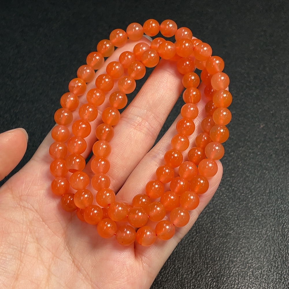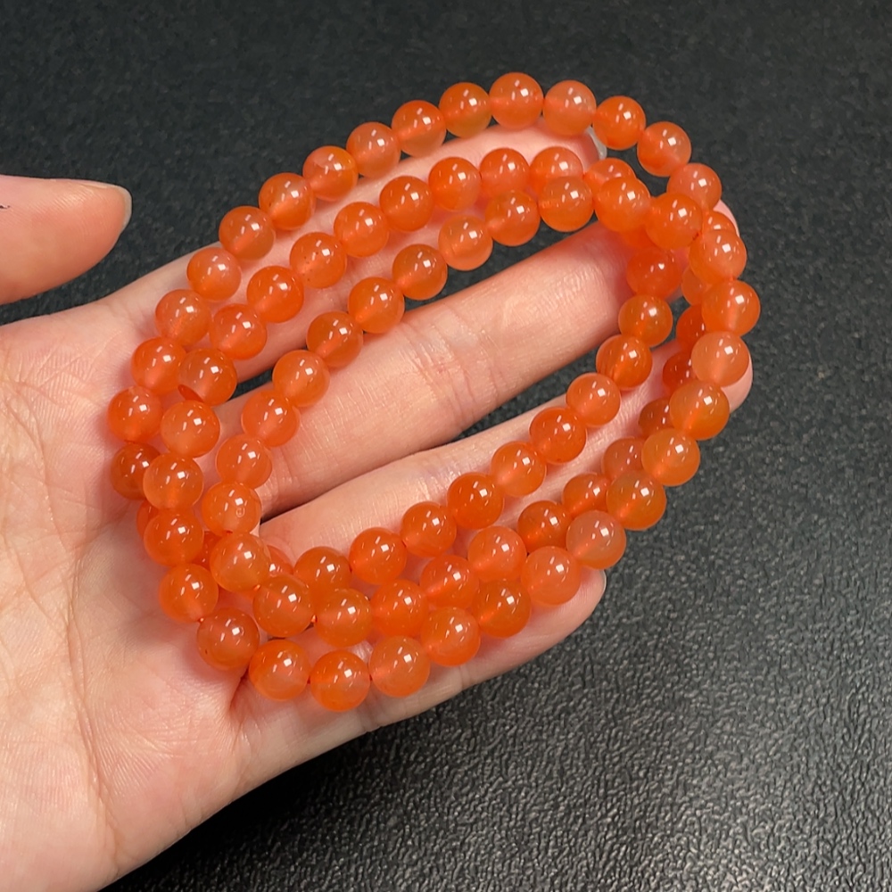 Red Agate Bead Necklace with Visible Organic Matter, Total Weight Approx. 42.31g, Size About 7.3mm