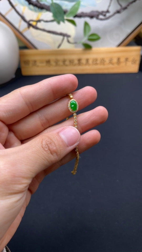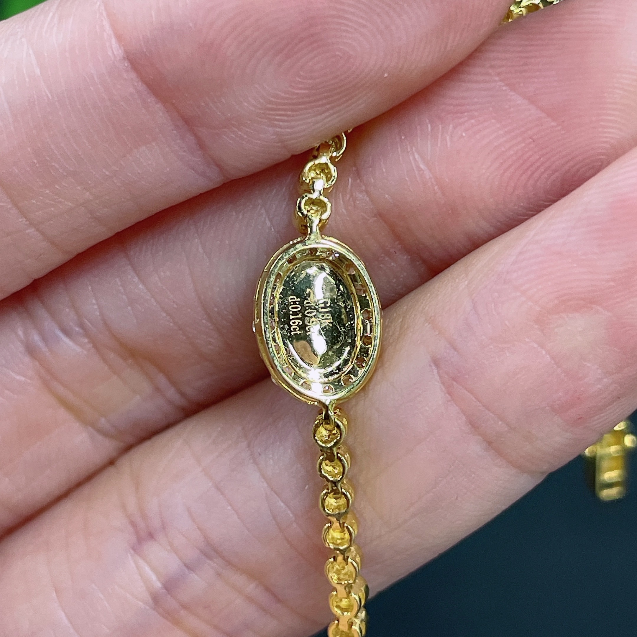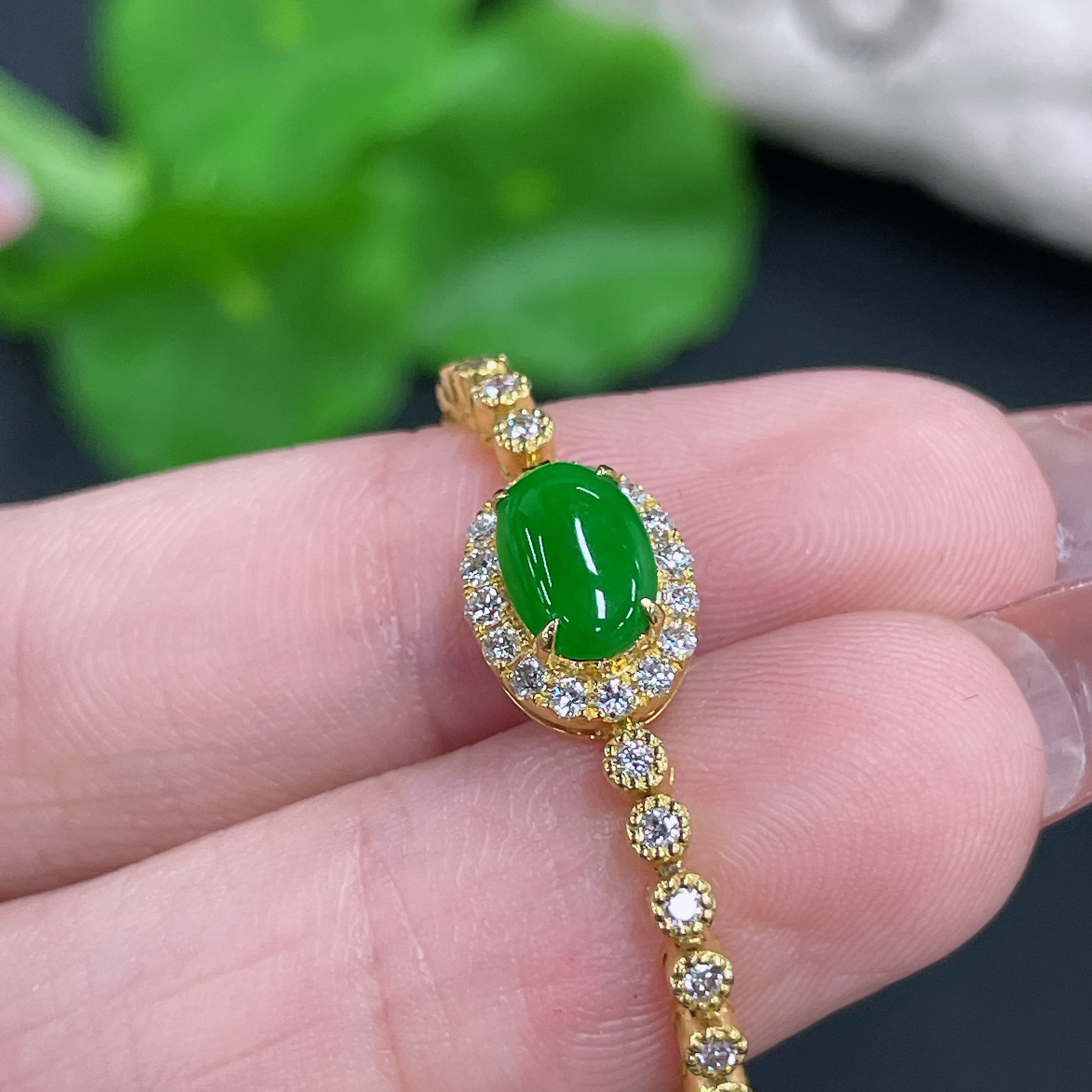 Jadeite Cabochon Inlaid Bracelet 18k with Diamond Accents Total Weight Approx. 7.66g