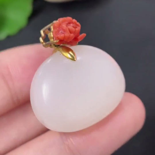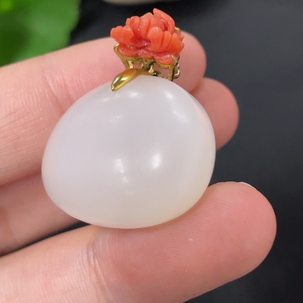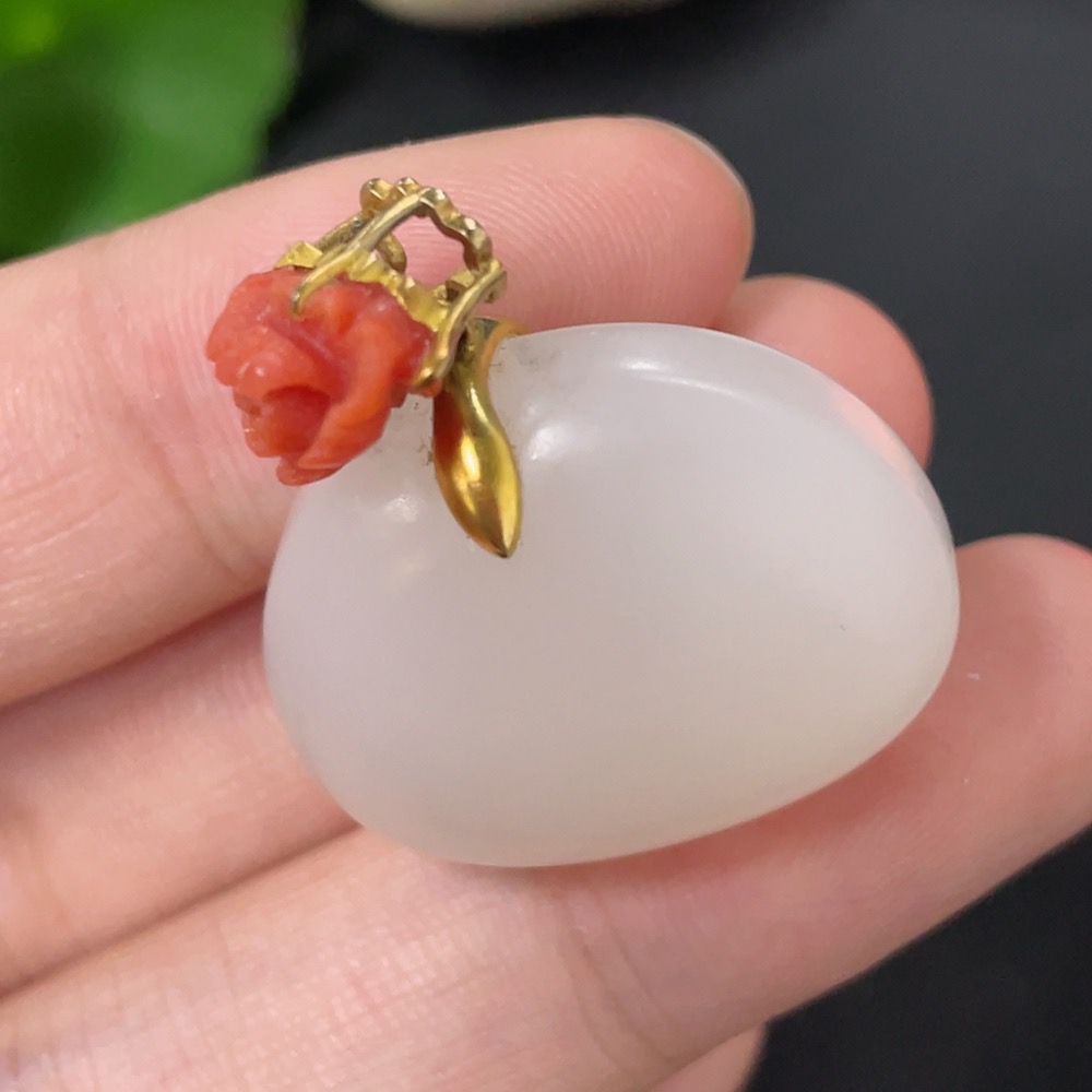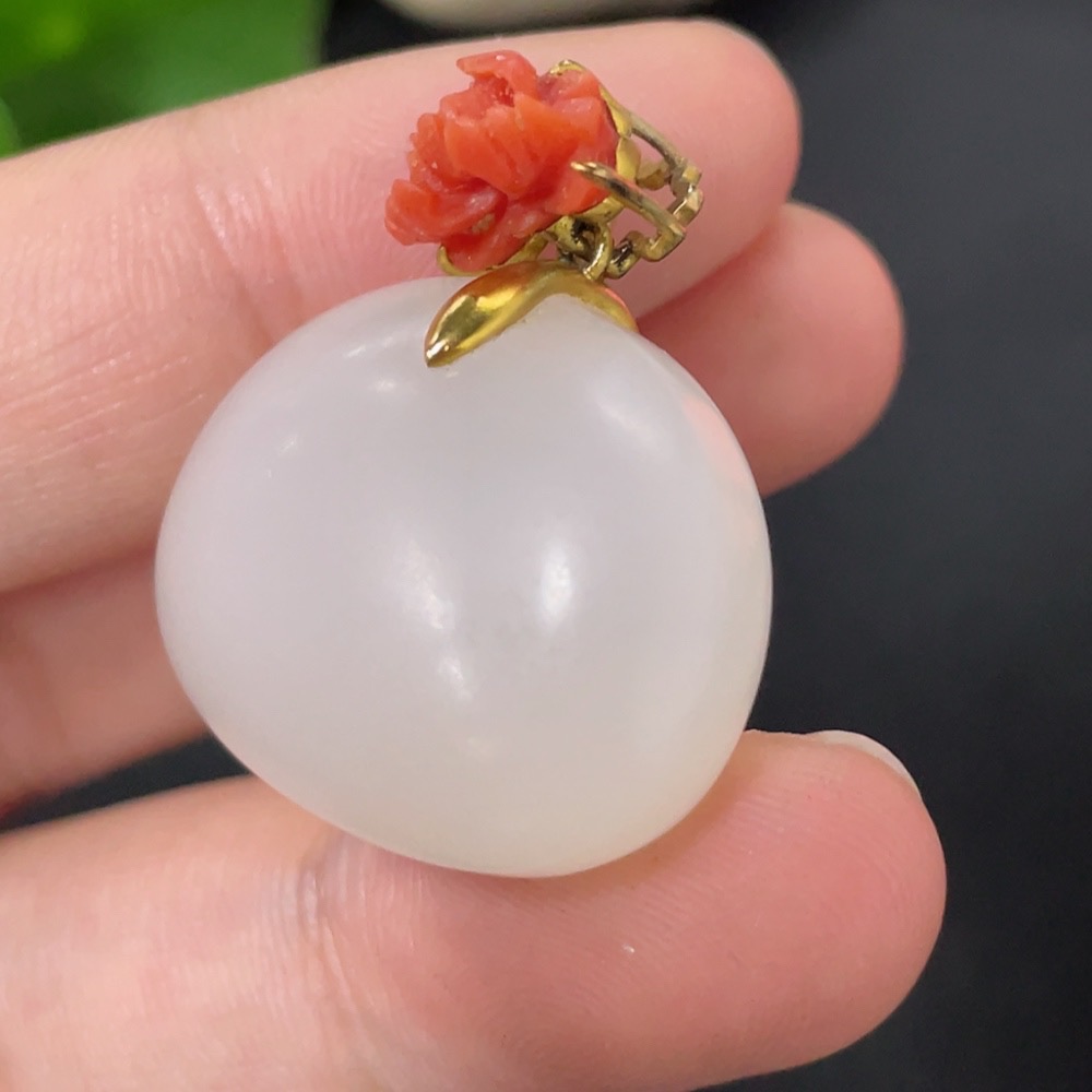 Hetian Jade Pendant with Non-Hetian Jade Beads 18K Gold Total Weight Approx. 12.7g