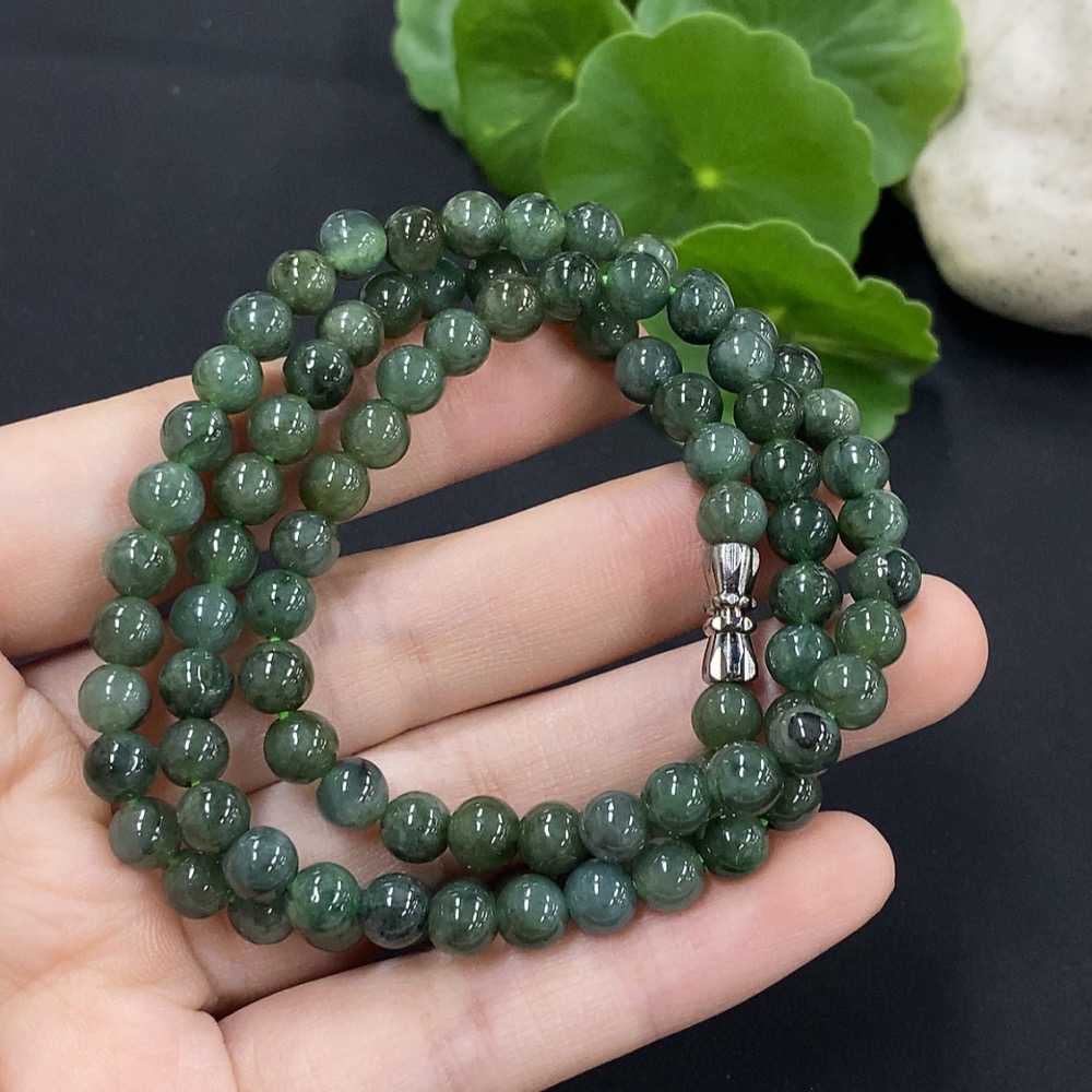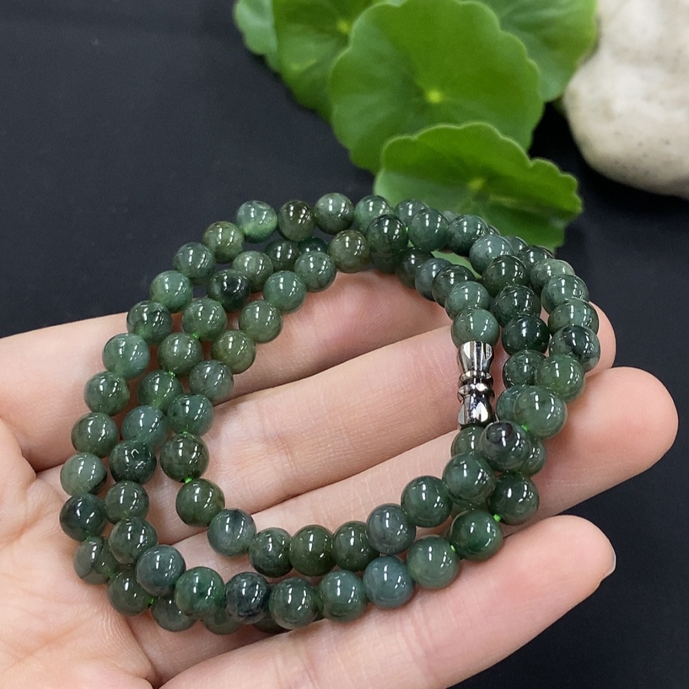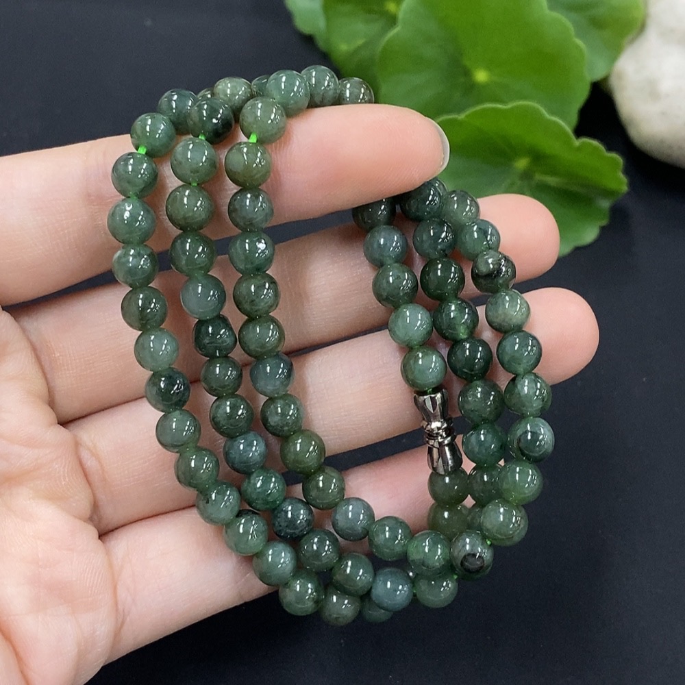 Jadeite Bead Necklace Approximately 6mm Non-Gold Setting Total Weight About 31.9g