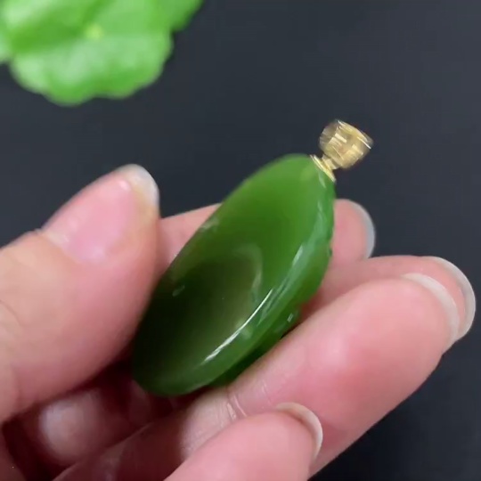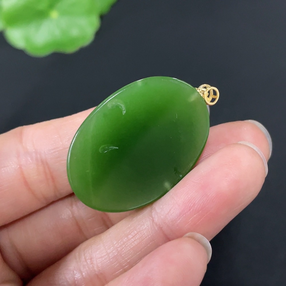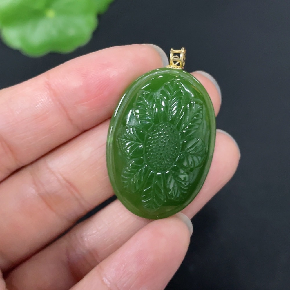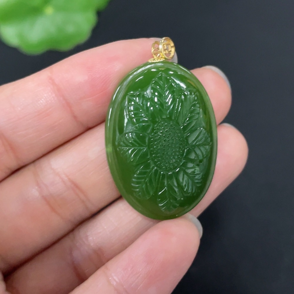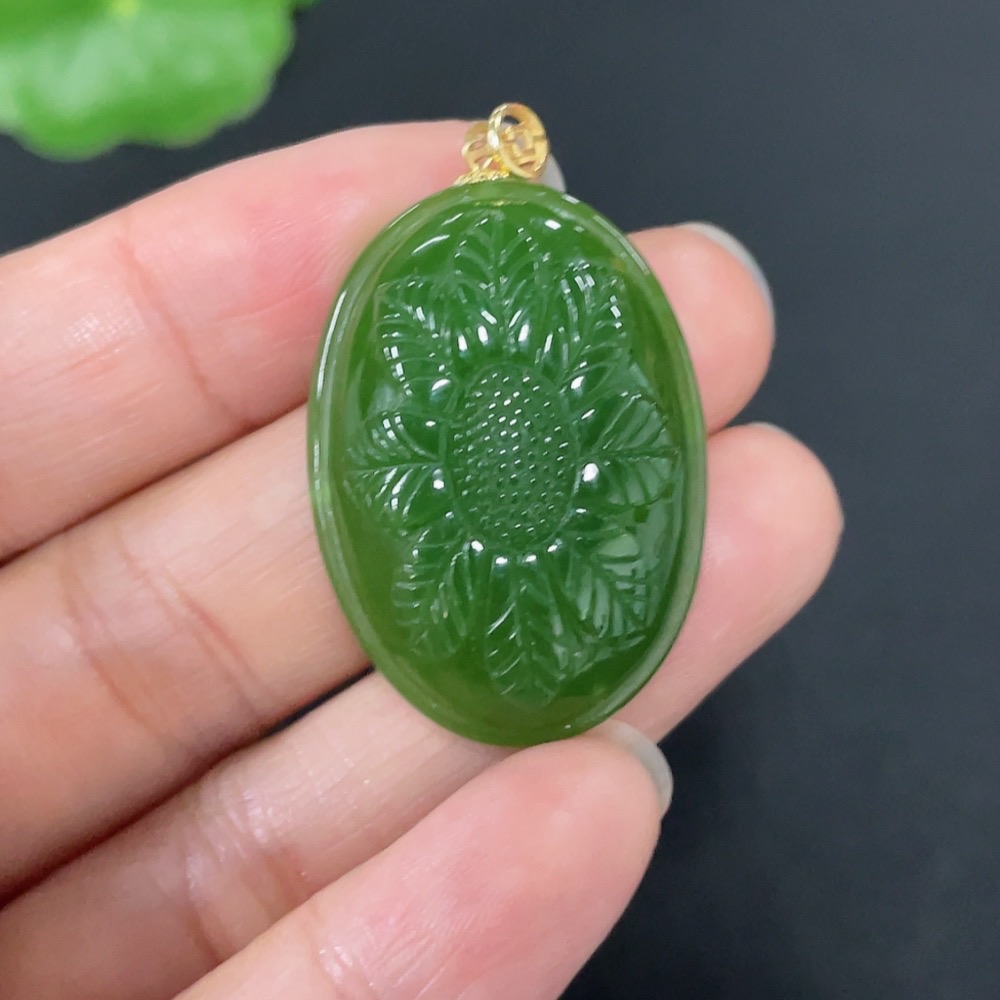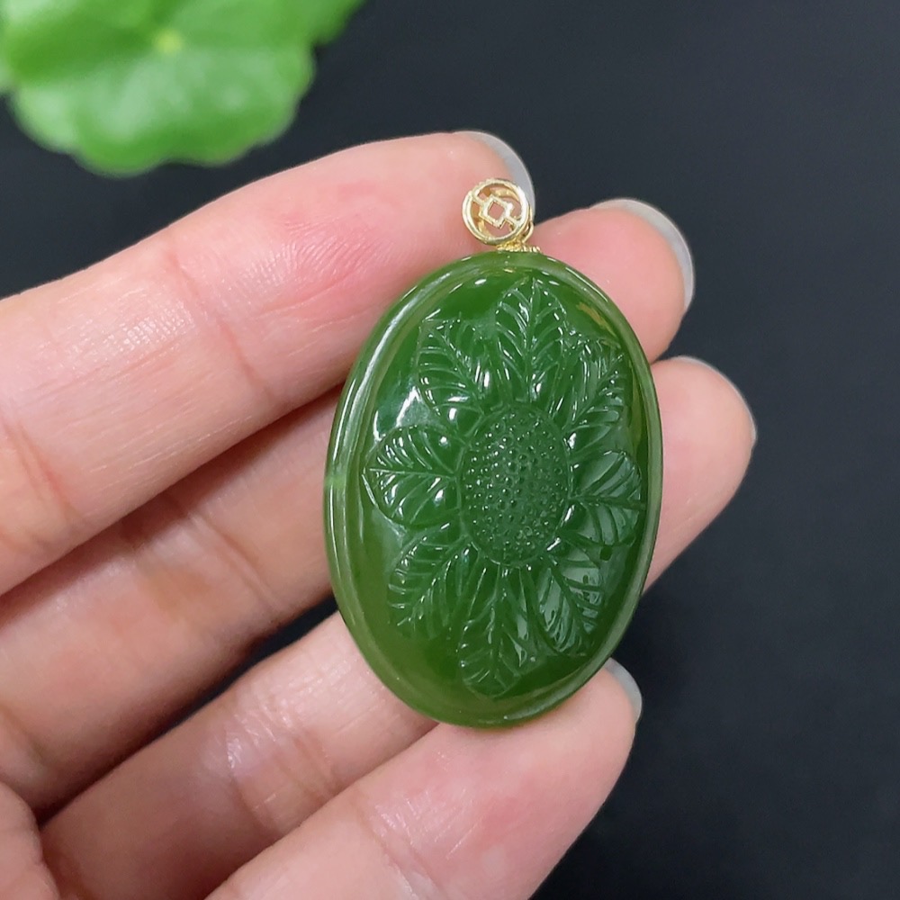 Hetian Jade Jasper Inlaid Pendant "Flourishing Prosperity" Total Weight Approx. 9.1g 18k