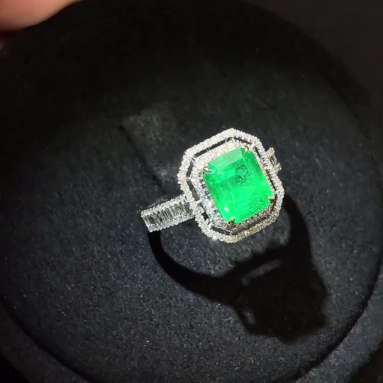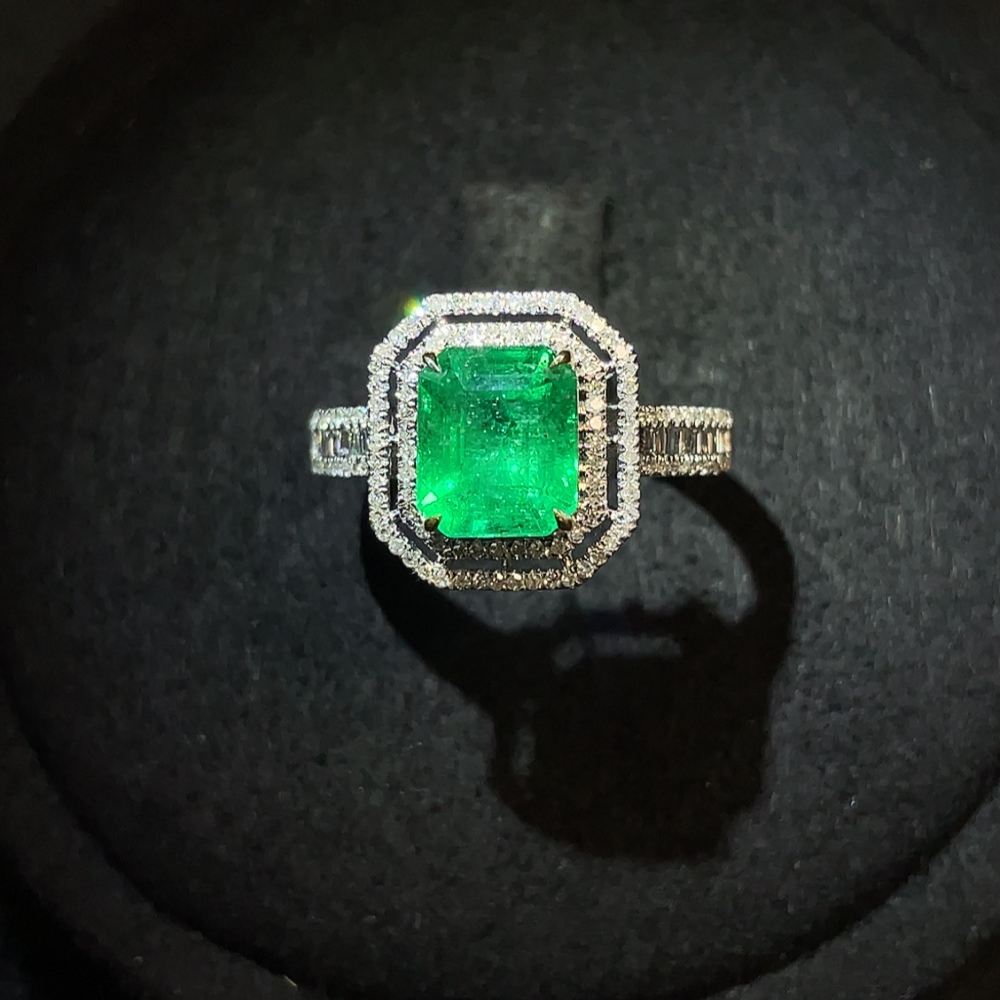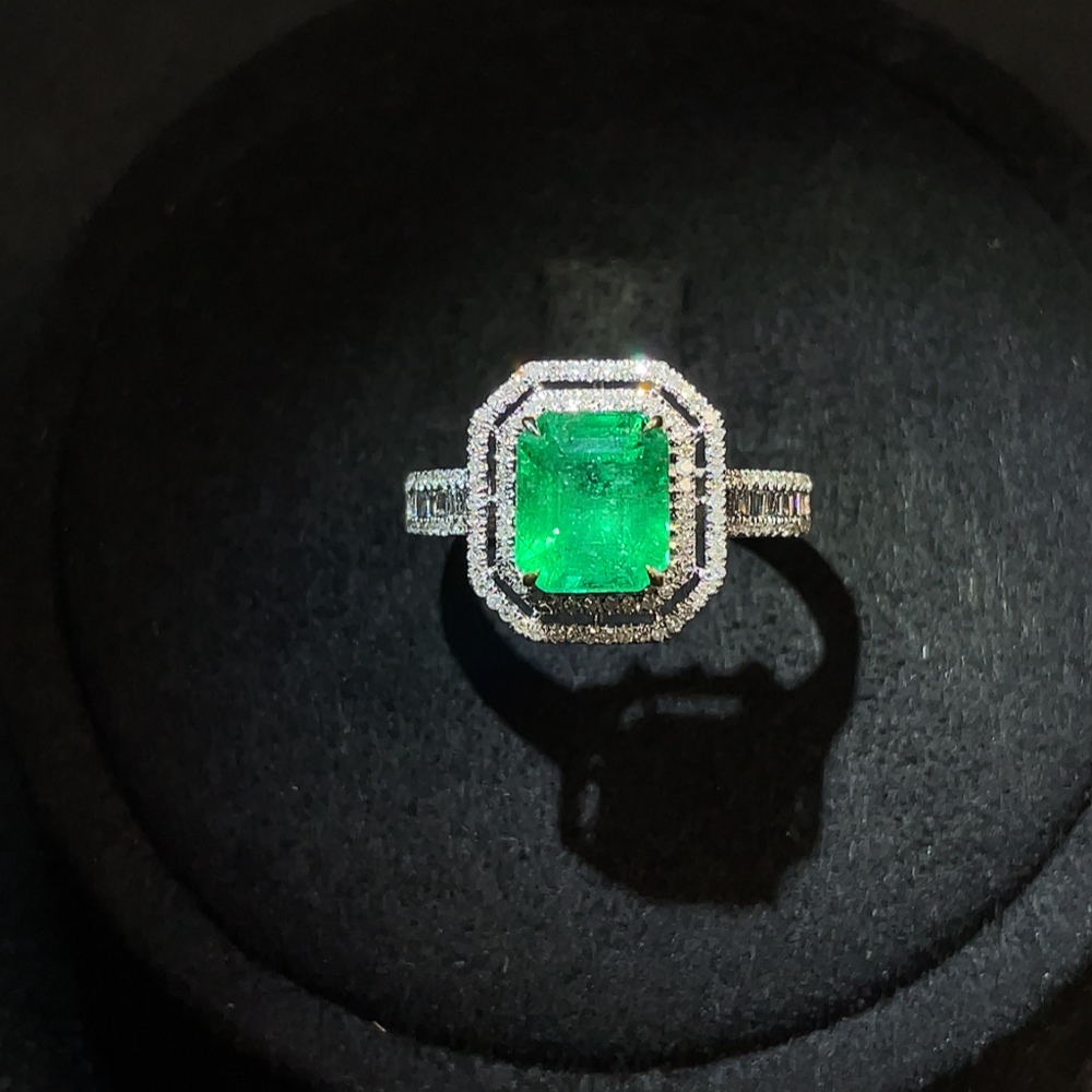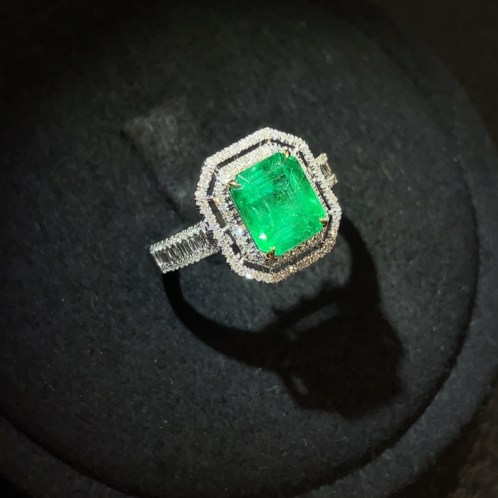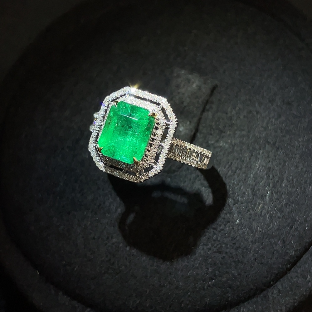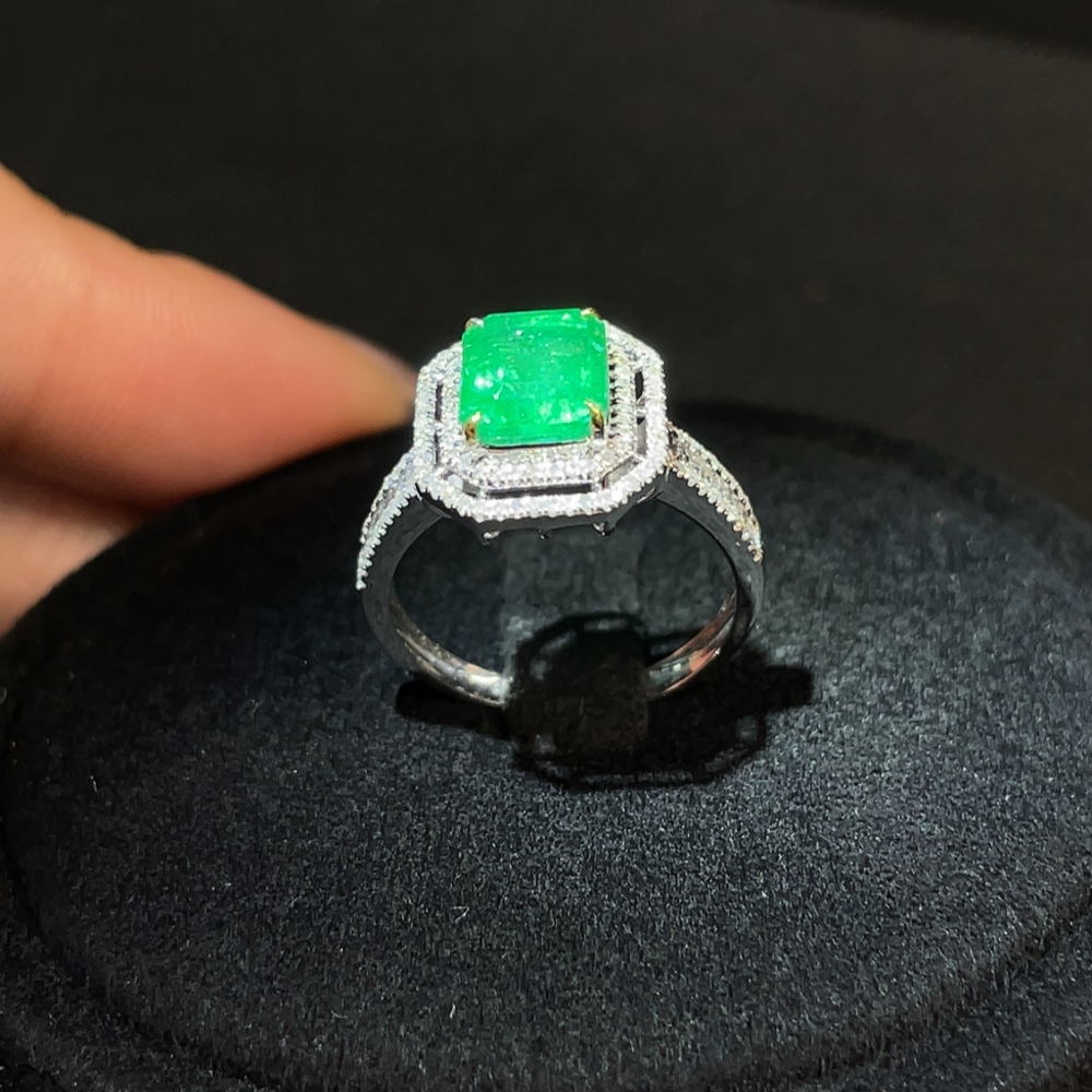 Emerald Ring Clarity Enhanced 18K Gold with Diamond Accents Total Weight Approx. 2.78g Size 12 Stone 7.3*6.1mm