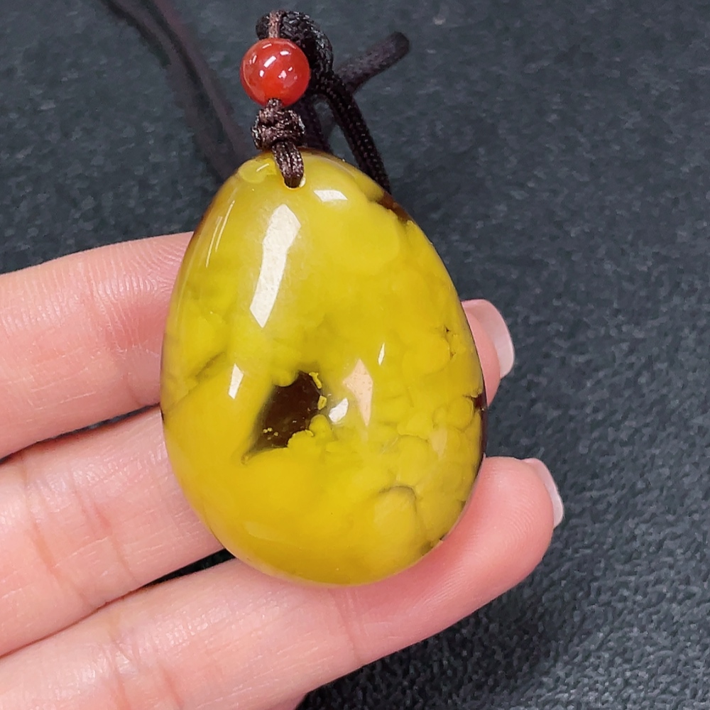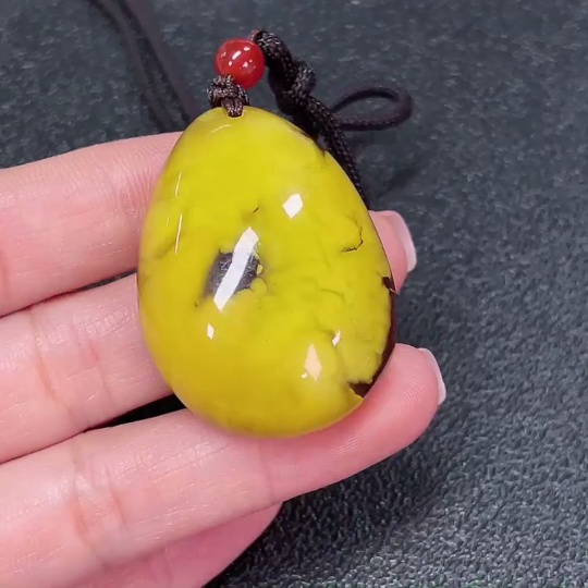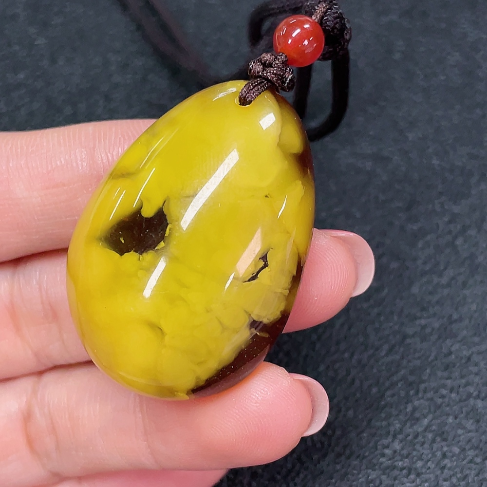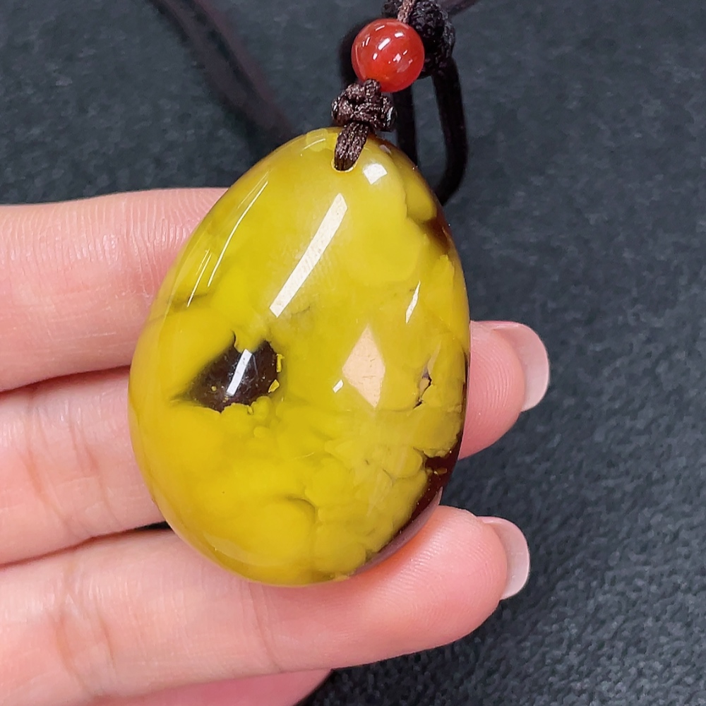 Amber Beeswax Pendant with Non-Natural Accent Stones, Total Weight Approx. 12.89g, Including Cord