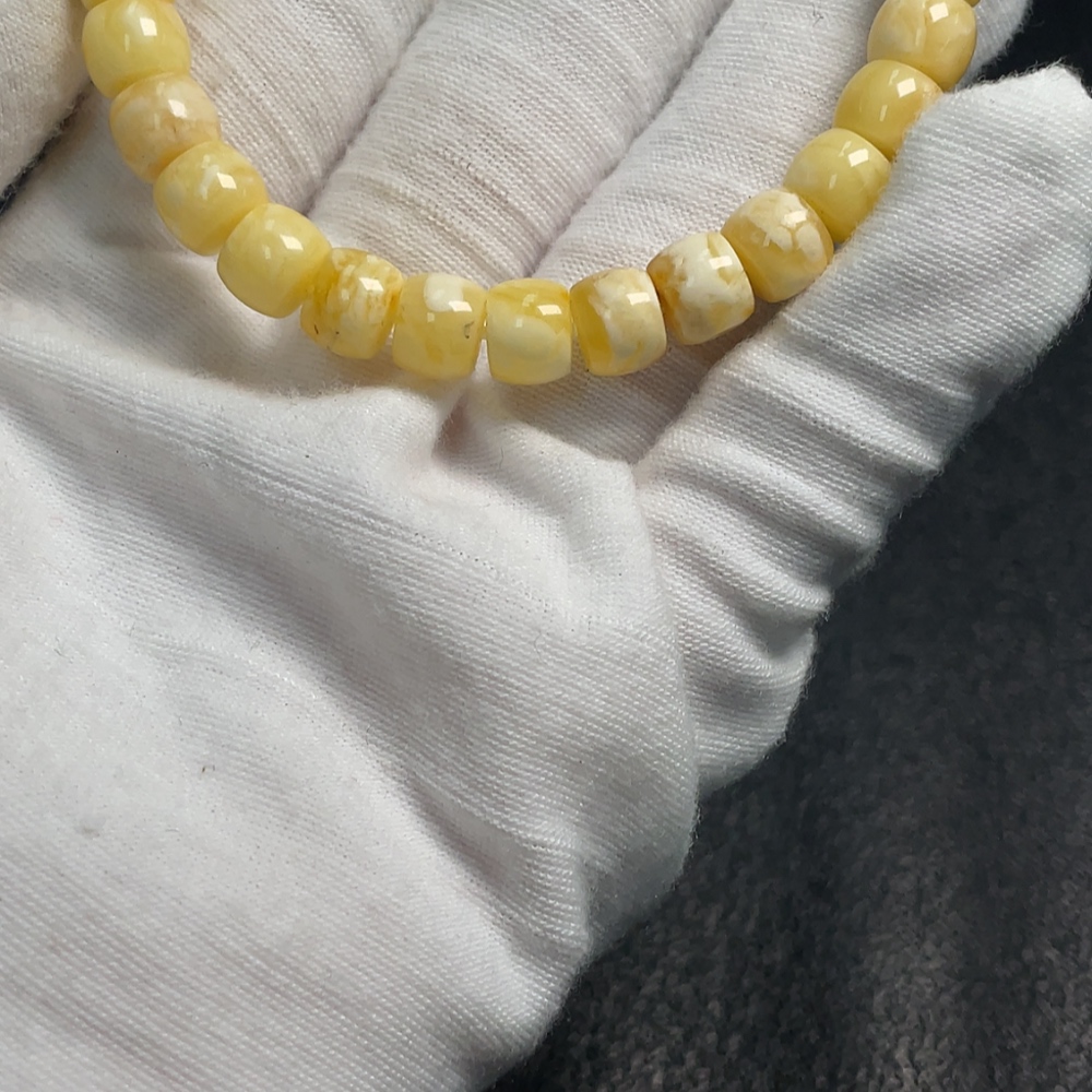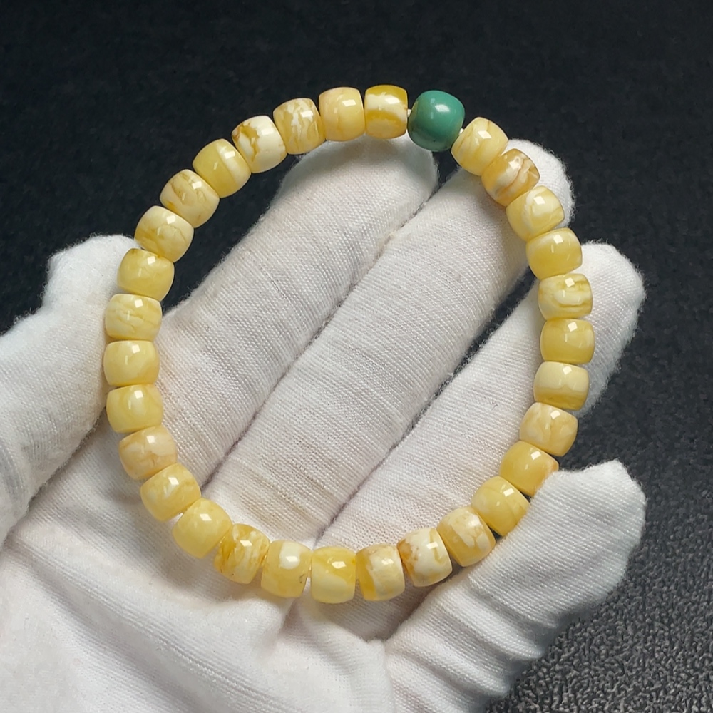 Amber Beeswax Bracelet with Partial Visible Repairs, Turquoise Accent Stones, Total Weight Approx. 8.75g, Size ~7.7mm