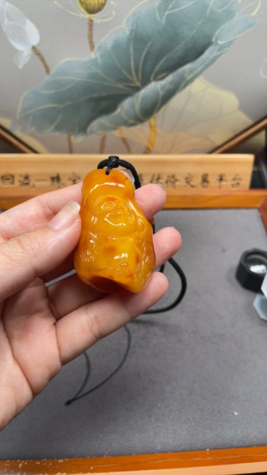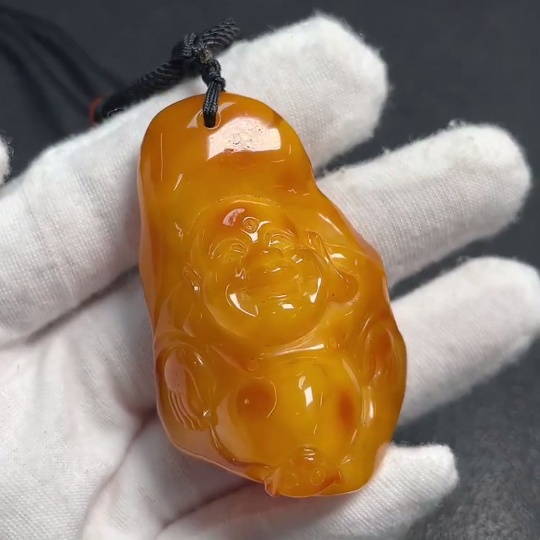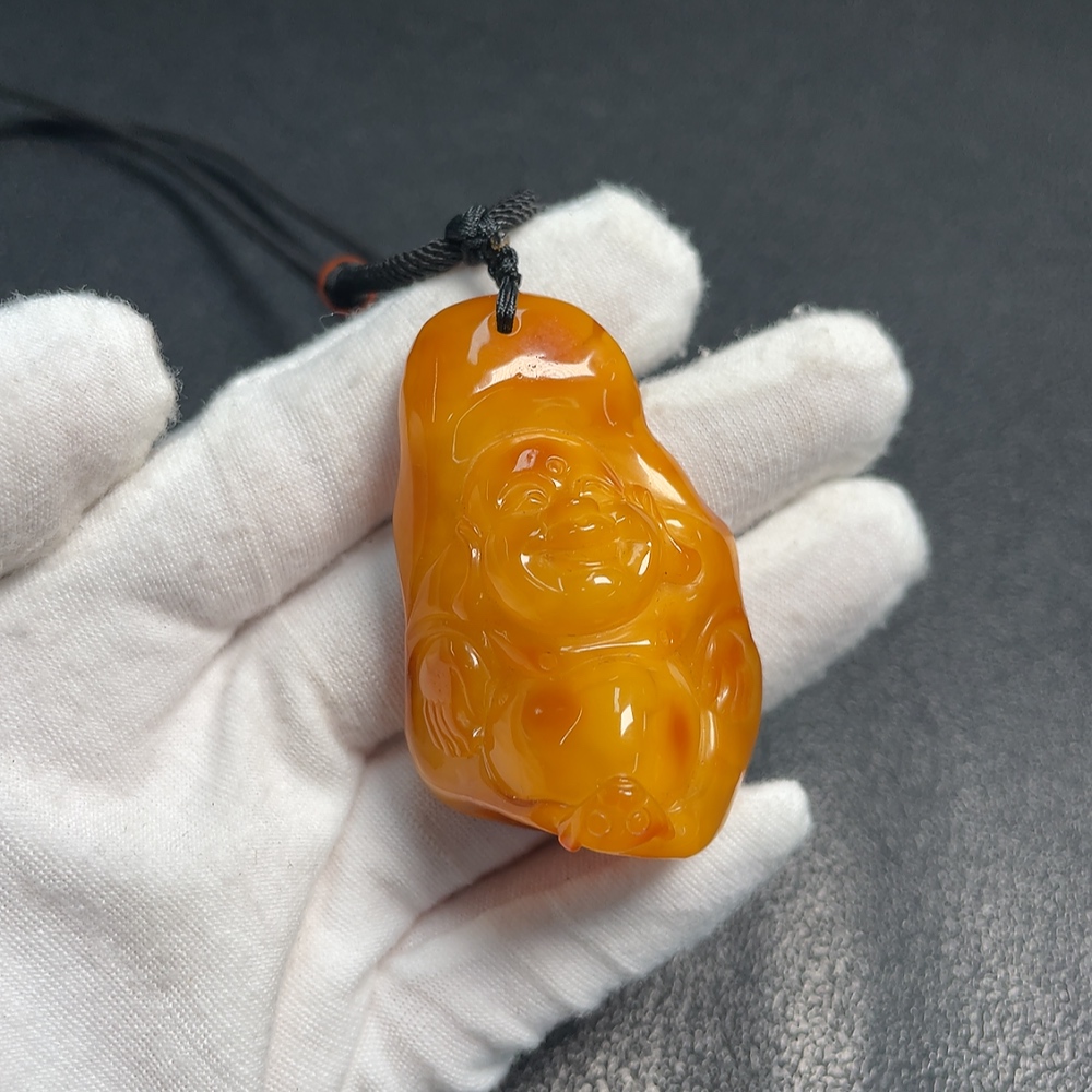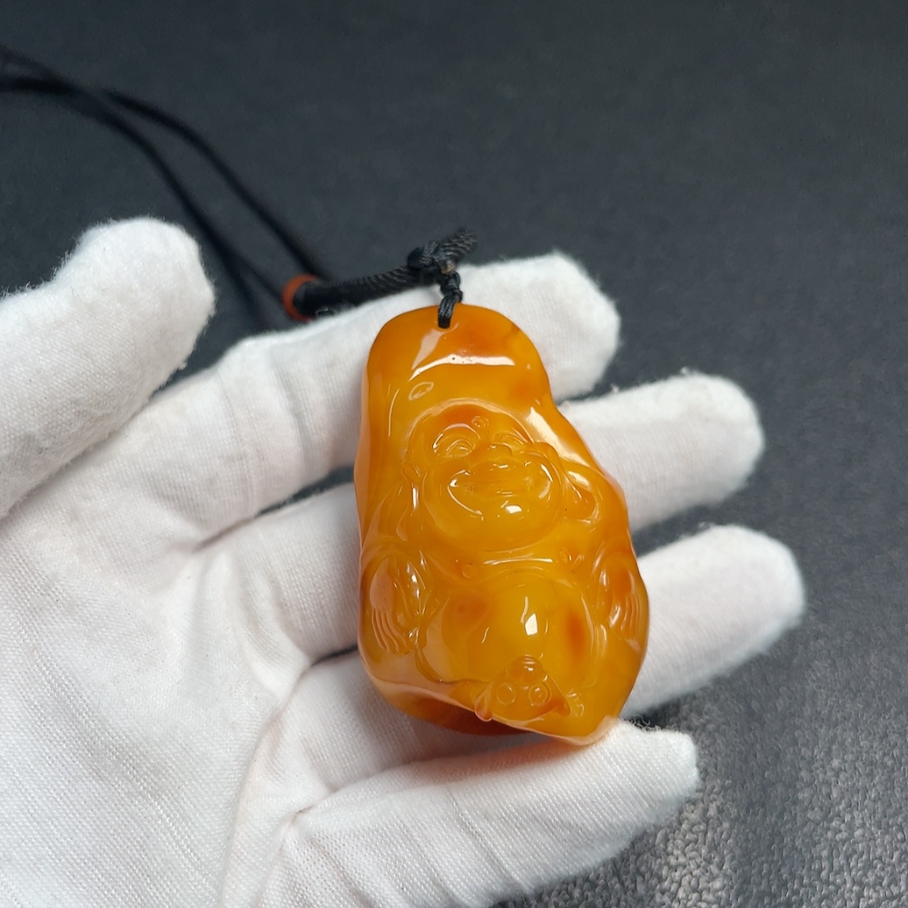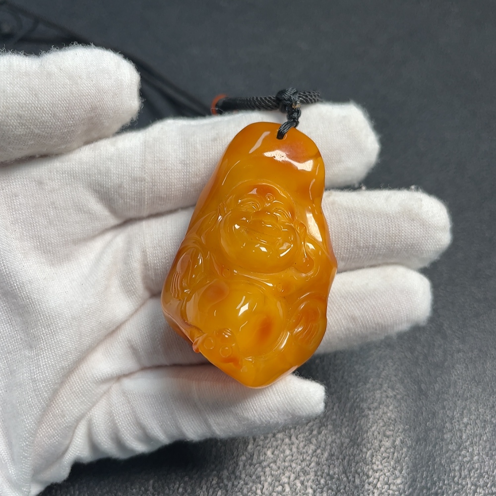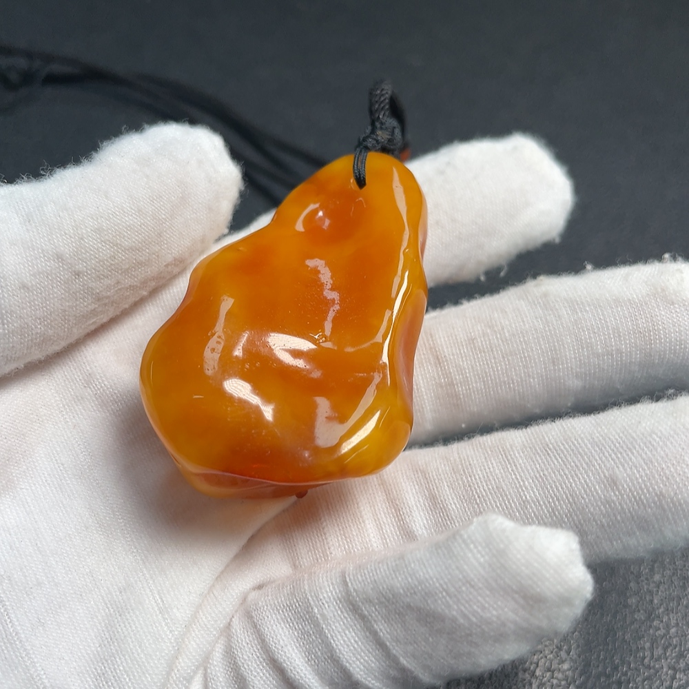 Amber Beeswax Pendant with Southern Red Agate, Total Weight Approx. 21.54g, Including Rope