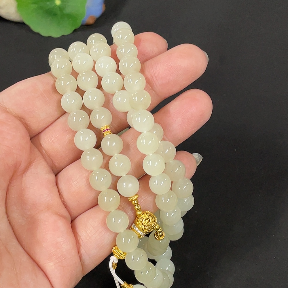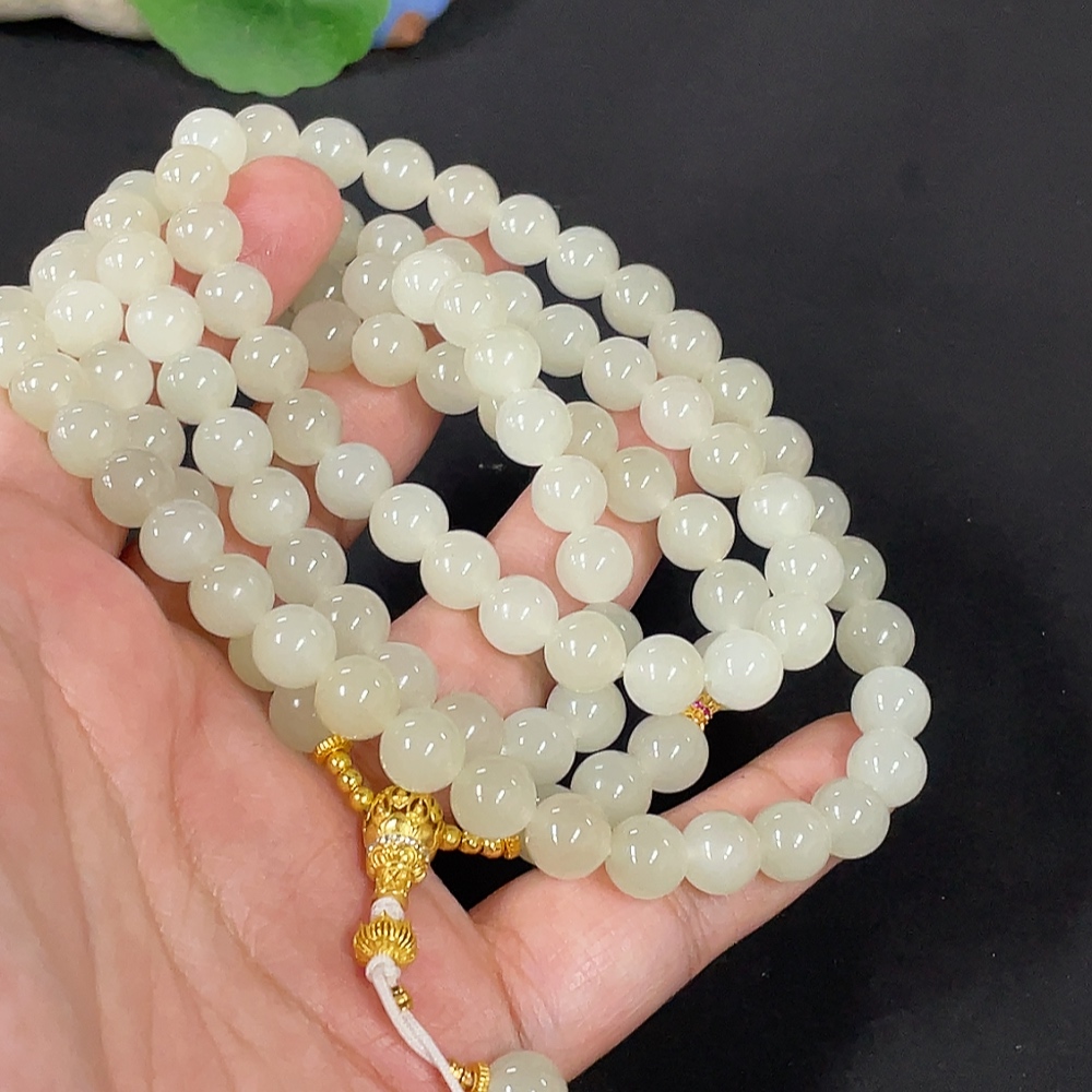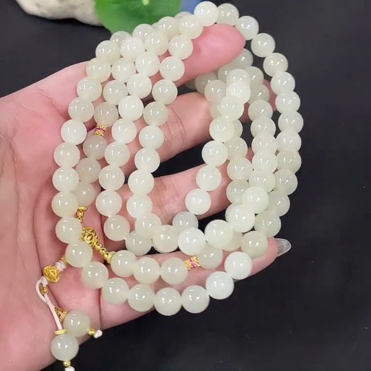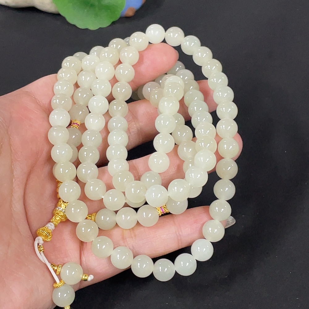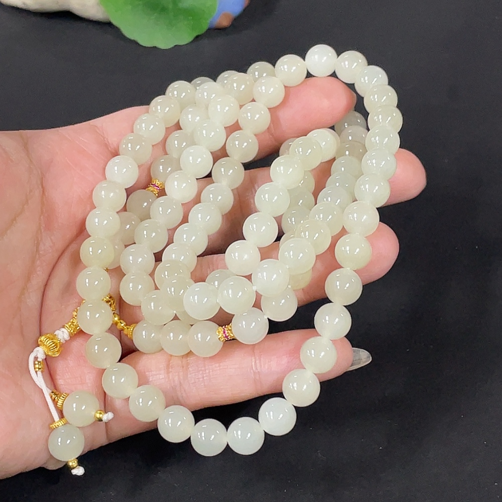 Hetian Jade Bead Necklace Approx. 7.7mm Total Weight Approx. 90.1g Non-Gold