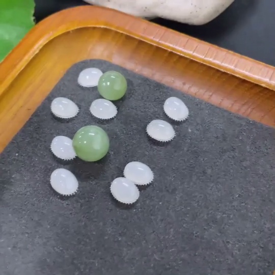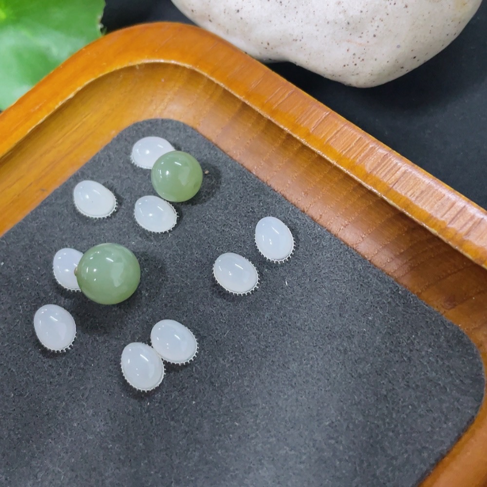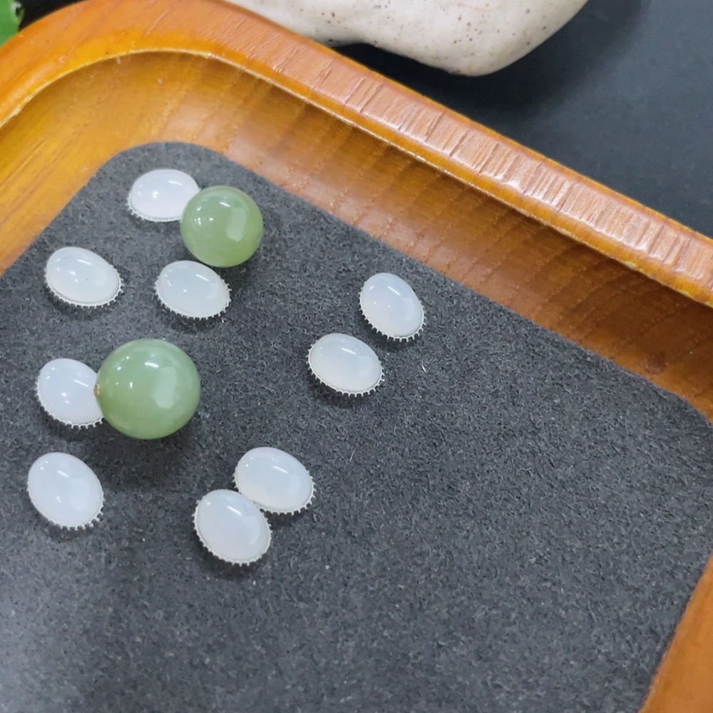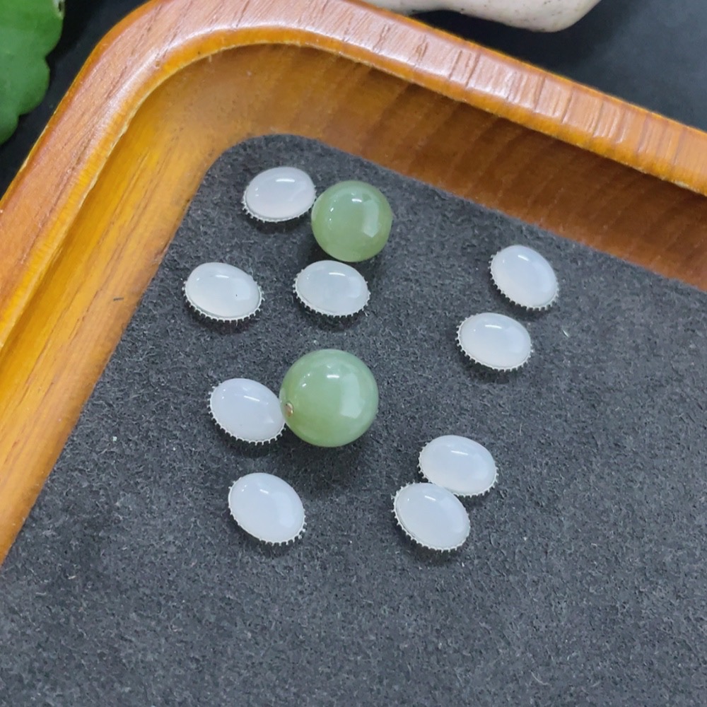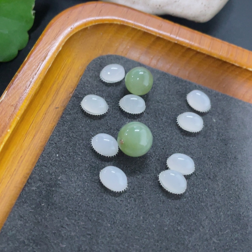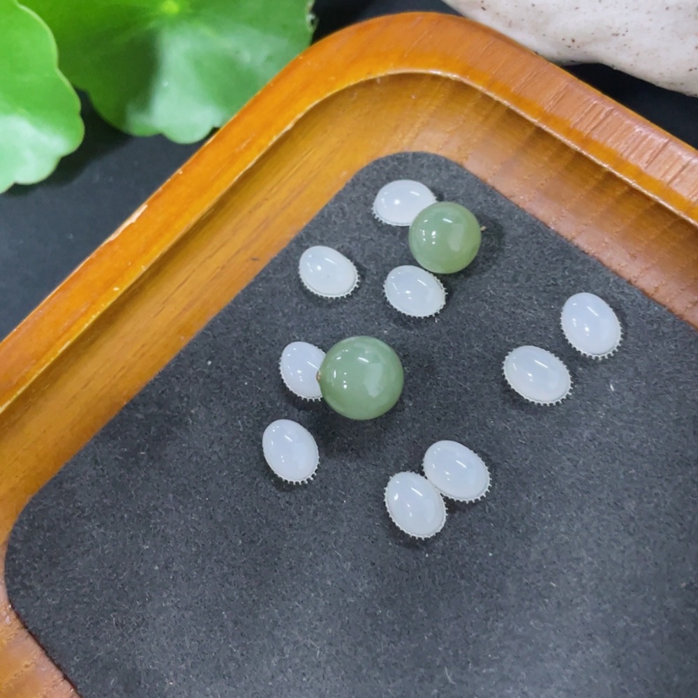 Hetian Jade inlay piece + beads, total weight approx. 3.6g