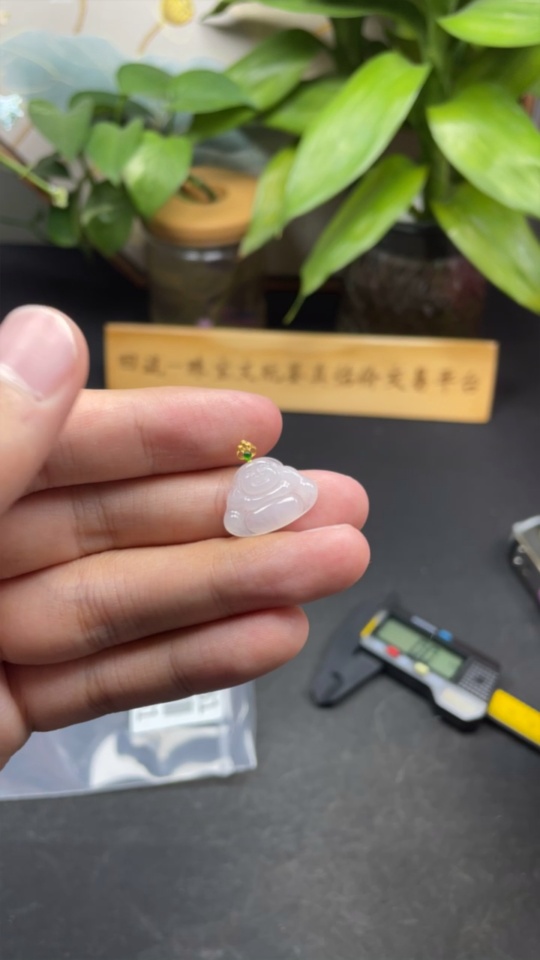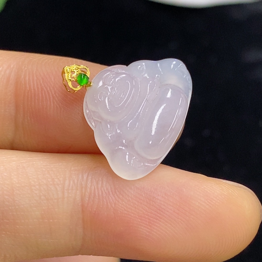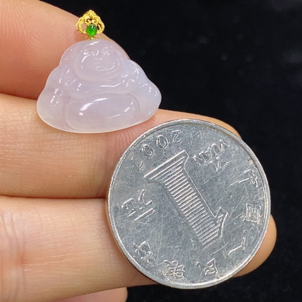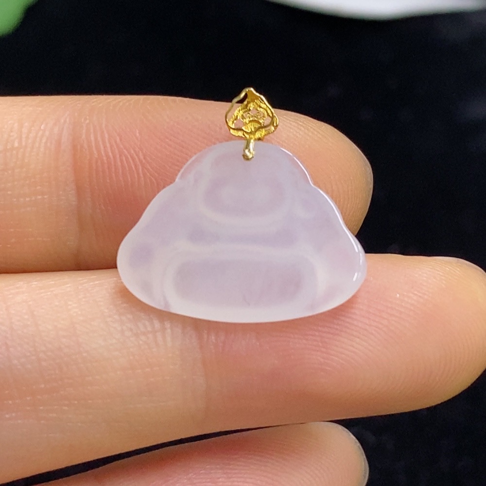 Jadeite Buddha Pendant 18K Gold Total Weight Approx. 1.4g