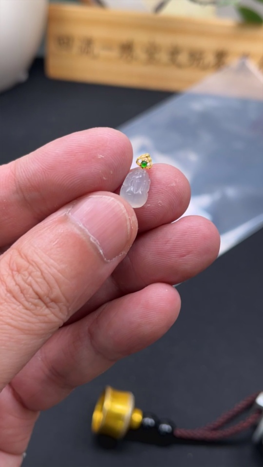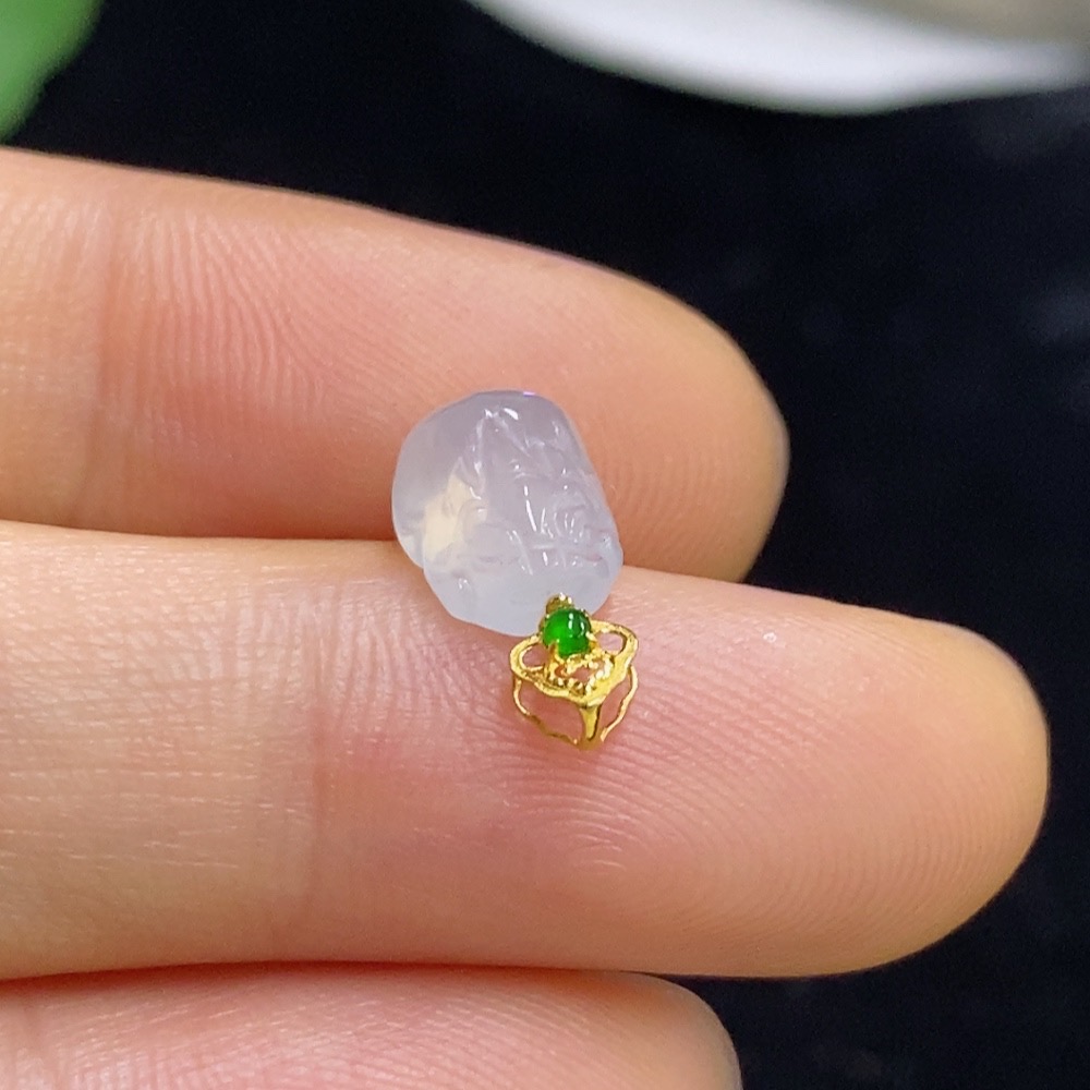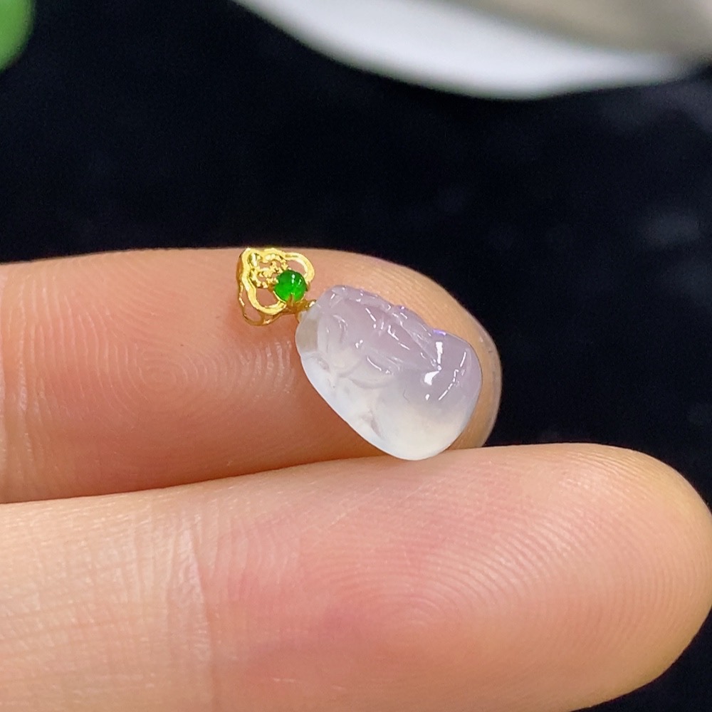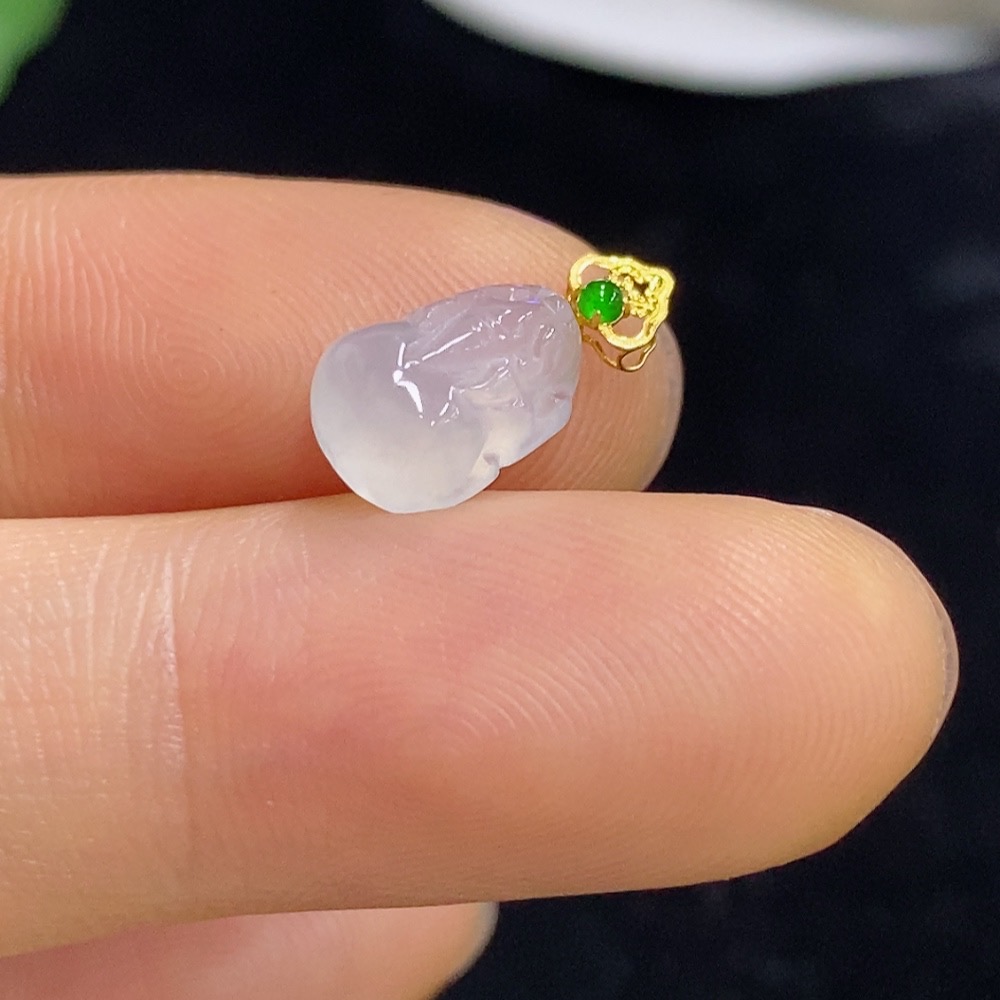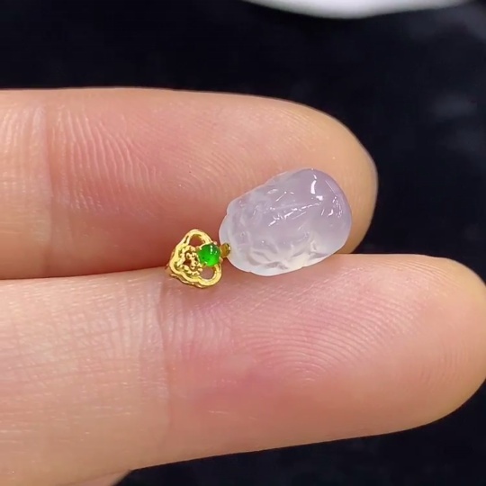 Jadeite Pixiu Pendant with 18K Gold, Total Weight Approx. 0.5g