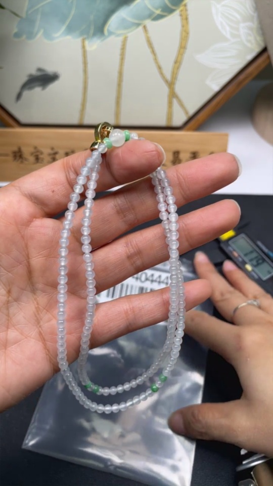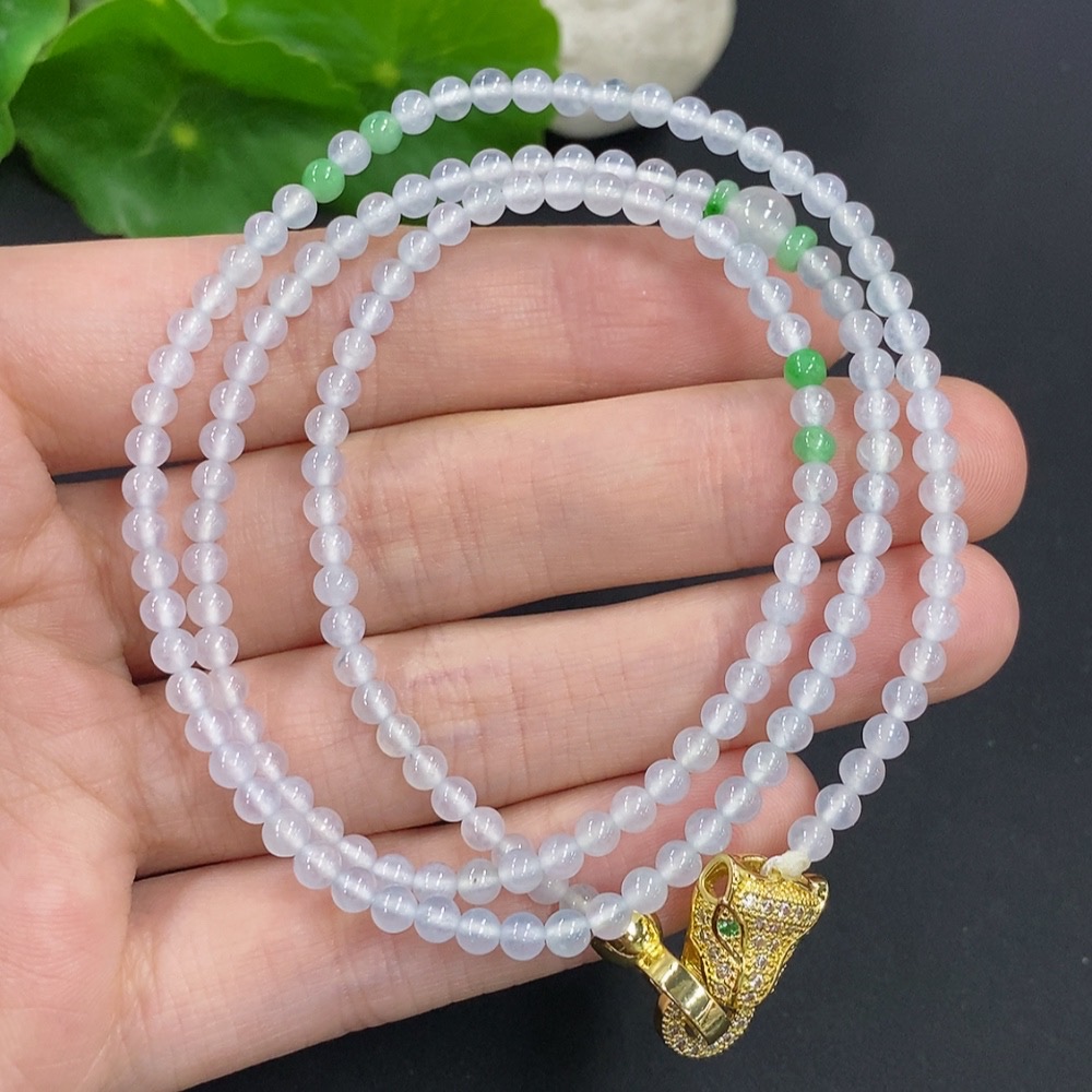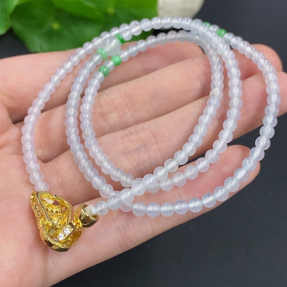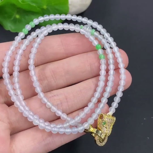 Jadeite Bead Necklace Non-Gold Total Weight Approx. 13.7g Size About 3.3mm