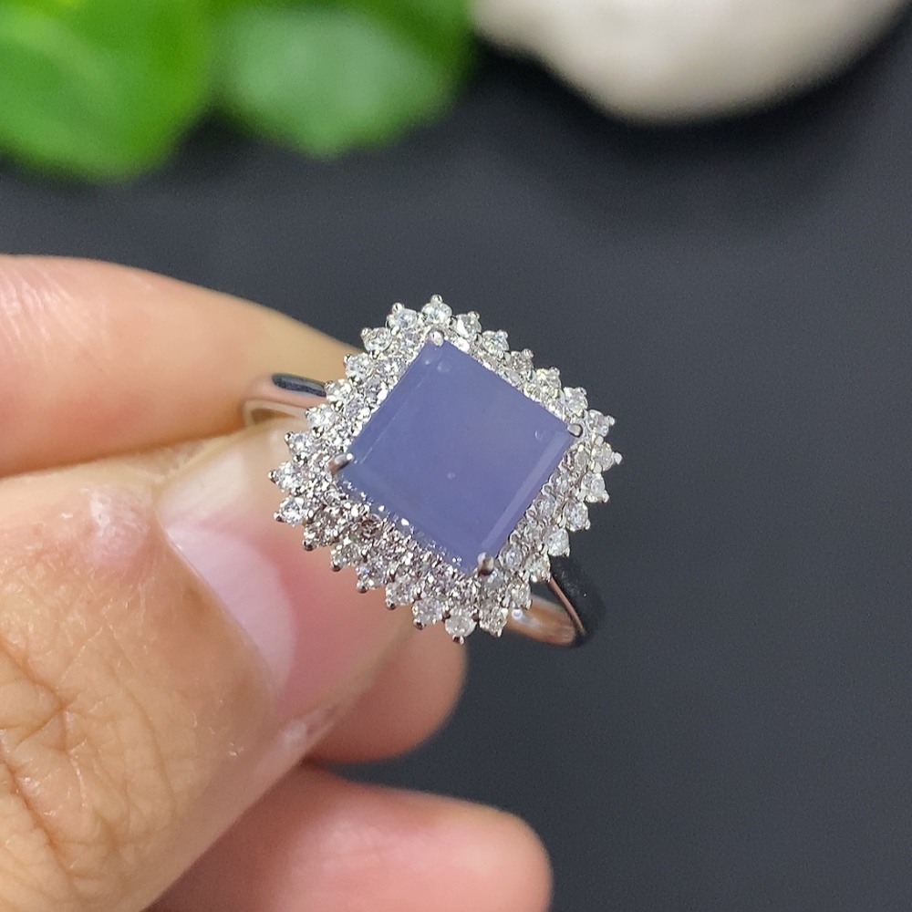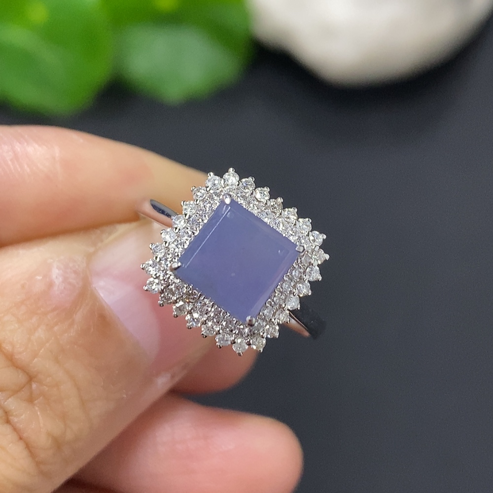 Jadeite Ring with 18K Gold Size 15 Total Weight Approx. 2.7g (Accented with Diamonds)