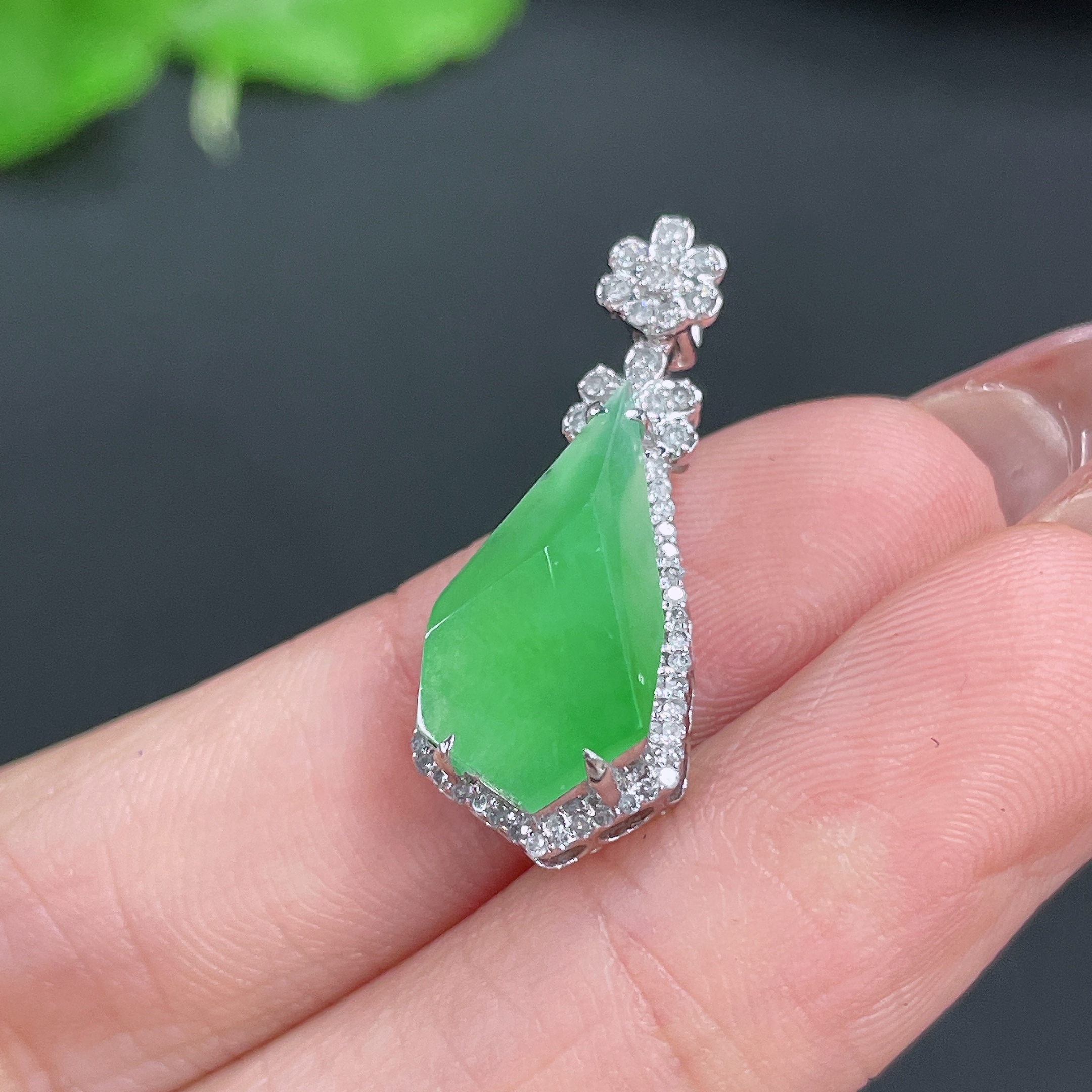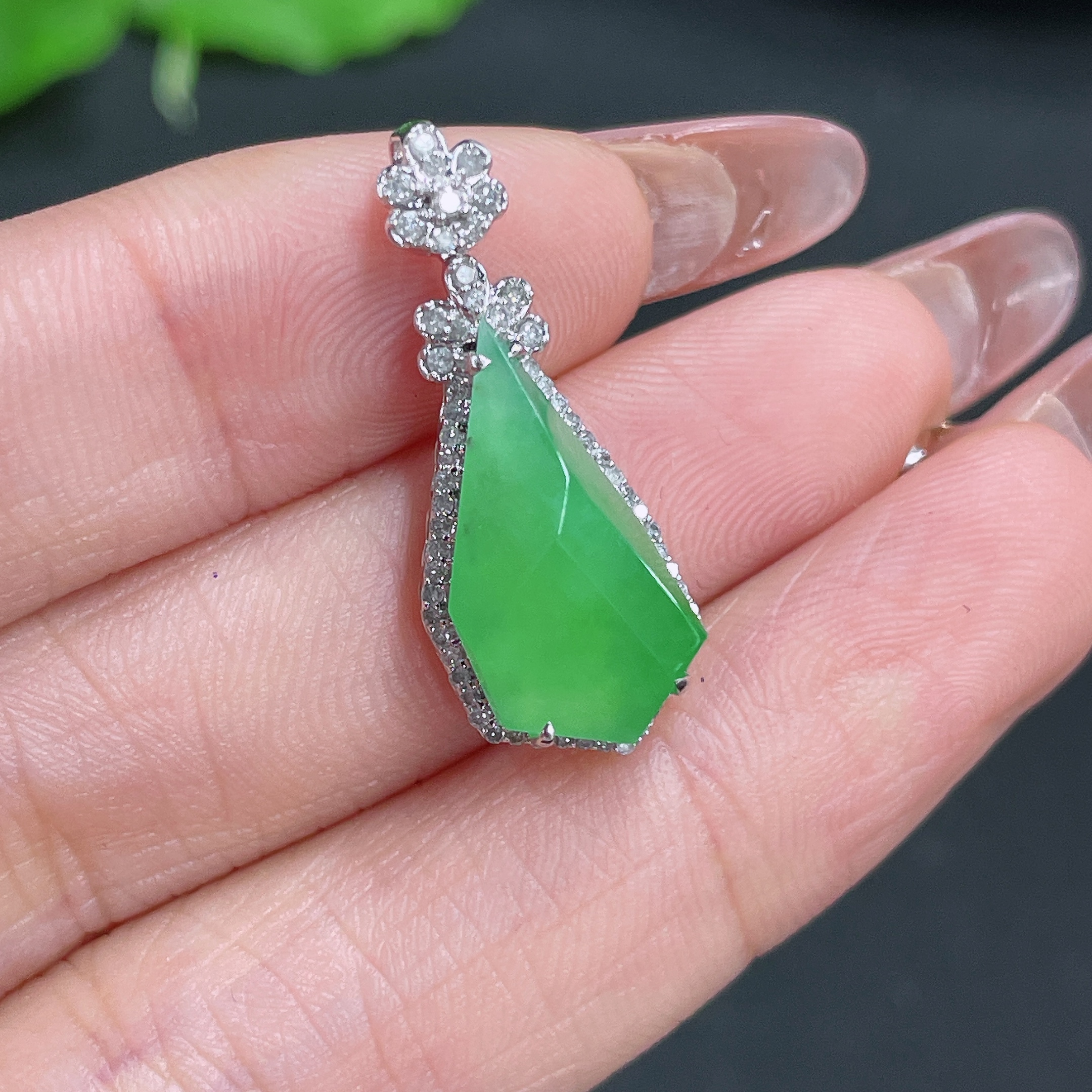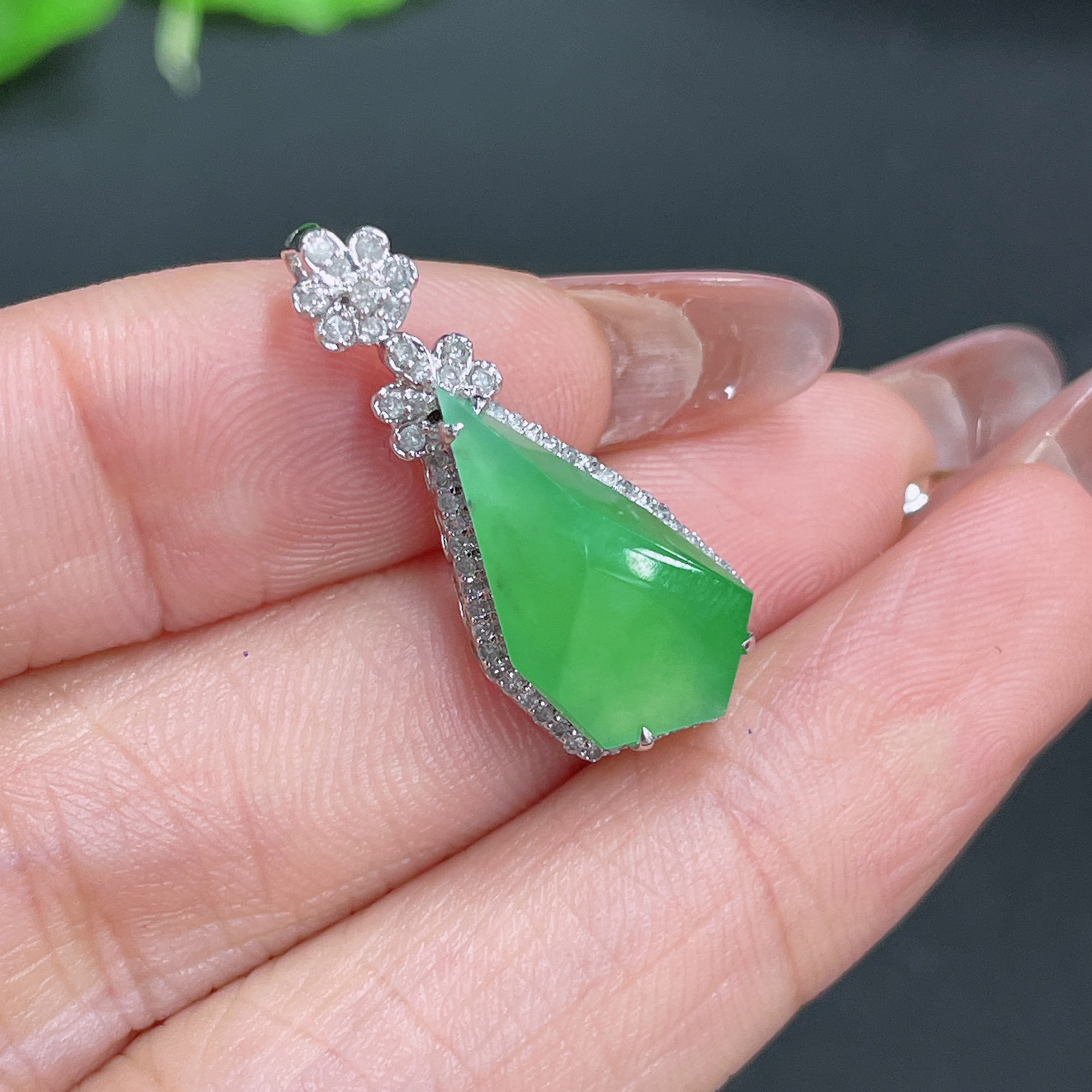 Jadeite Pendant, 18k Gold Setting with Diamond Accents, Total Weight Approximately 2.5g