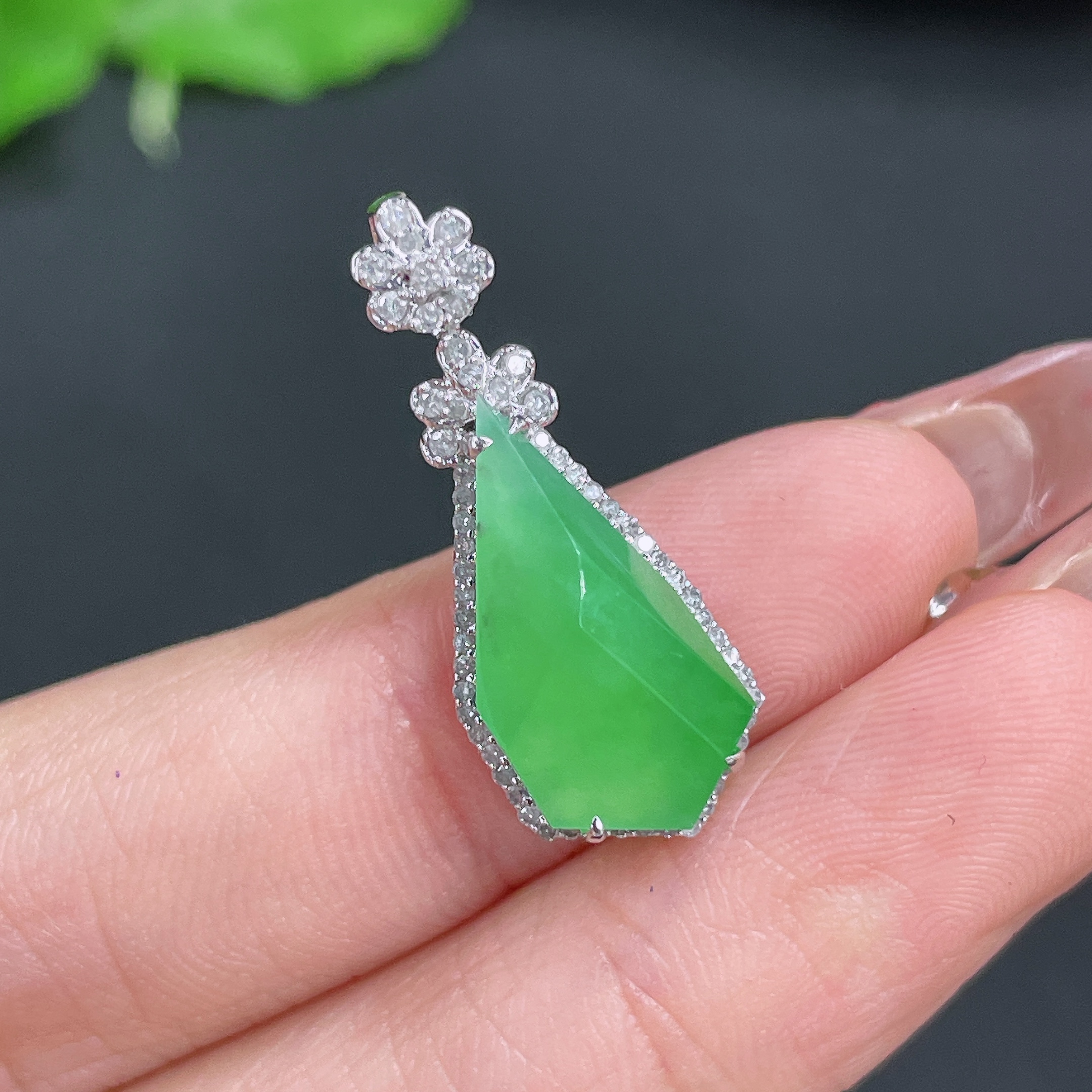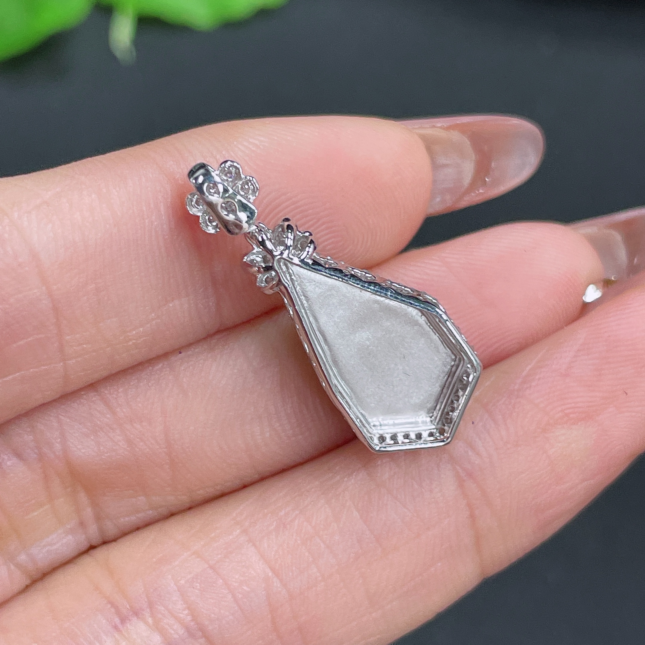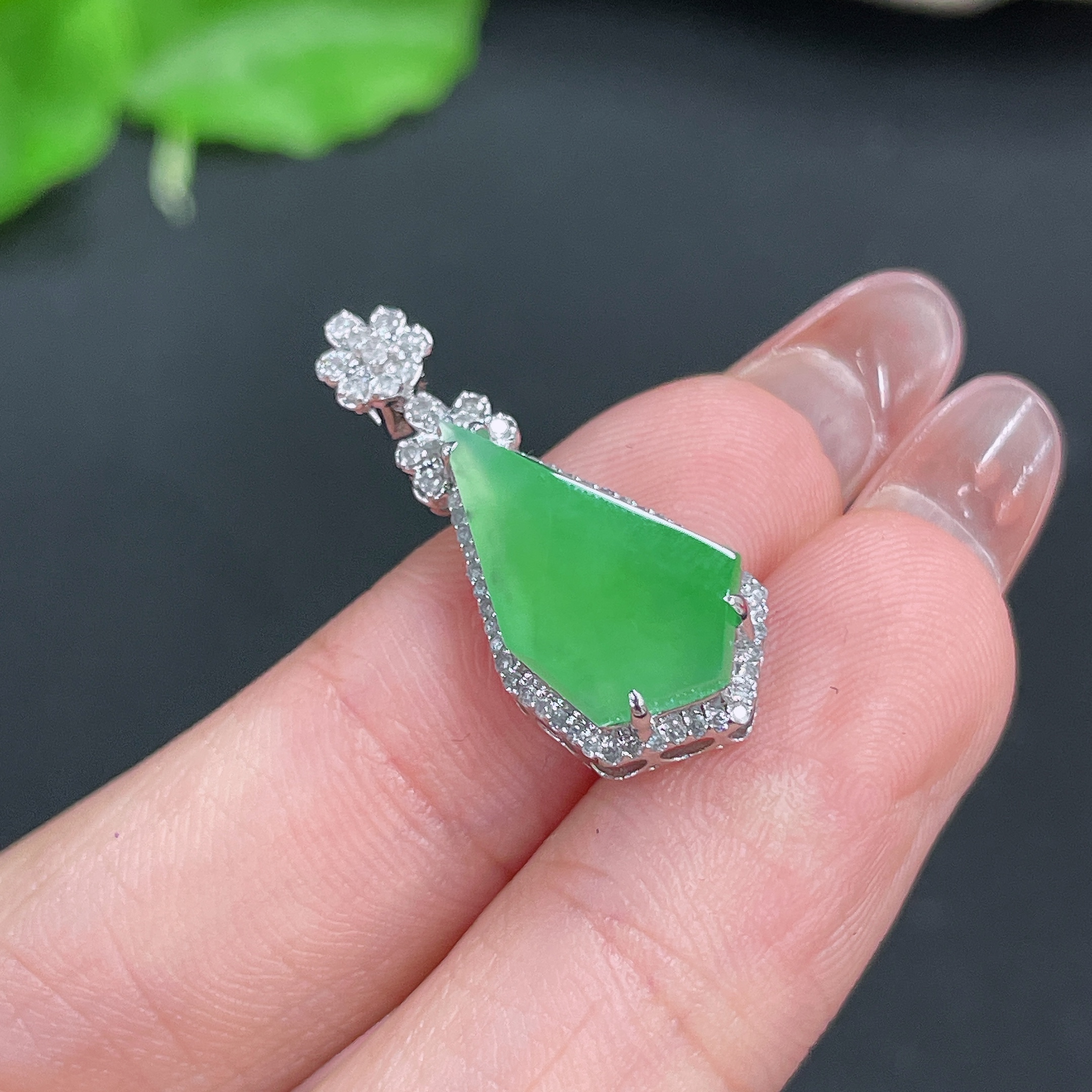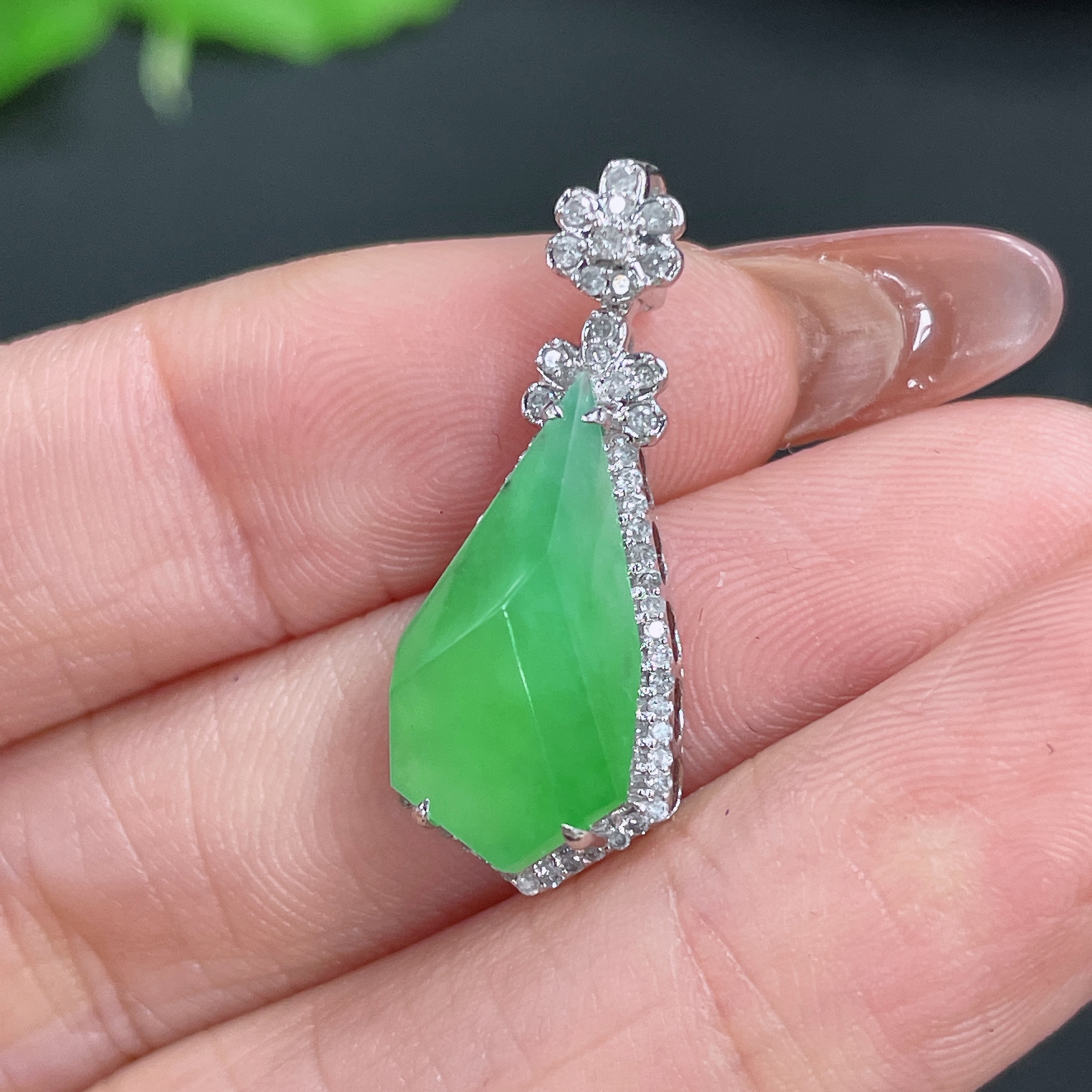 Jadeite Pendant, 18k Gold Setting with Diamond Accents, Total Weight Approximately 2.5g