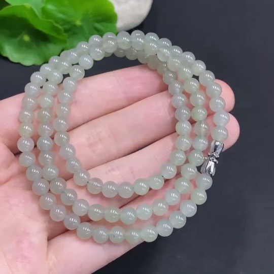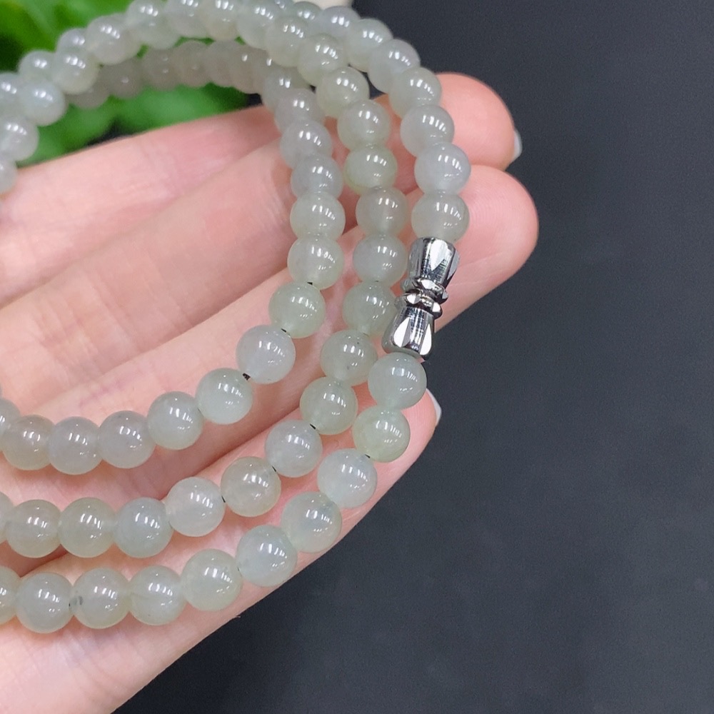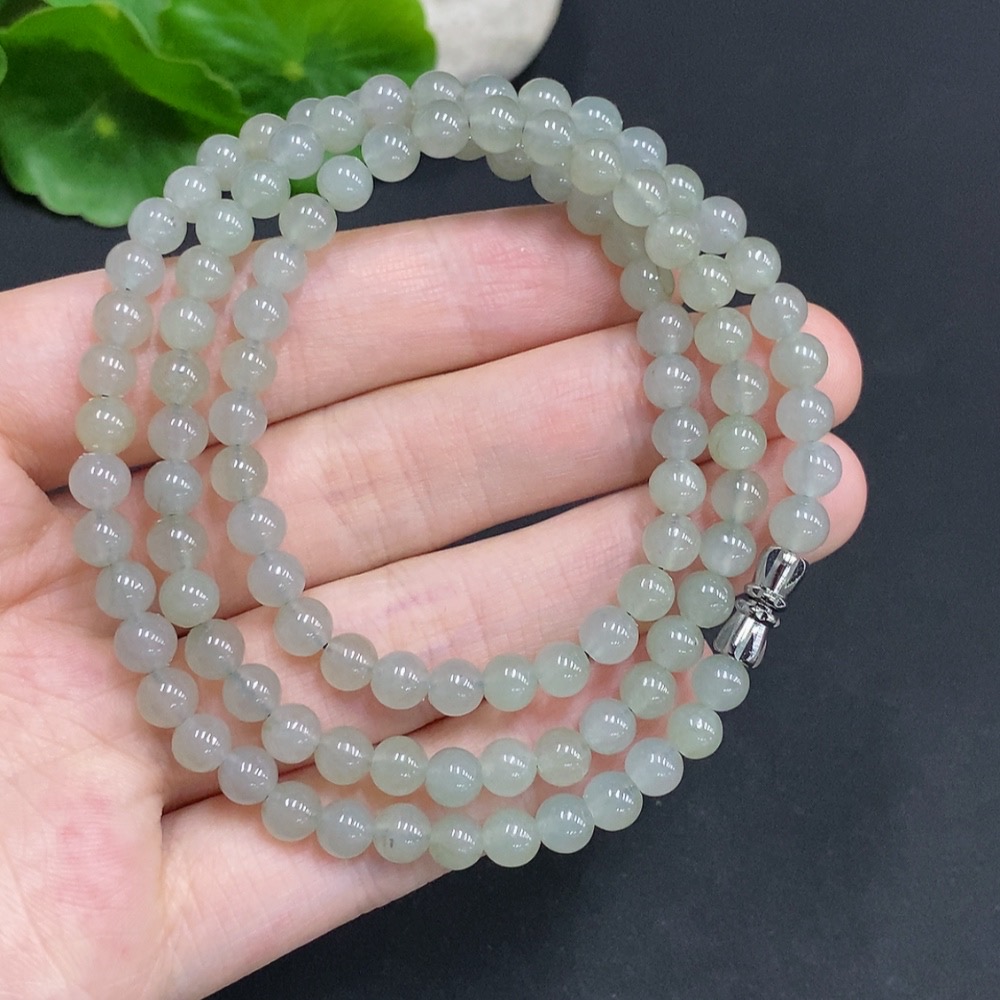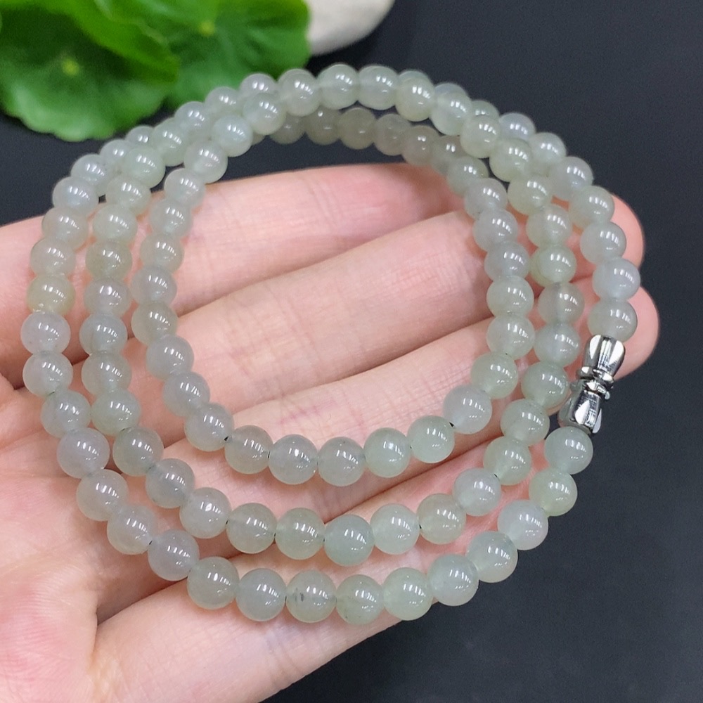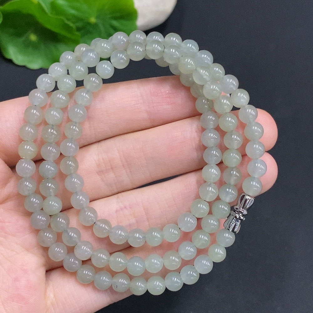 Jadeite Bead Necklace Non-Gold Inlaid Total Weight Approximately 28.4g Size About 5.2mm
