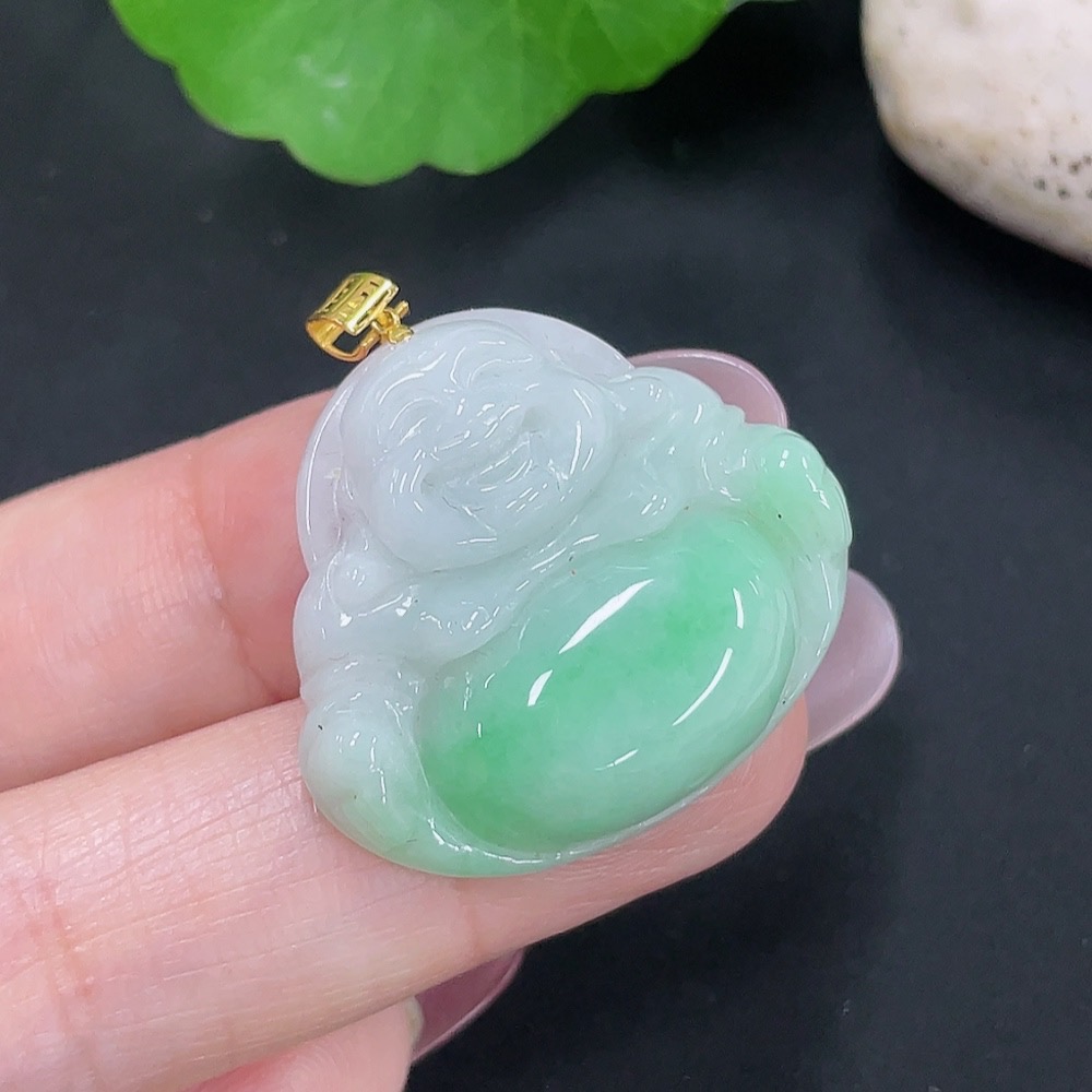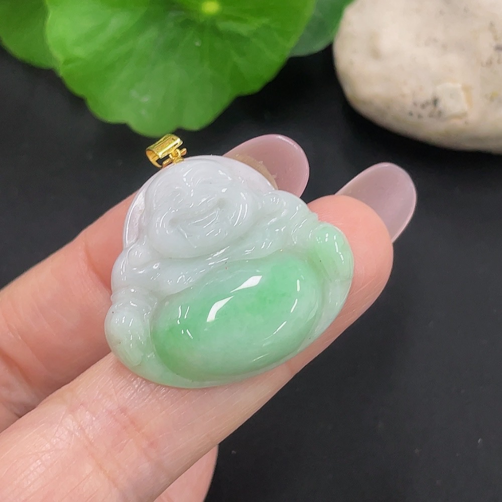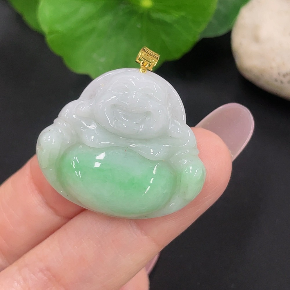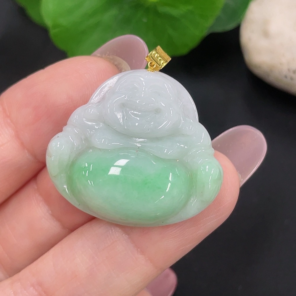 Jadeite Buddha Pendant 18K Gold Total Weight Approx. 6.6g