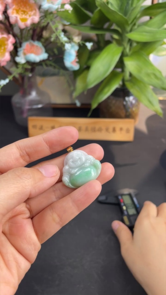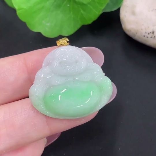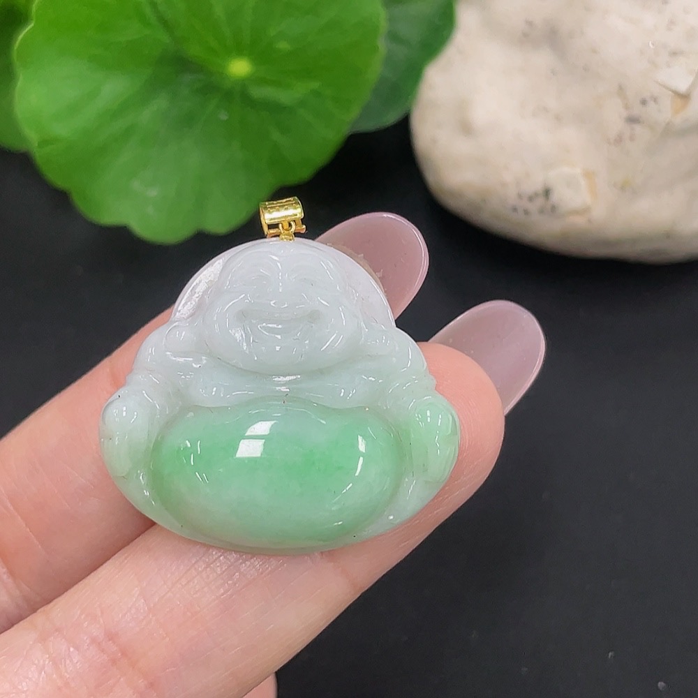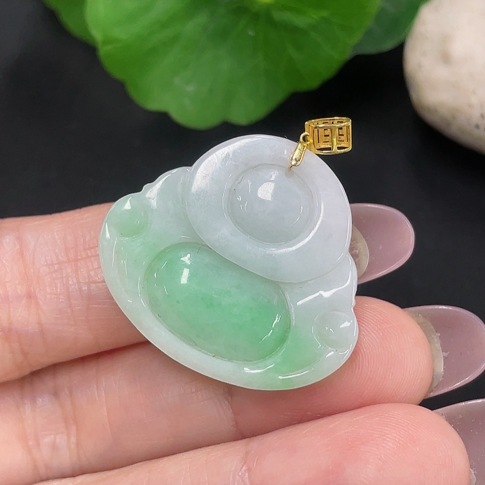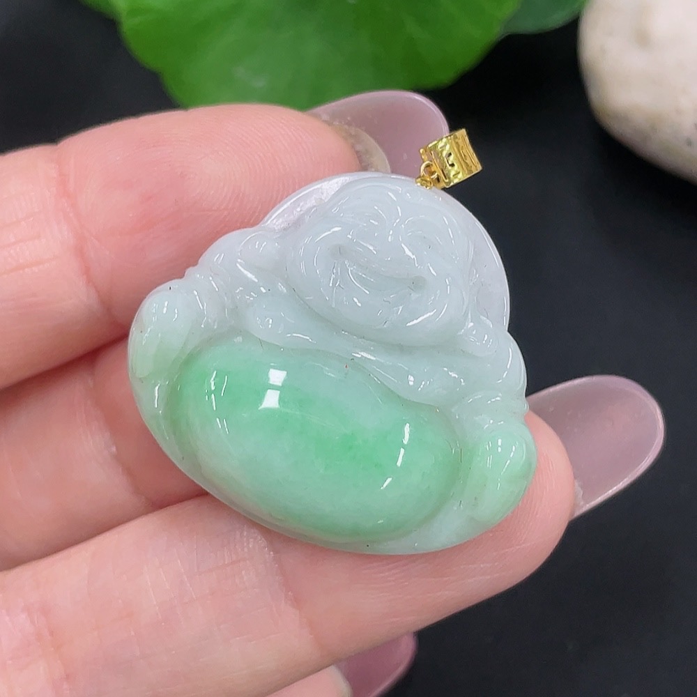 Jadeite Buddha Pendant 18K Gold Total Weight Approx. 6.6g