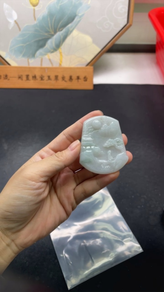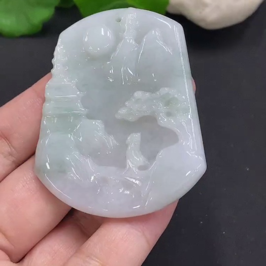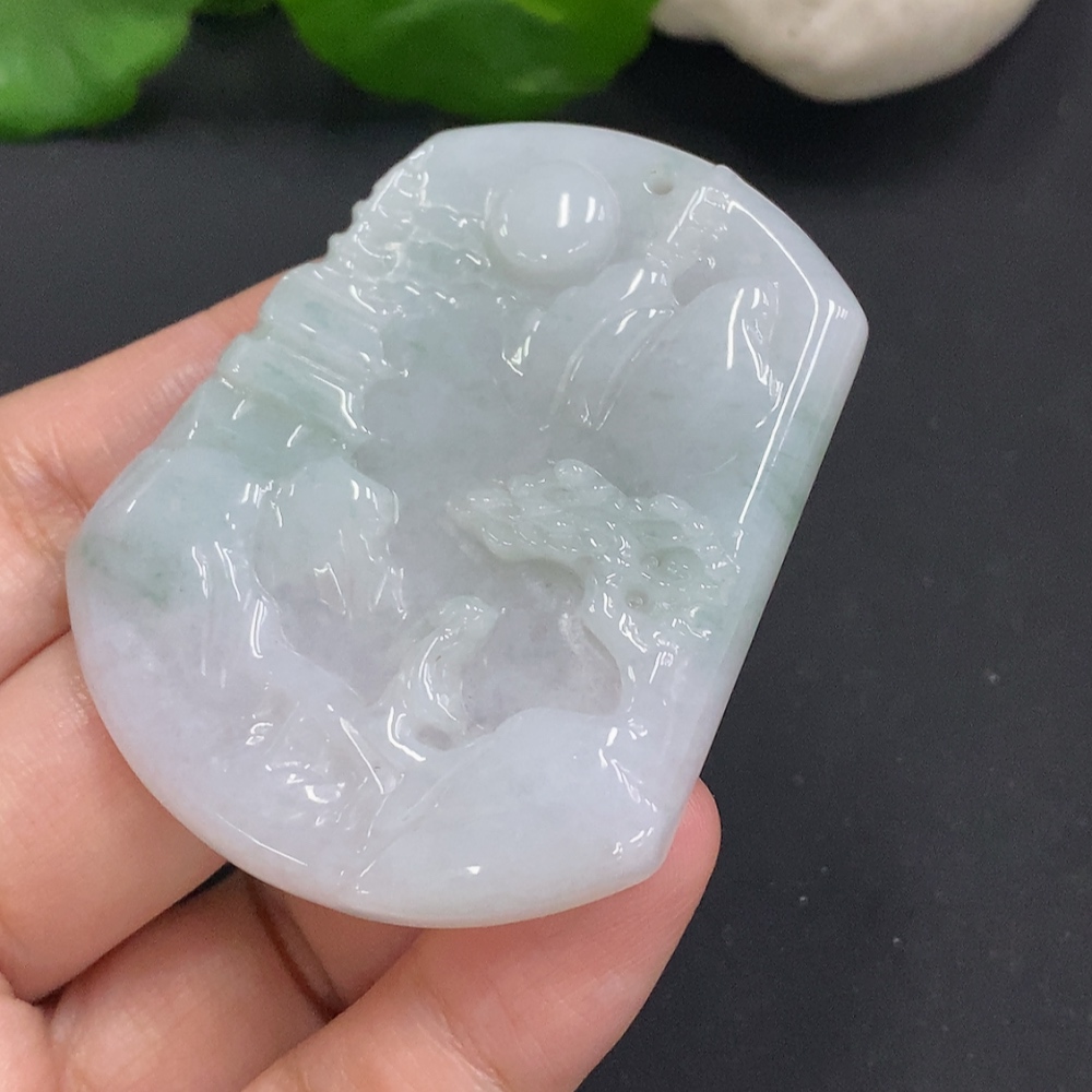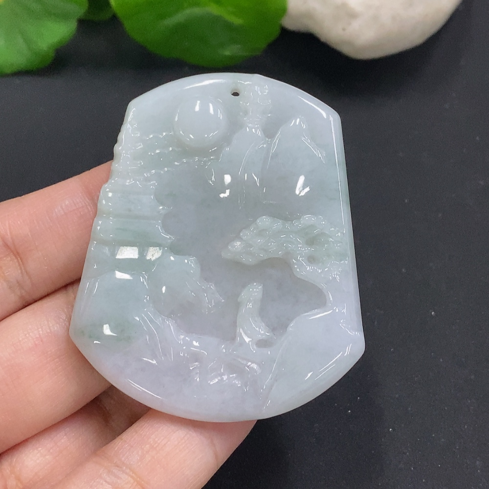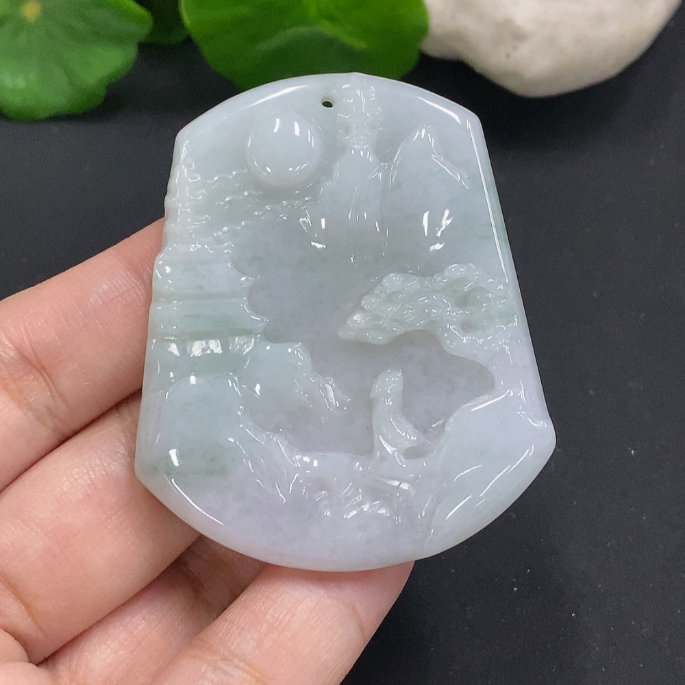 Jadeite Landscape Pendant, Total Weight Approximately 30.5g